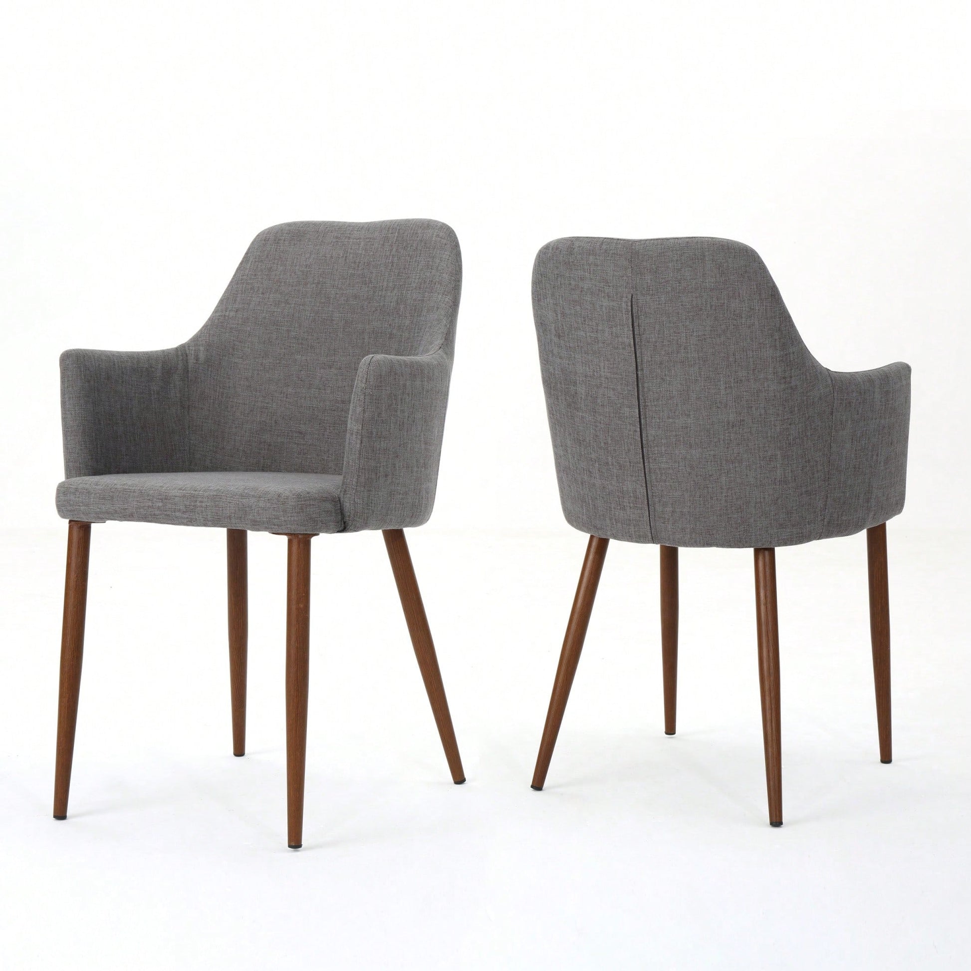 These dining chairs offer a modern twist on a classic design, providing both style and comfort. The contoured support ensures a pleasant seating experience, while the high-quality fabric and durable iron frame guarantee longevity. The wood finish adds an aesthetic appeal, making these chairs perfect for any dining setting. Ideal for hosting dinner parties or enjoying family meals, these chairs blend seamlessly with various decor styles.
