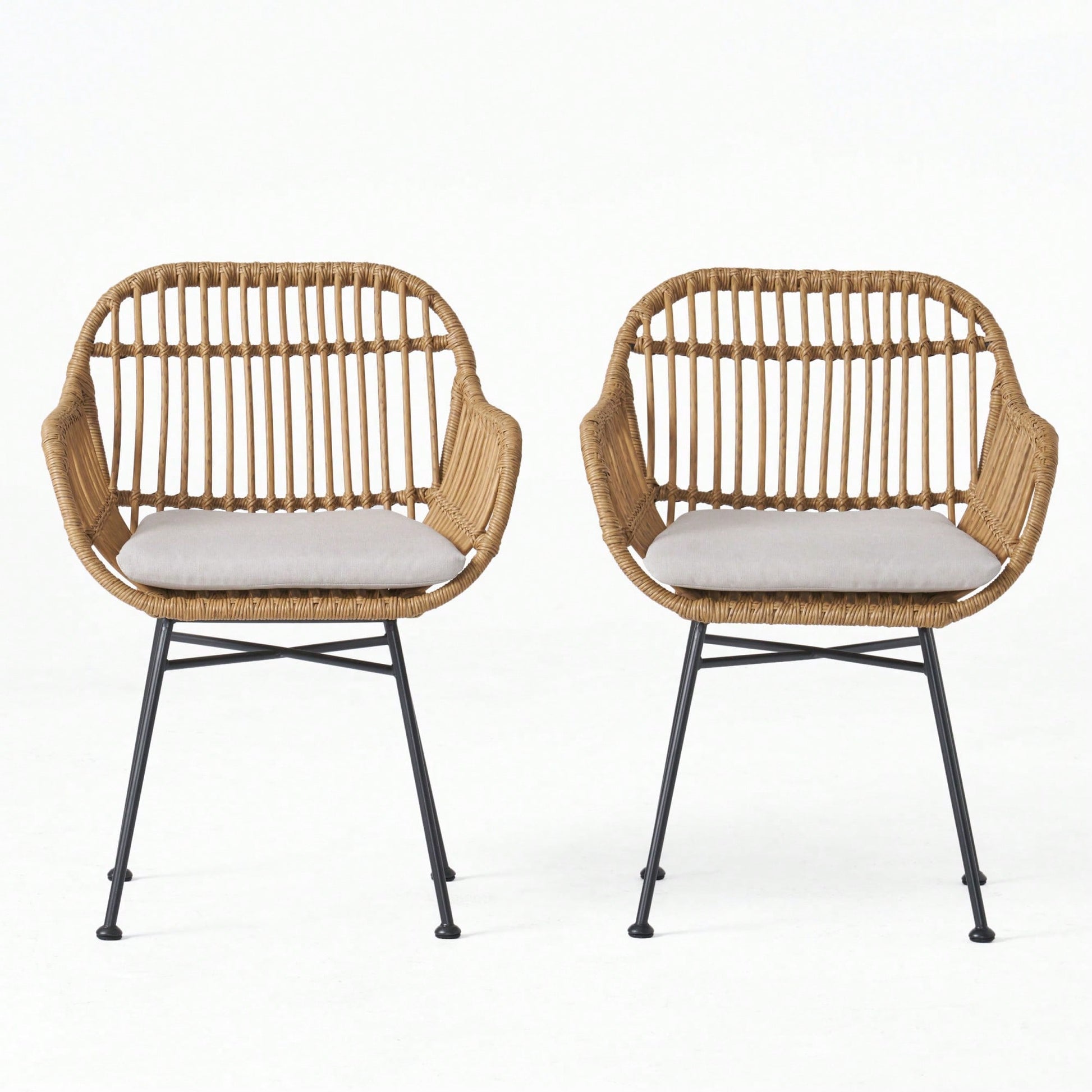 This modern rattan chair features a sleek design characterized by clean lines and soft curves, making it an ideal addition to any interior space. The woven seat crafted from durable polyethylene rattan ensures longevity while providing a versatile aesthetic. Water-resistant cushions enhance comfort and simplify maintenance, allowing for easy cleanup of spills. The robust steel frame, finished in polished black, not only reinforces the chair's stability but also accentuates its contemporary style, making it a perfect fit for both casual and formal settings.