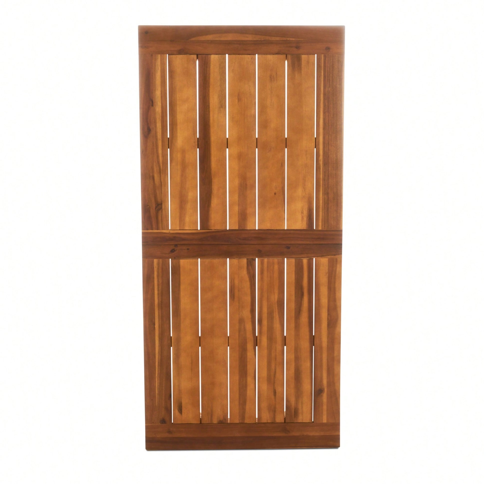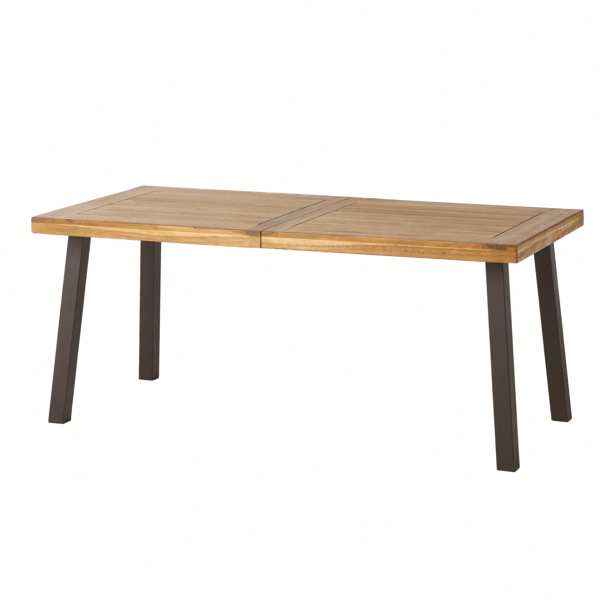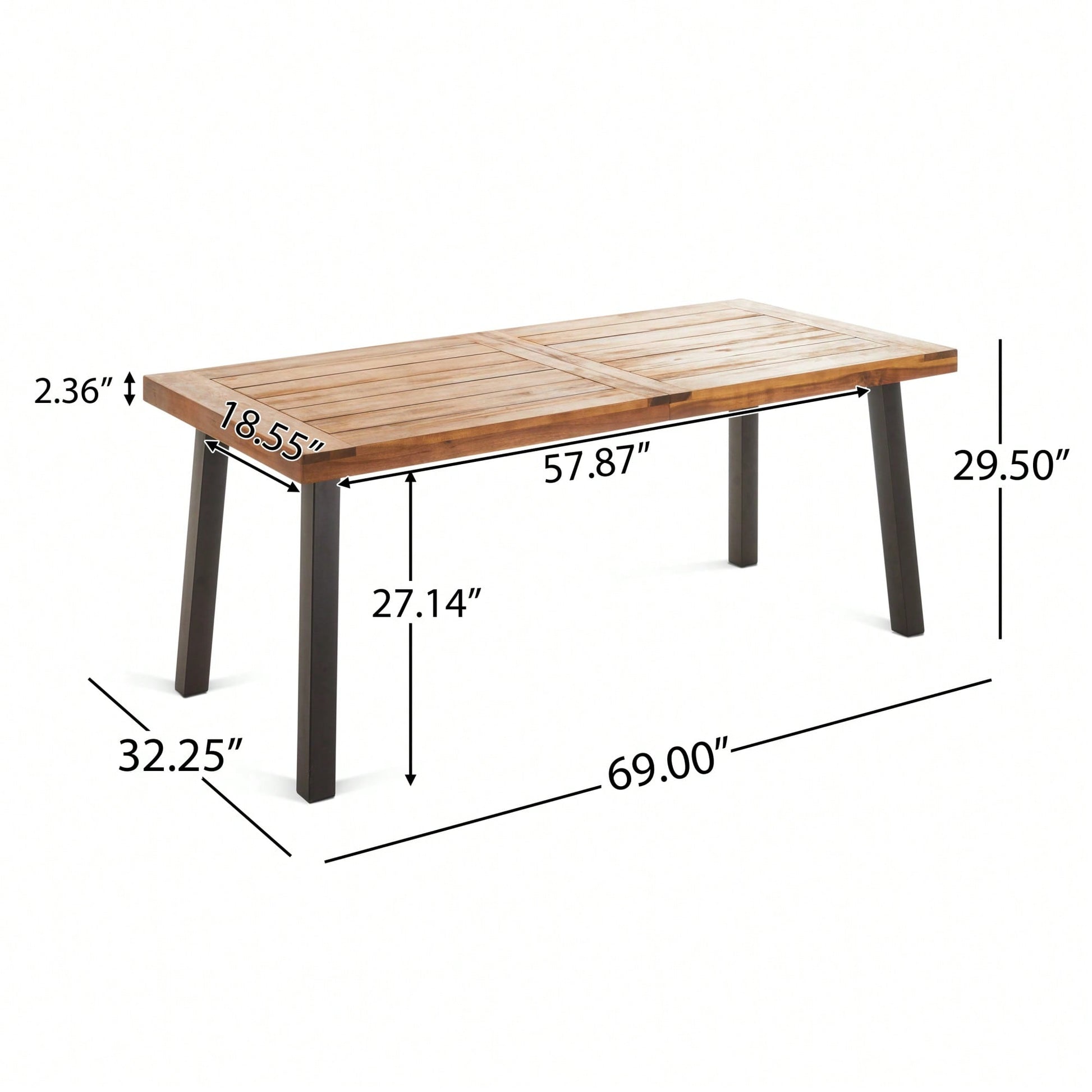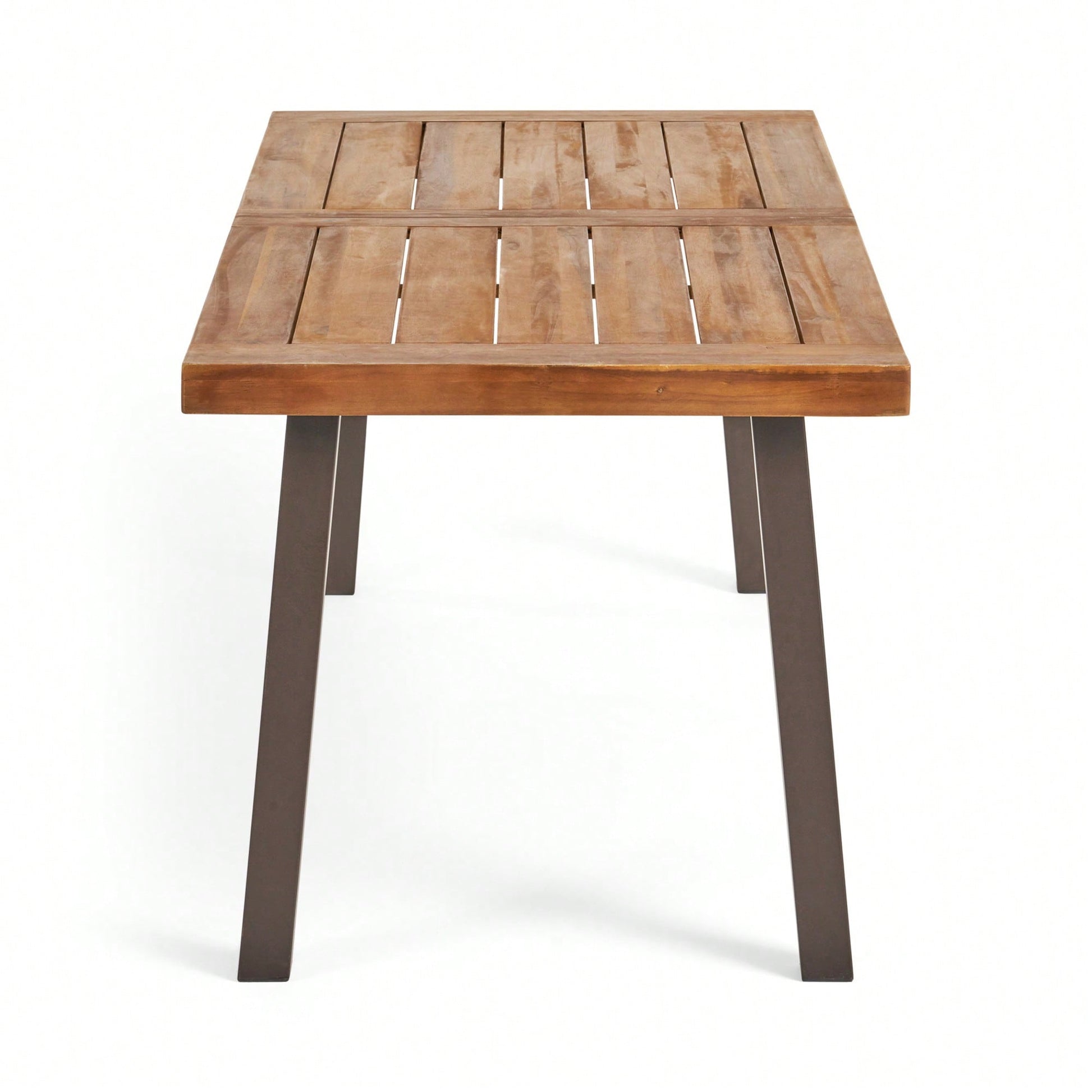 This dining table combines a modern industrial style with functionality. The powder-coated frame supports a rich acacia wood top, creating an elegant yet durable piece suitable for both indoor and outdoor settings. The acacia wood is known for its resilience and ability to maintain its color over time, ensuring that the table remains a focal point in your space. With its chic slat paneling, this table enhances the decor of any home while providing a solid surface for dining and gatherings.