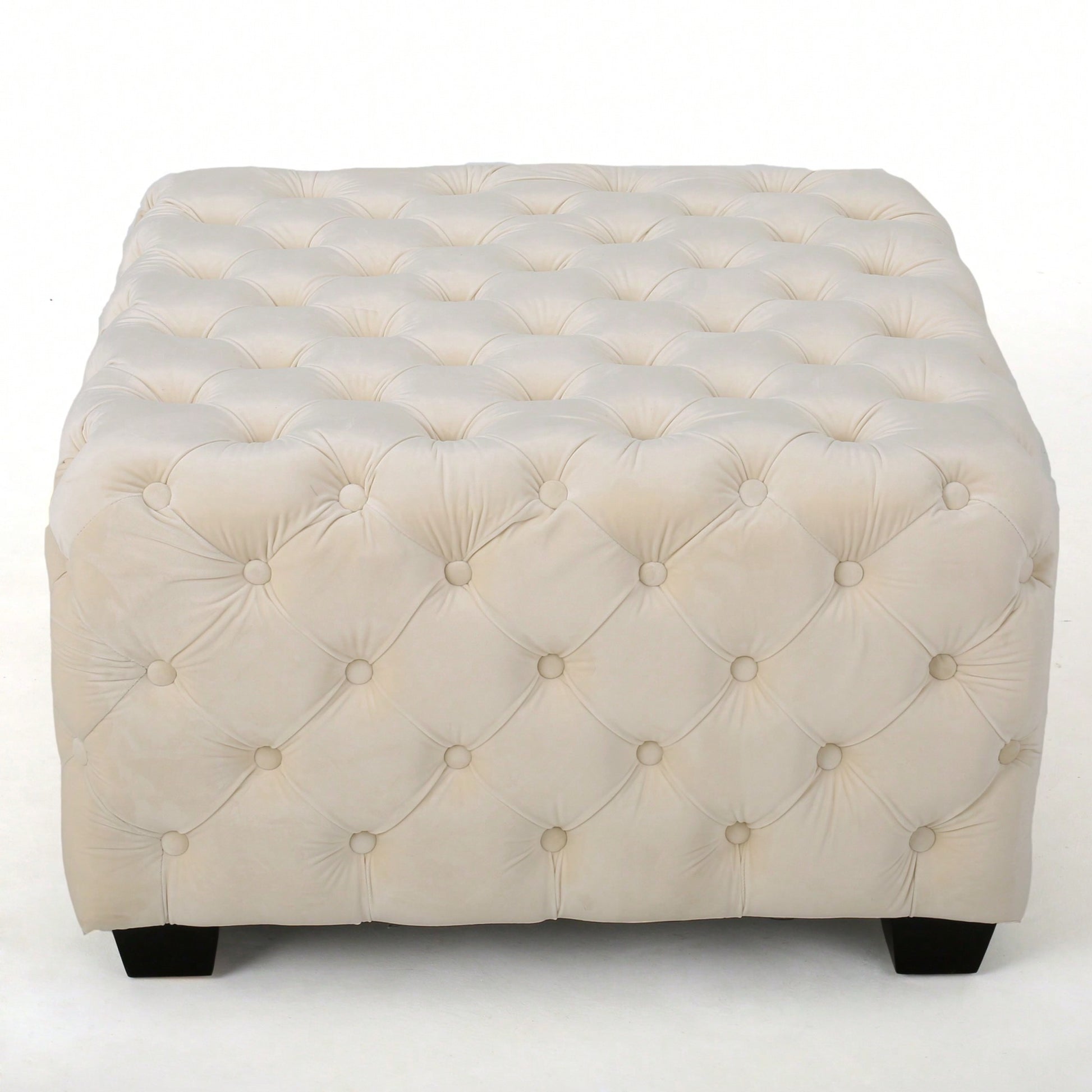 1. Features - Smooth velvet upholstery for a luxurious feel - Button-tufted diamond stitching adds sophistication - Versatile functions: extra seating or coffee table - Modern glam design with jewel-like colors and clean lines - Durable 100% polyester velvet with resistance to wrinkles 2. Product Description Elevate your interior space with this elegant ottoman, designed to enhance any room with its soft textures and stunning aesthetics. The button-tufted diamond stitching provides a sophisticated touch while ensuring comfort. Its versatile nature allows it to serve as extra seating for guests or as a stylish coffee table to hold snacks. The modern glam look is complemented by precise angles and a minimalistic structure, making it a perfect addition to various decor styles. Specifications Dimensions: 29.00" W x 29.00" D x 18.25" H Assembly: Some assembly required; instructions and tools included
