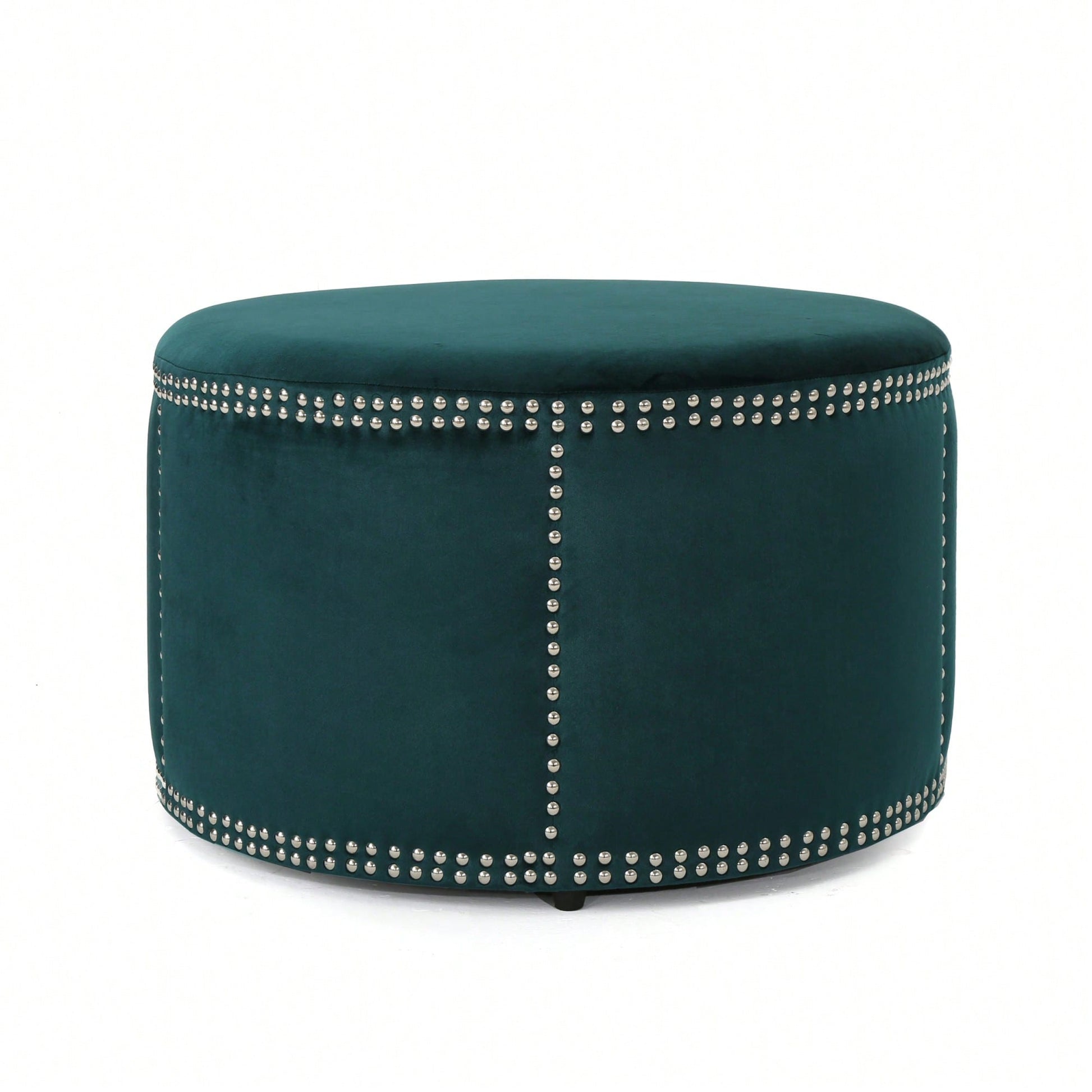 This studded ottoman offers a fashionable place to rest your feet, enhancing the look of any room. Its round body serves as a perfect focal point, seamlessly fitting into various décor styles. Made from high-quality materials, this ottoman ensures durability and comfort, making it a worthwhile addition to your home.