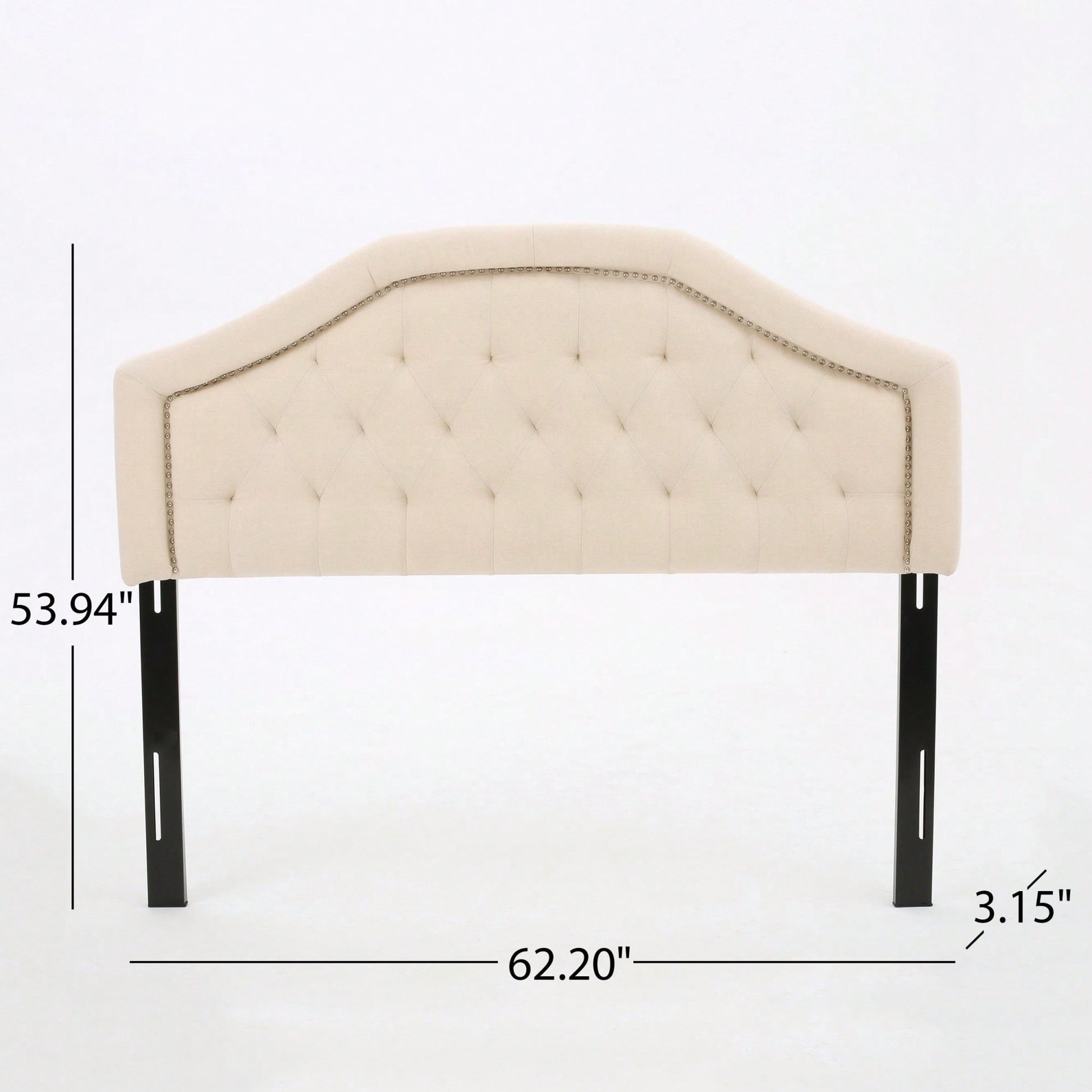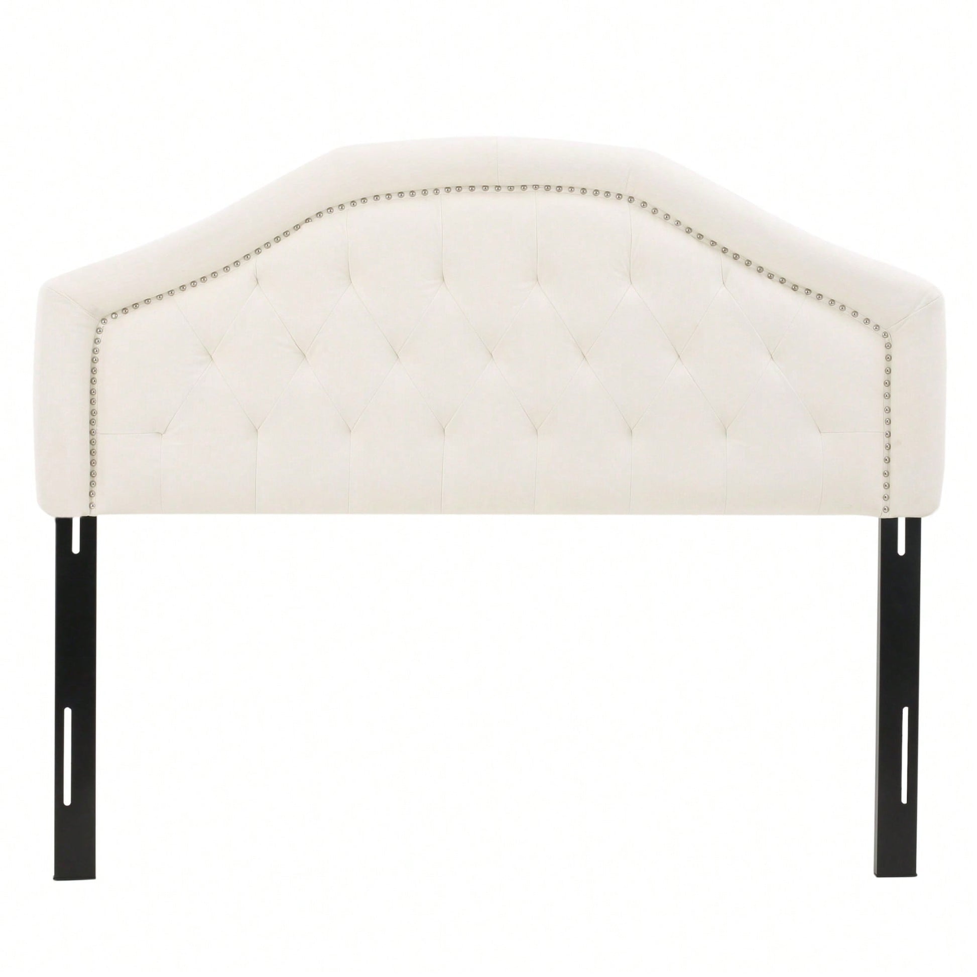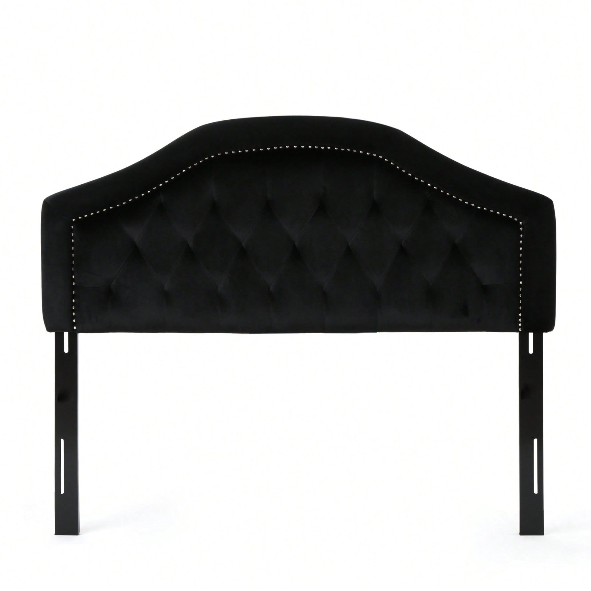This headboard features a sleek, contemporary design that enhances any bedroom. The camelback silhouette and smooth upholstery create a refined look, while adjustable legs allow for easy attachment to different bed frames. The button tufted diamond stitch pattern adds texture, and the tasteful nailhead accents provide a handcrafted feel. Fully upholstered, this headboard delivers both style and comfort.
