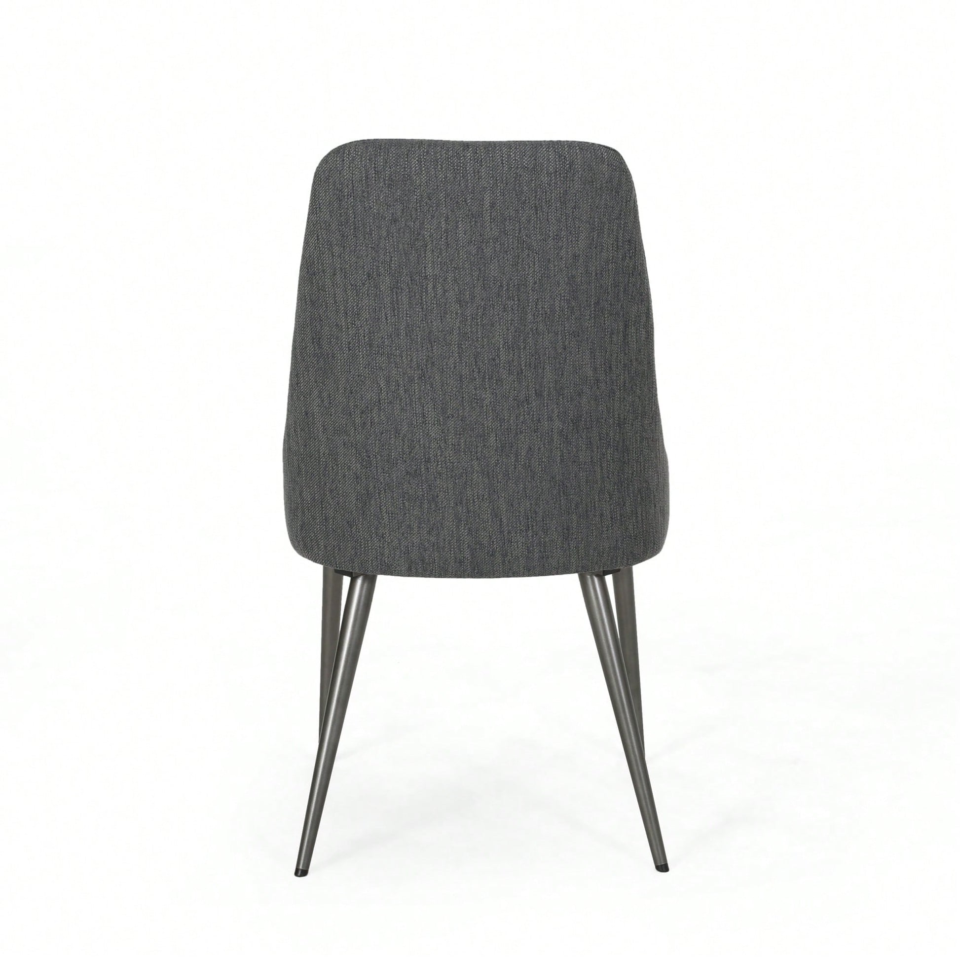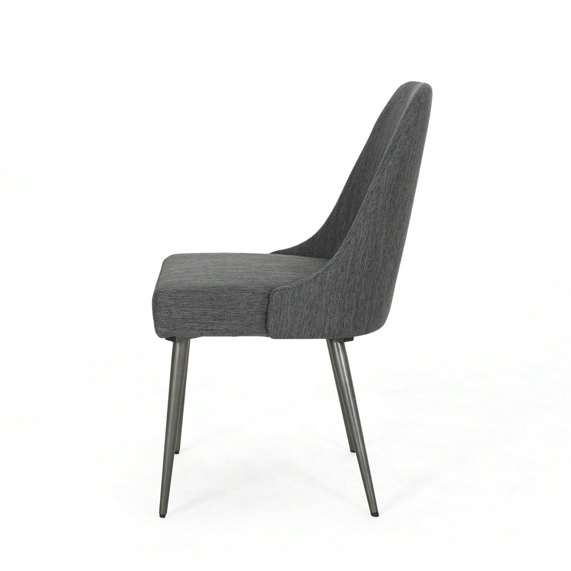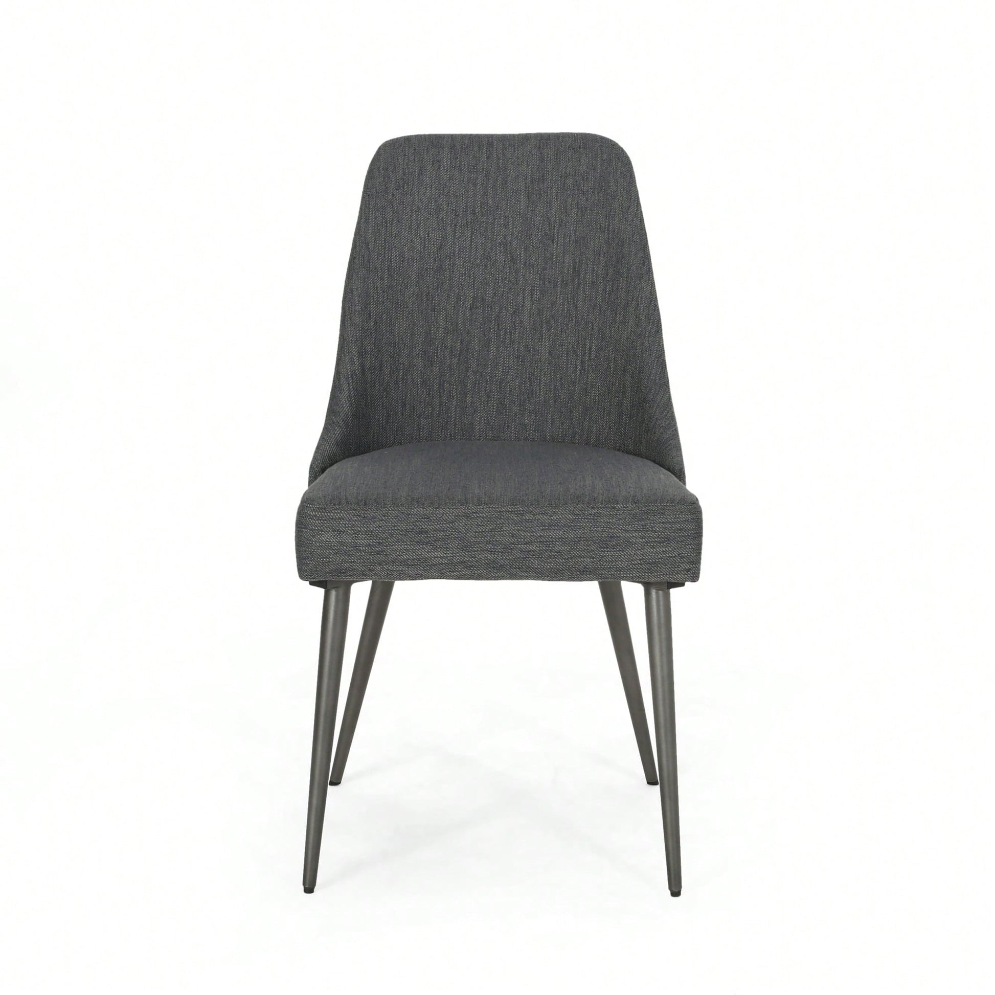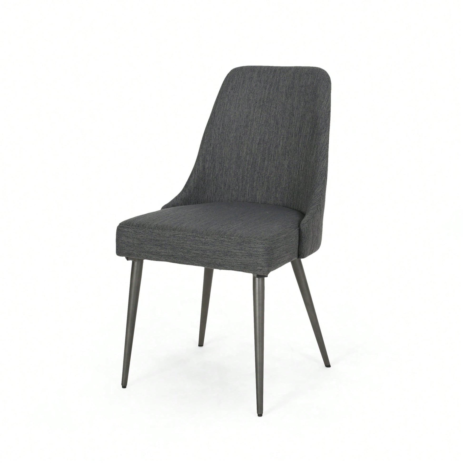 Round out your dining room décor with dependable seating provided by this enchanting modern dining chair set. The chairs feature fresh colors and a modern finish, complemented by sturdy powder-coated iron legs that ensure durability. The simplistic structure, highlighted by a curved backrest and straight, angled legs, adds an elegant touch to any home. The upholstered design offers a smooth appearance and padded foam seating for exceptional comfort. Ideal for creating a unique dining set, this set includes two chairs that will enhance the style of your dining room.