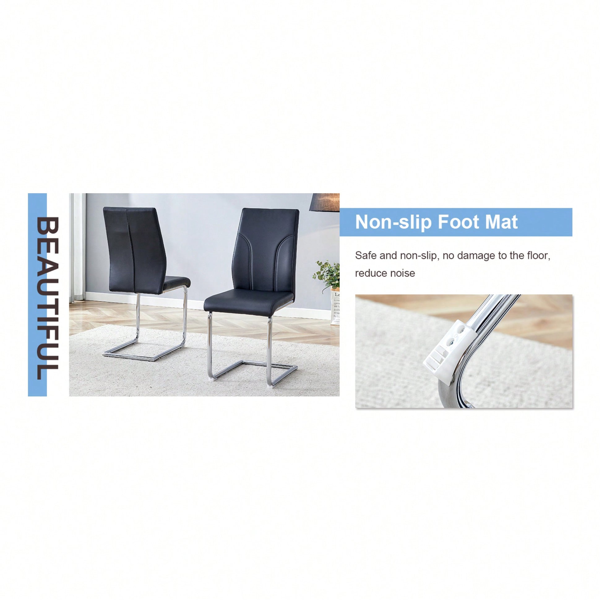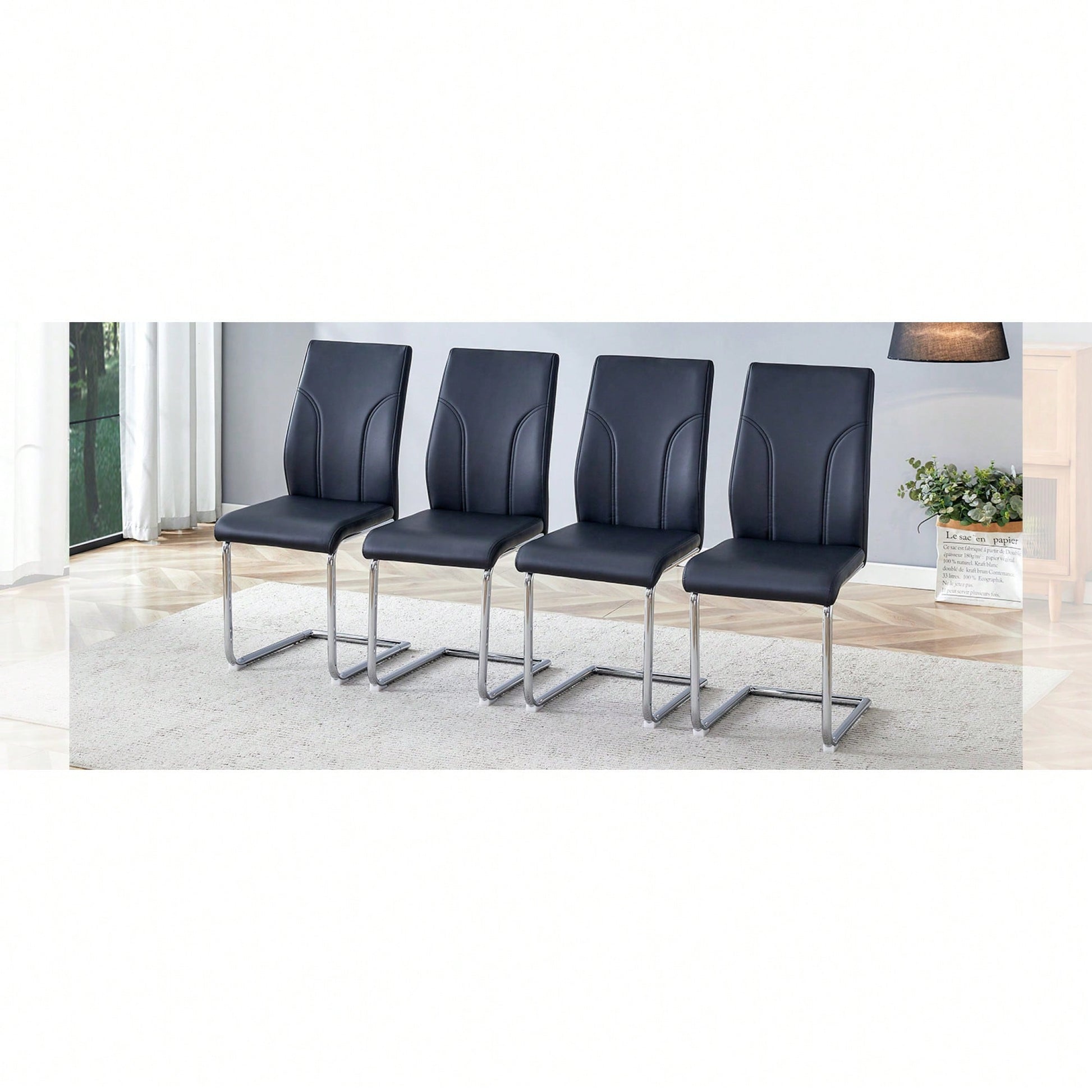 This dining chair set offers a chic and modern alternative to traditional seating, perfect for enhancing the style of any dining room, kitchen, or living room. The chairs feature a high back design, providing excellent support and comfort. Crafted from premium PU material, they are reinforced to prevent cracking and are super waterproof, making them easy to maintain. The exquisite stitching adds a touch of elegance, ensuring these chairs are not only functional but also a stylish addition to your home.