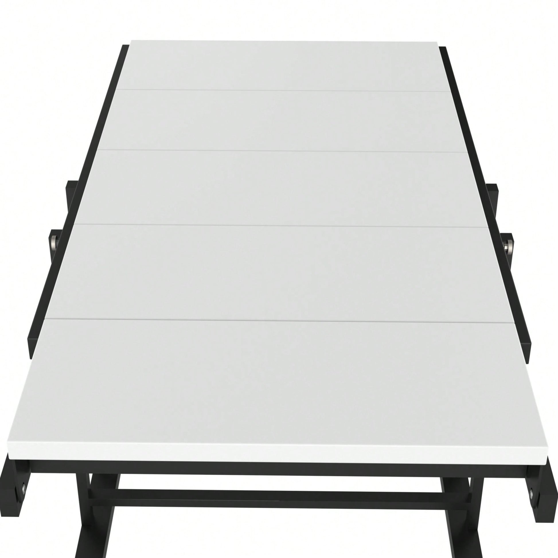 Elegant Solid Mahogany Multifunction Convertible Dining Table With Space-Saving Shelf, Ideal For Home And Studio - White Finish