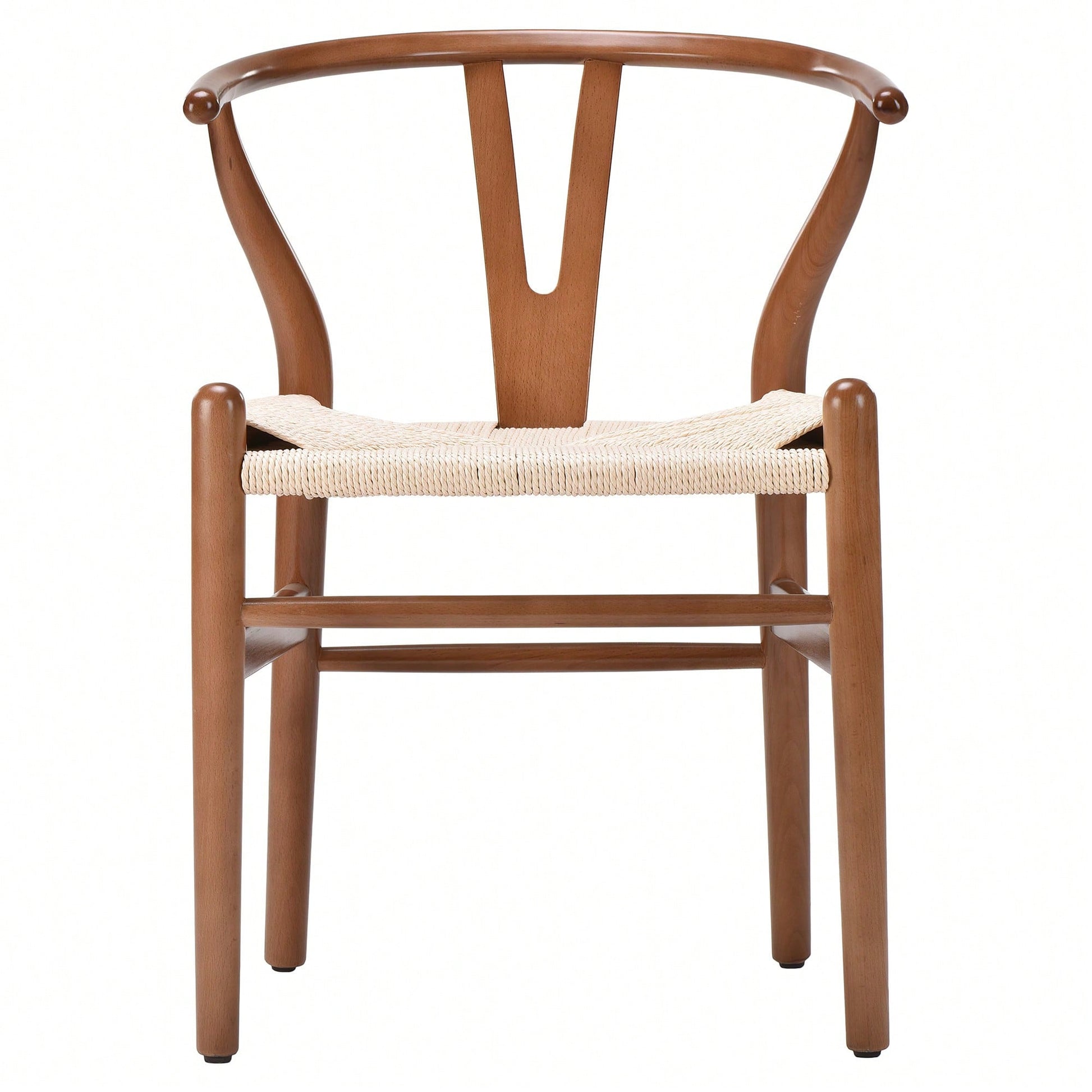 Mid-Century Solid Wood Weave Dining Armchair Set of 2 Ergonomic Wishbone Chairs Fully Assembled for Dining Room