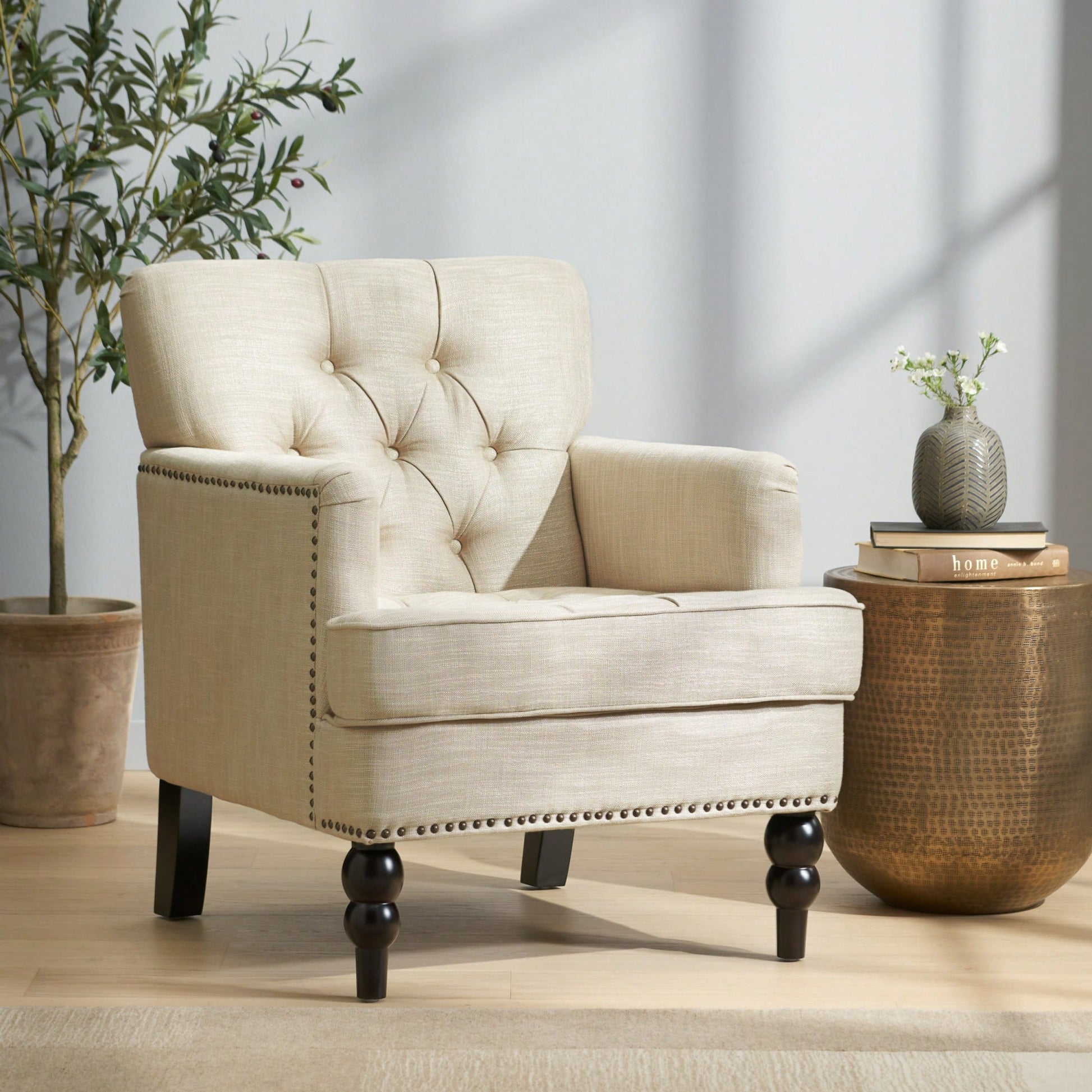 Elegant Tufted Club Chair For Living Room And Office Seating