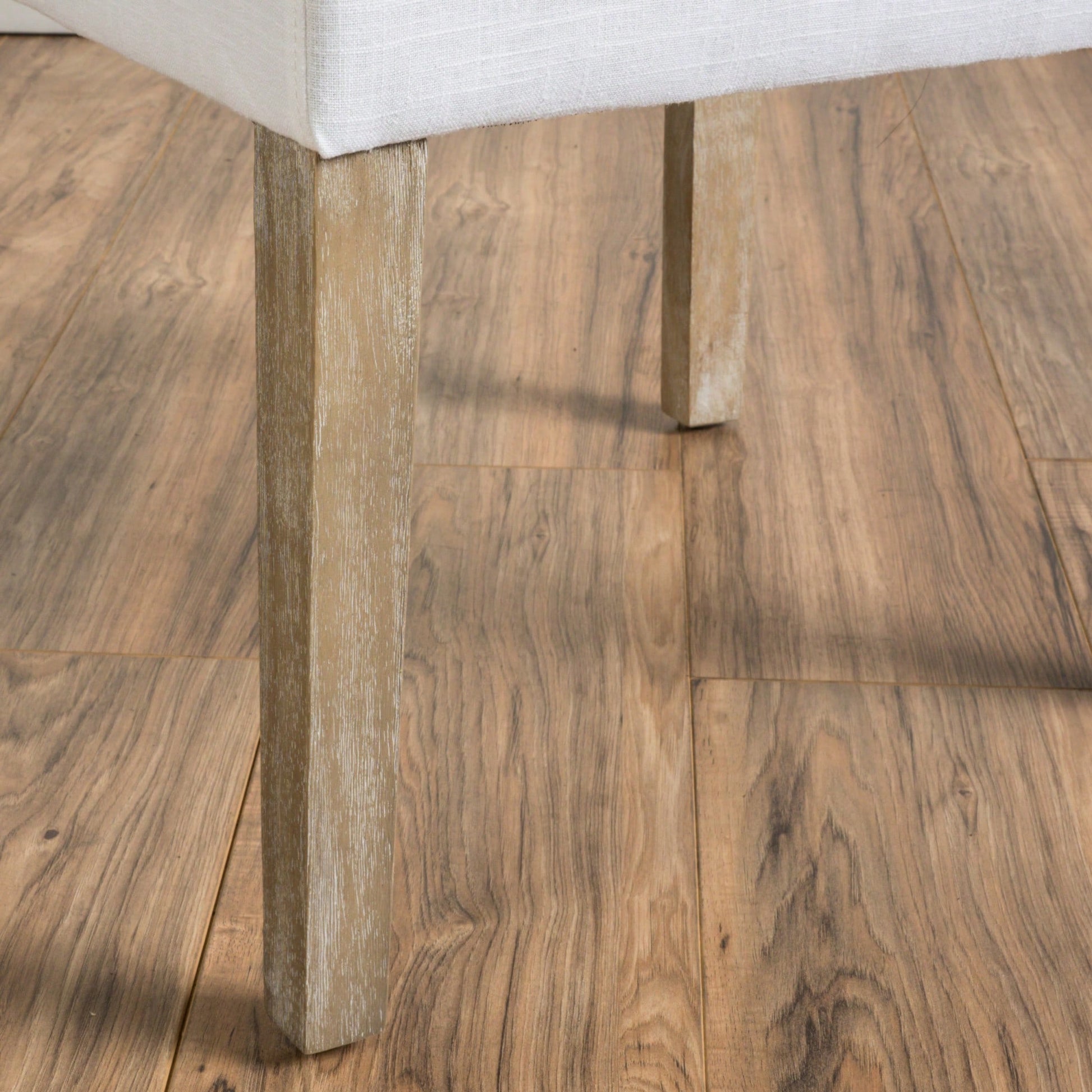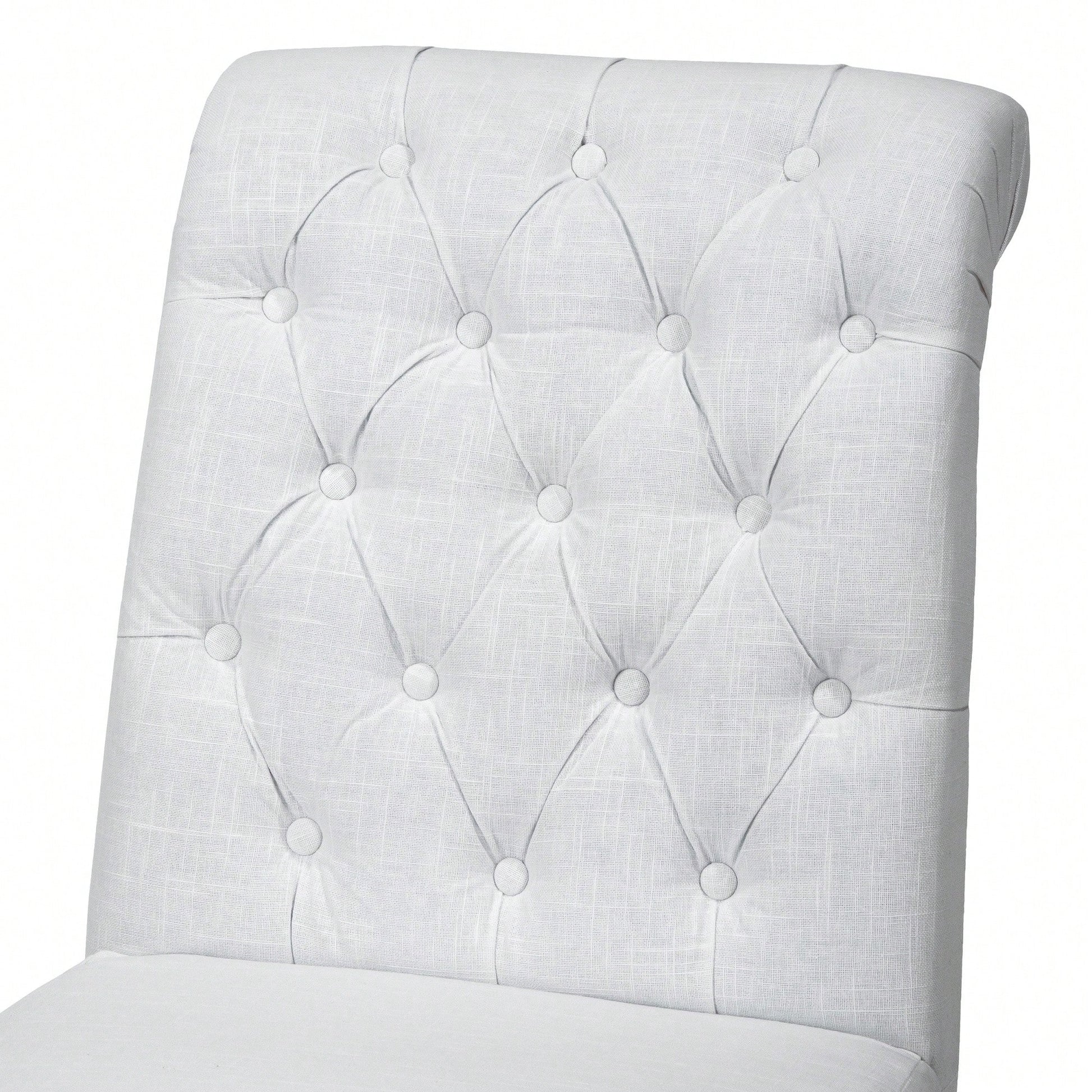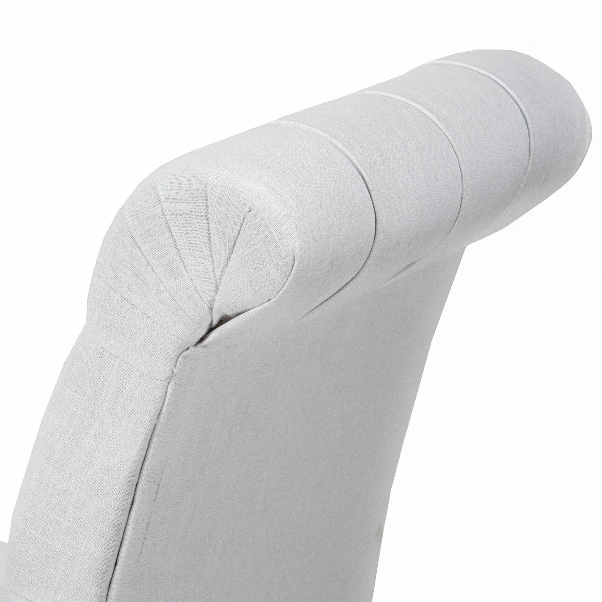 These beautifully constructed dining chairs feature a classic rolled top design and a charming tufted backrest, making them a perfect addition to any dining space. The neutral White linen upholstery allows them to seamlessly blend with various decor styles. Ideal as accent chairs in living rooms or bedrooms as well, they provide both elegance and comfort.