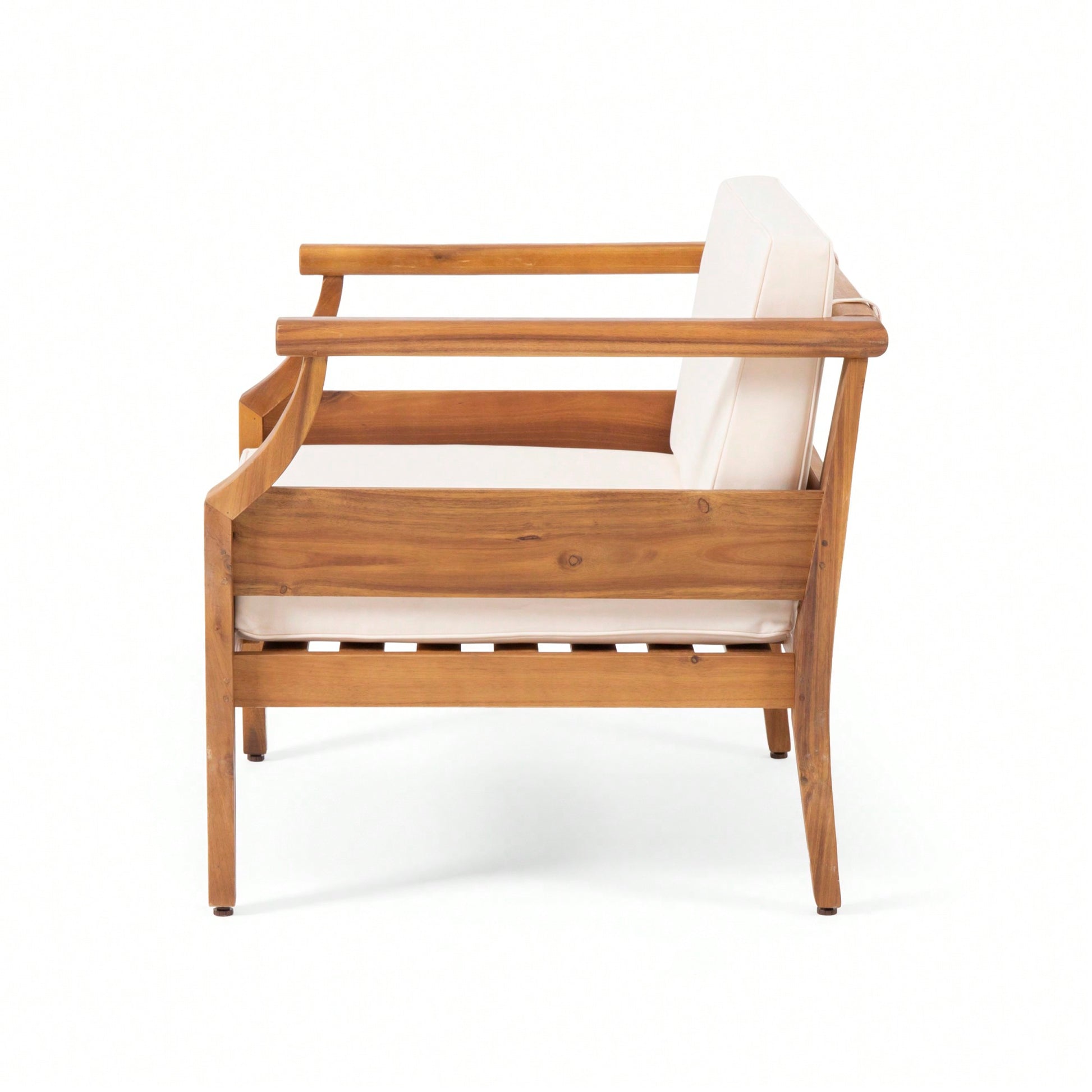 Enjoy the outdoor breeze and warm sunshine in this club chair that adds a homey, relaxed feel to your backyard or patio. The chair features a stylish design with cozy recessed arms and open-slat seating, creating a breezy ambiance. Constructed from a rich acacia wood frame, it is built to last while providing a comfortable spot to relax and unwind. Perfect for enhancing your outdoor ensemble, this club chair is an ideal addition for you and your guests.
