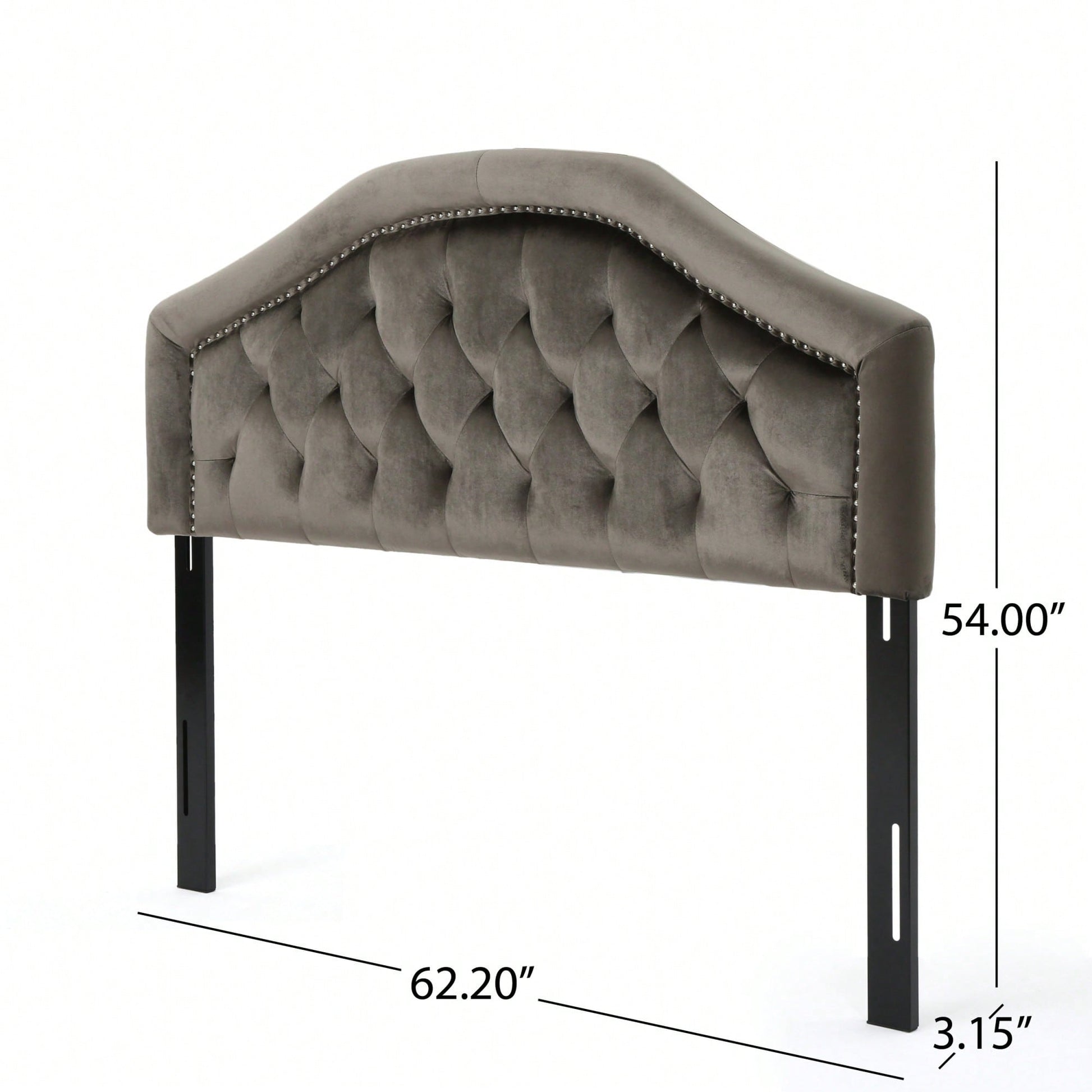This queen and full-sized headboard features a camelback silhouette and smooth upholstery, blending classic design with contemporary elements for a stunning addition to any bedroom. The minimalistic design enhances your room's style and comfort, while the button tufted diamond stitch provides texture without compromising comfort. Tasteful nailhead accents along the armrests add a handcrafted detail, and the fully upholstered frame ensures a clean and cohesive look.