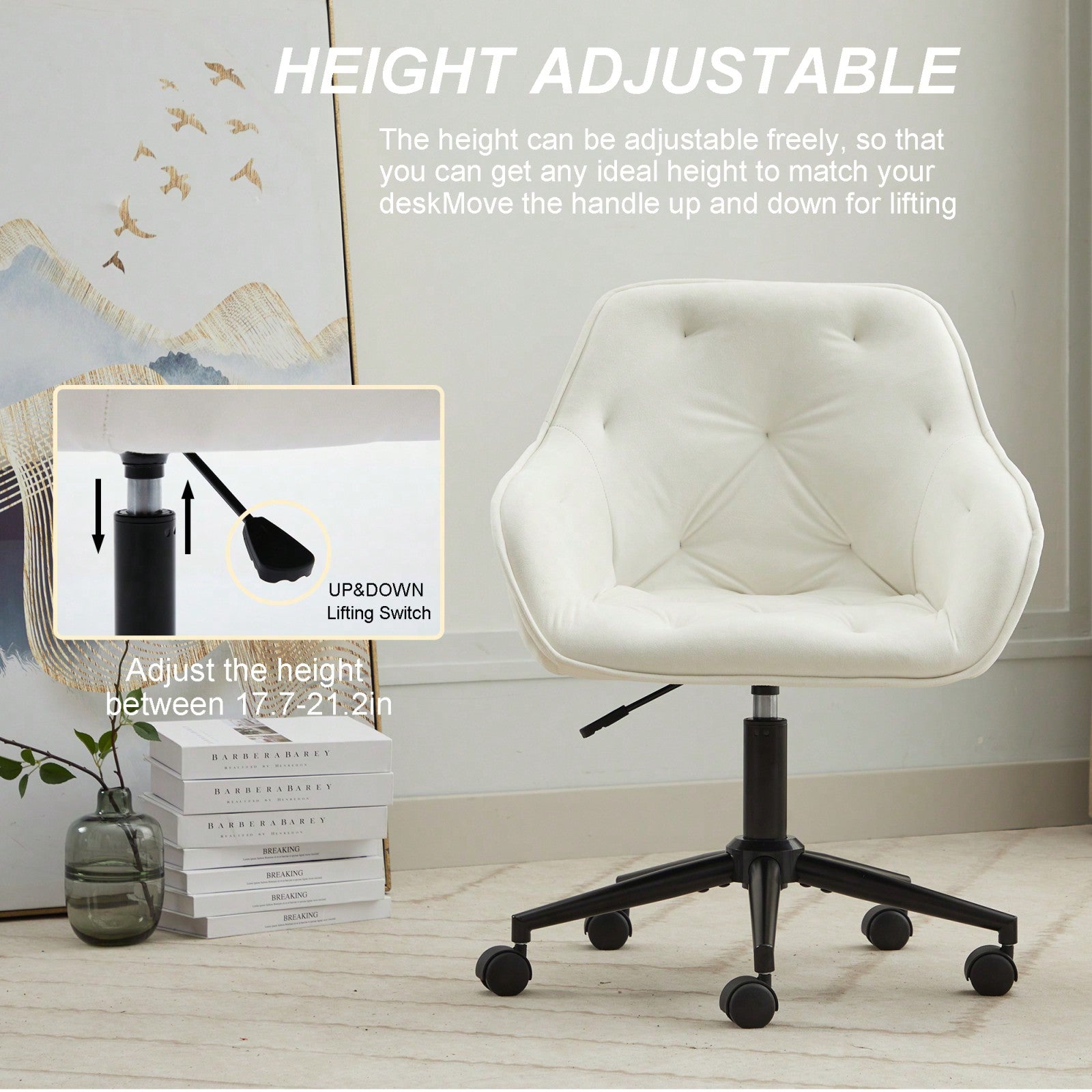 1.Elegant Velvet Office Chair with 360° Rotation