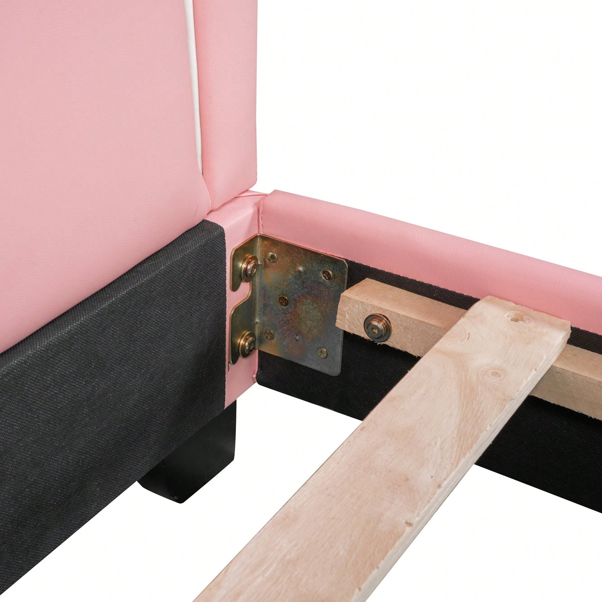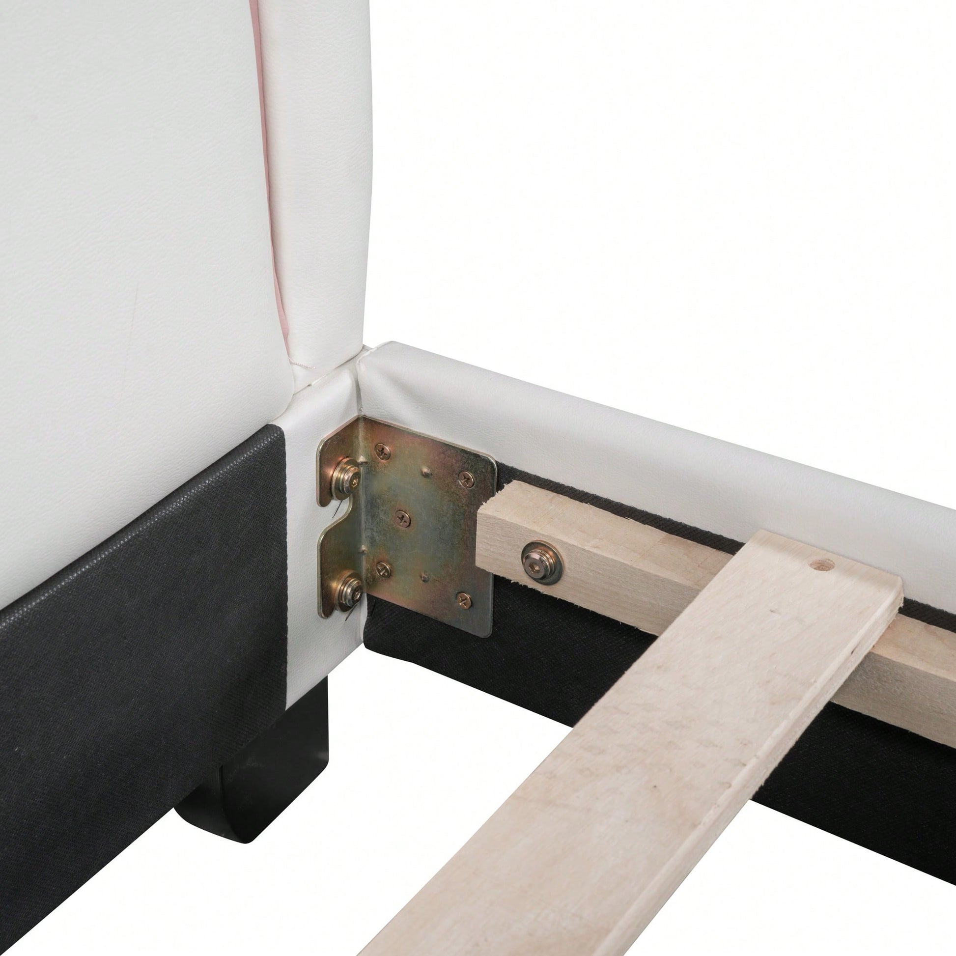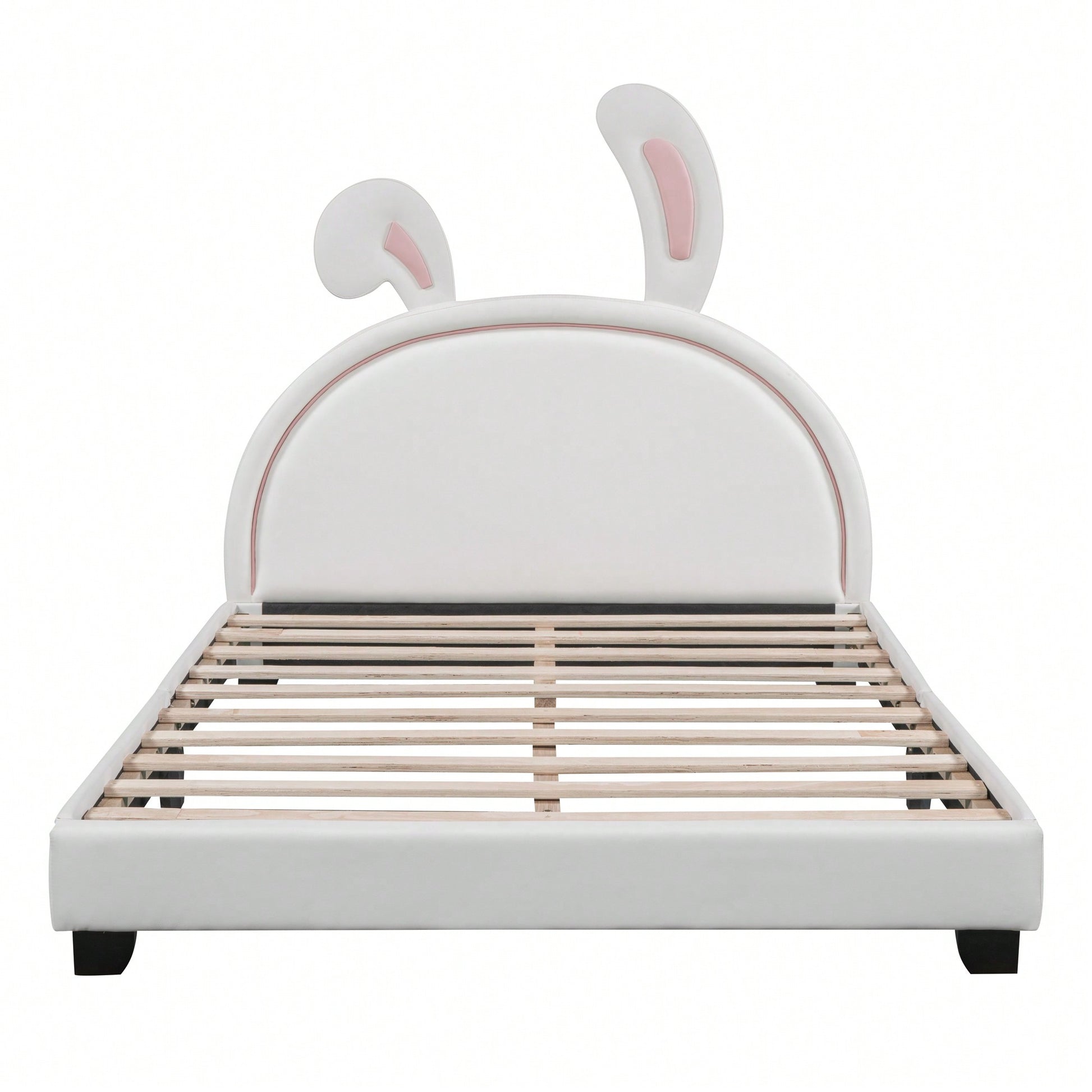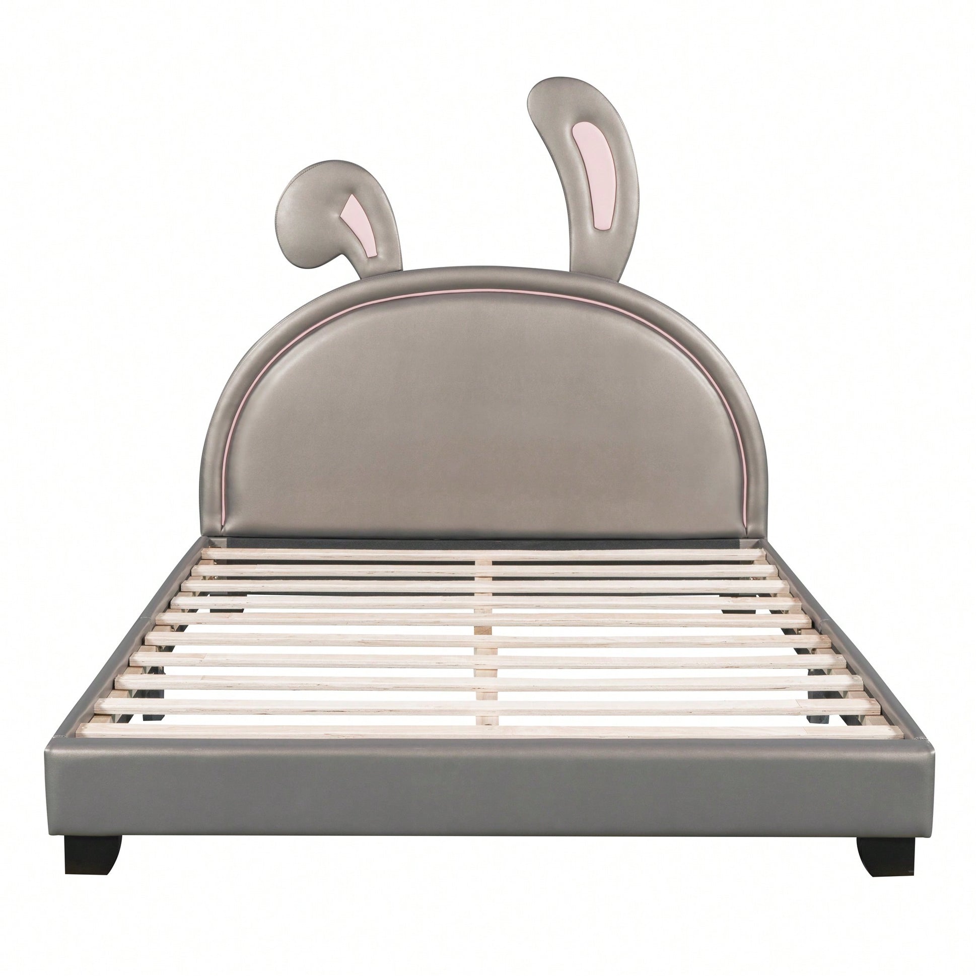 This full-size upholstered leather platform bed features an adorable rabbit ornament design, making it an ideal choice for your child's bedroom. With a load capacity of up to 400 lbs, the bed provides a stable and secure sleeping environment. Crafted from high-quality pine wood, the frame is resistant to humidity changes, ensuring long-lasting use. The included slats eliminate the need for a box spring, and assembly is straightforward with clear instructions provided. This bed combines functionality with a delightful aesthetic that will surely delight your little one.
