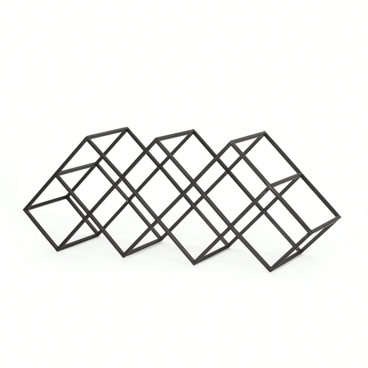 This tabletop wine rack combines modern industrial style with functionality, featuring a sleek metal frame and a refined geometric design. The rack accommodates up to 7 wine bottles, showcasing them in stunning diamond slots that enhance the overall aesthetic of your home. Crafted from durable iron, this wine rack is built to last, while its matte finish adds a touch of elegance. Transform your space effortlessly with this stylish and practical accessory.