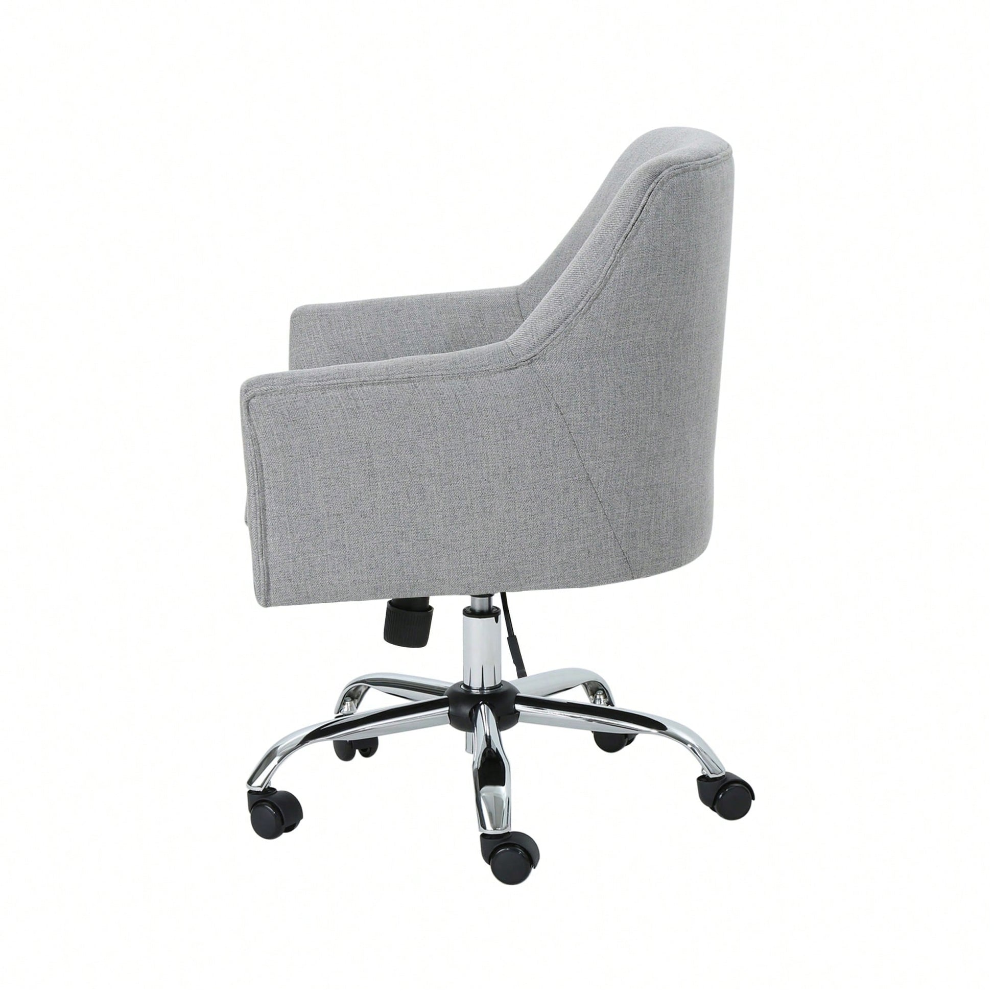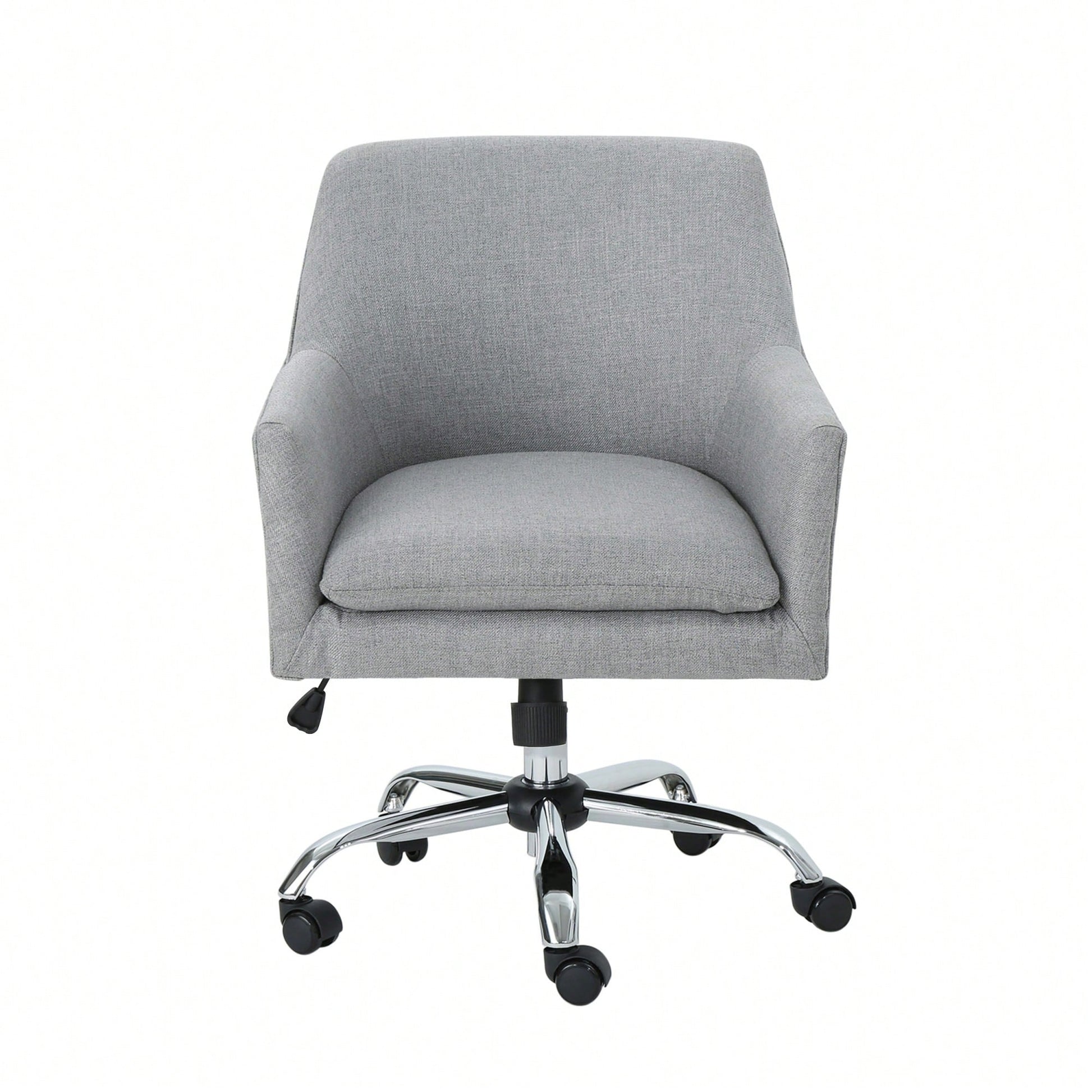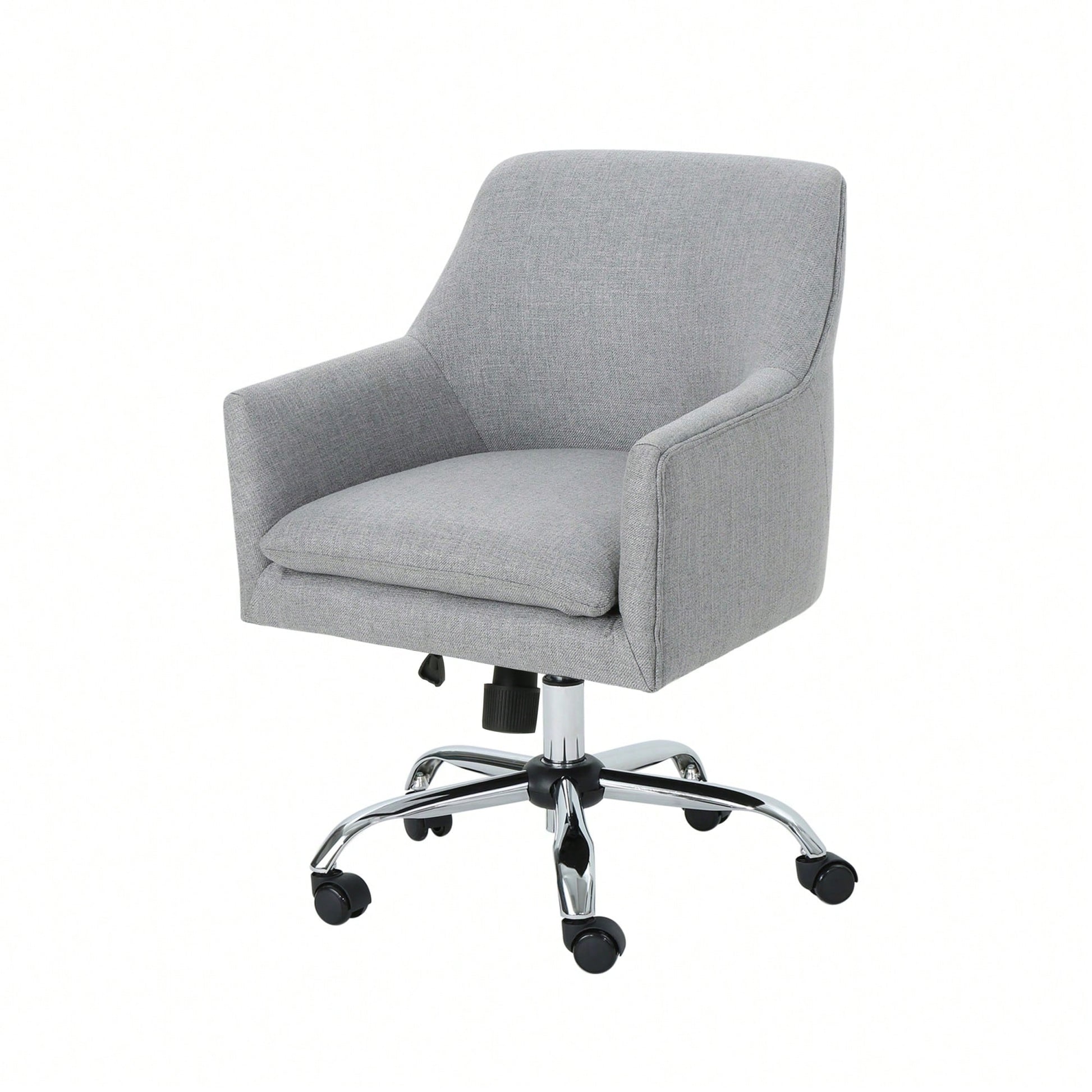 Enhance your office environment with this stylish and functional office chair. Designed for daily use, it features a swivel function and a gas lift mechanism that allows you to easily adjust the height to your preference. The plush upholstery and elegantly sloped armrests provide a sophisticated appearance, making this chair a perfect addition to any workspace. With its rolling casters and chrome-finished base, mobility is effortless, ensuring a polished and energized workday.