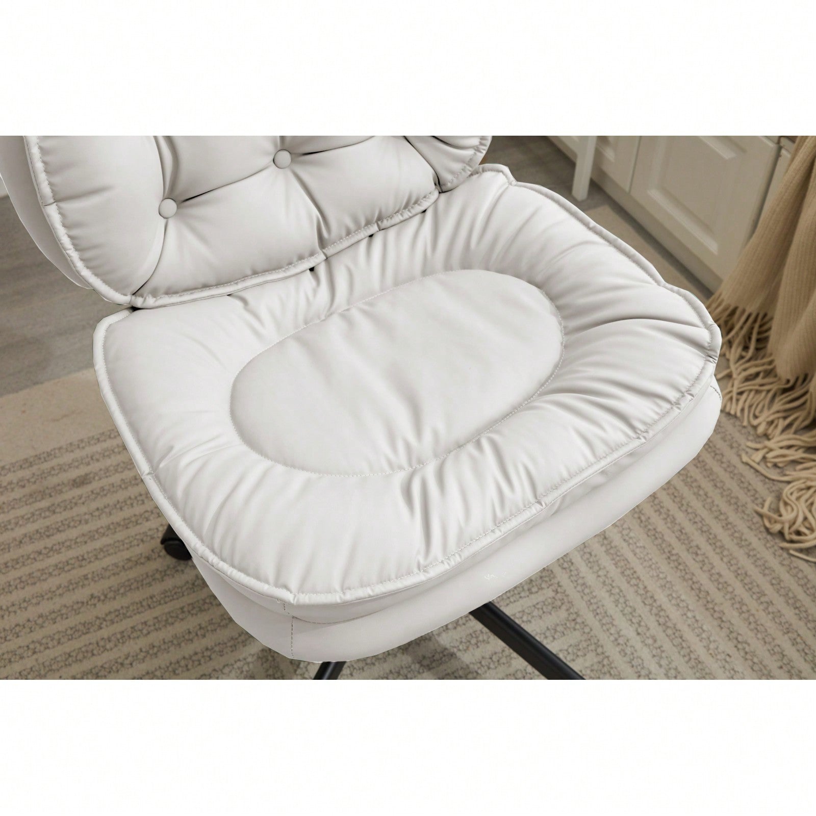 Ergonomic Cross Legged Office Chair with Wheels Adjustable Height Comfortable PU Leather Seat for Home and Office