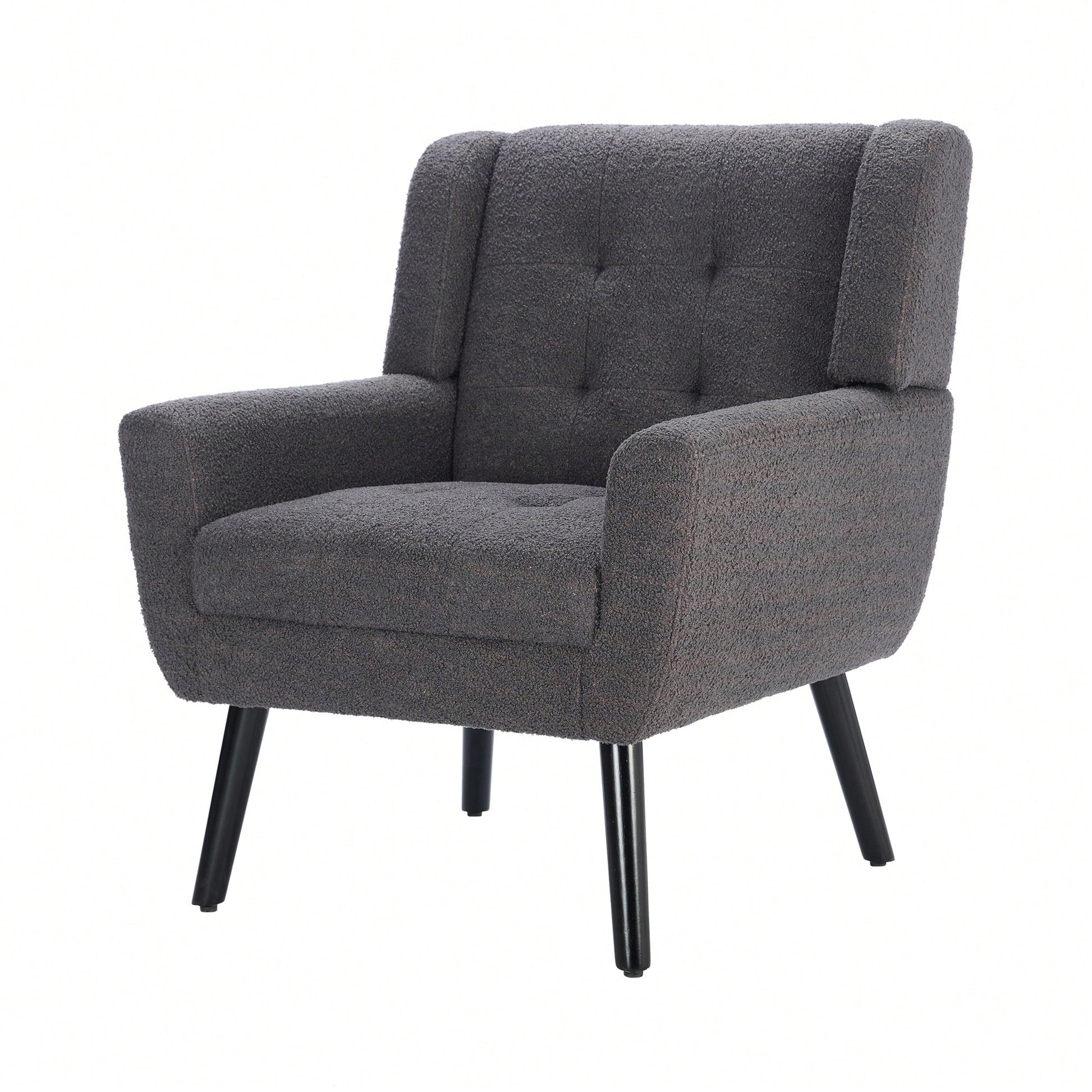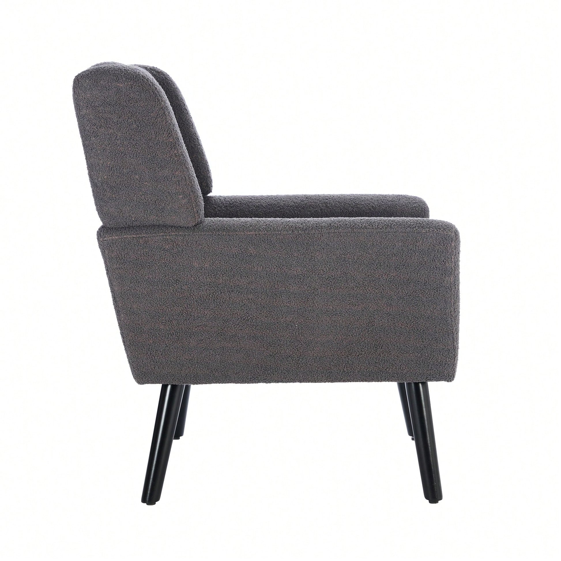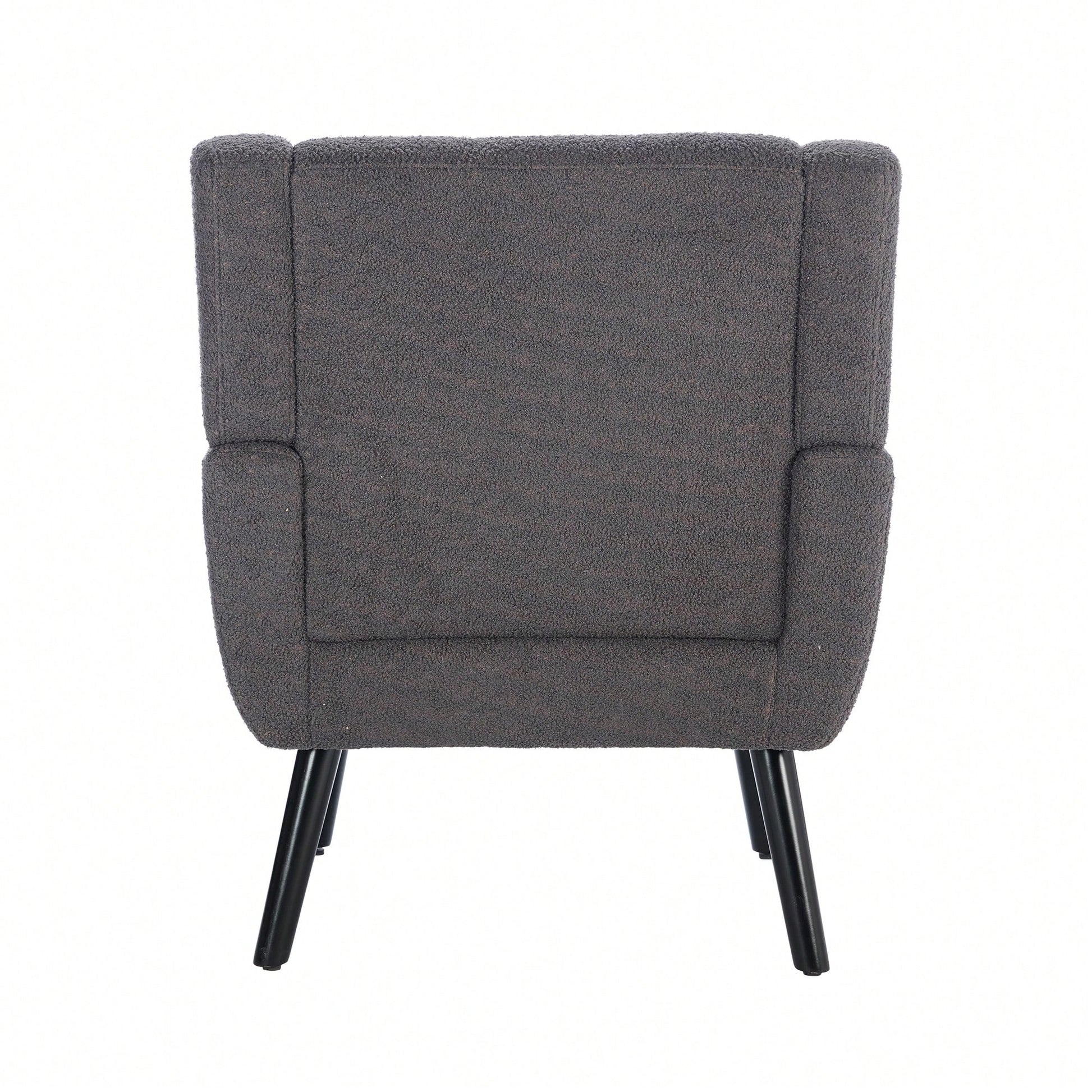 Ergonomic Soft Teddy Fabric Accent Chair For Living Room And Bedroom With Stylish Black Legs - Cozy Indoor Seating In Grey