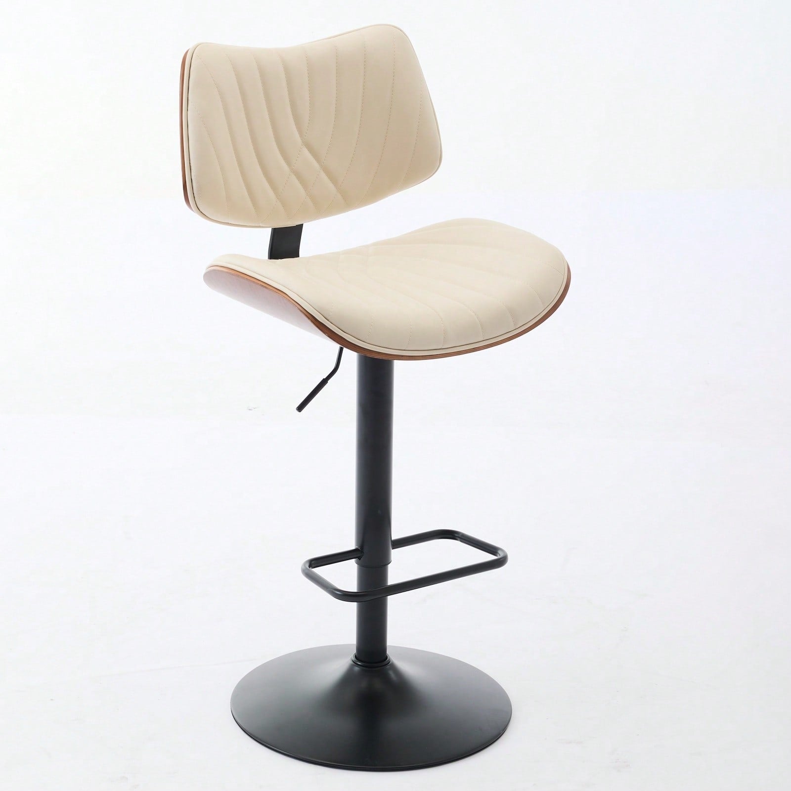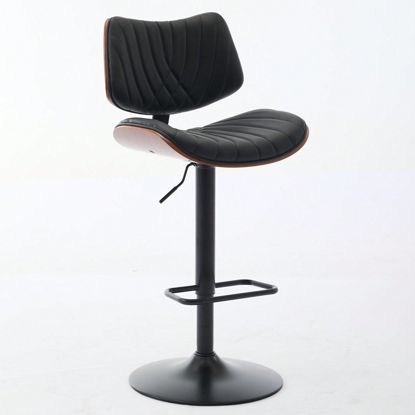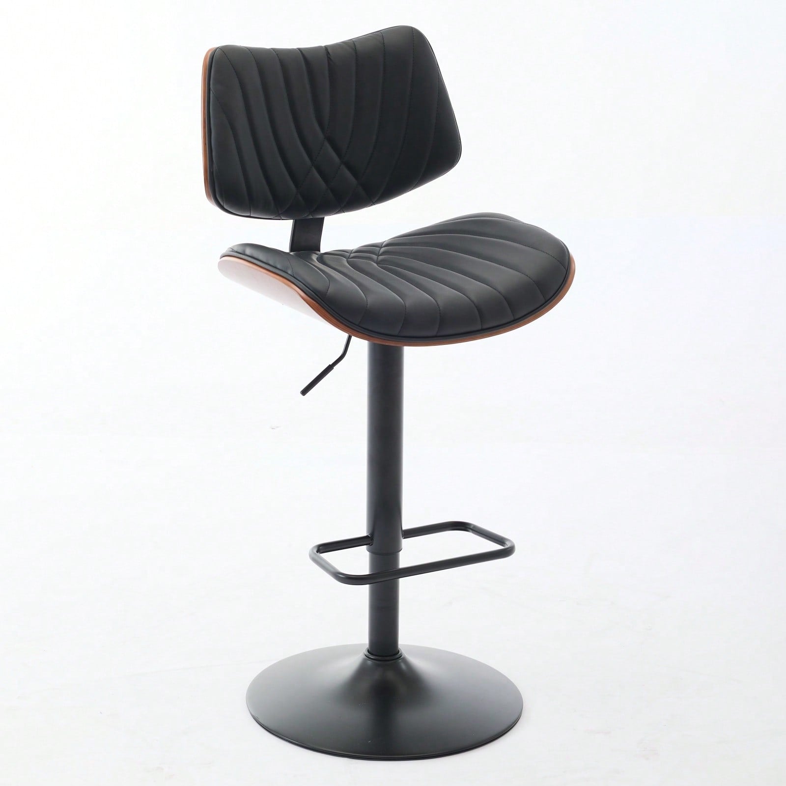 Adjustable Height Walnut Bentwood Bar Stools with Faux Leather Seat 360° Swivel Mid Century Modern Design for Kitchen Island and Dining Room