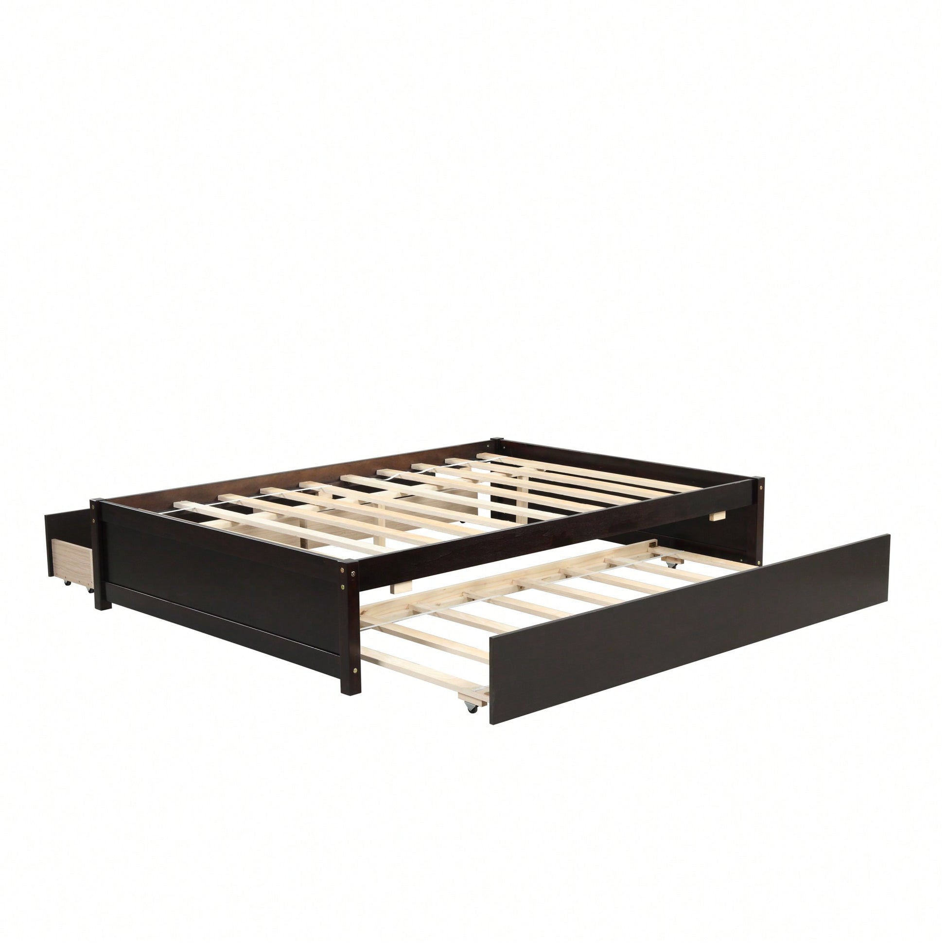 Espresso Full Bed With Twin Trundle And Dual Storage Drawers