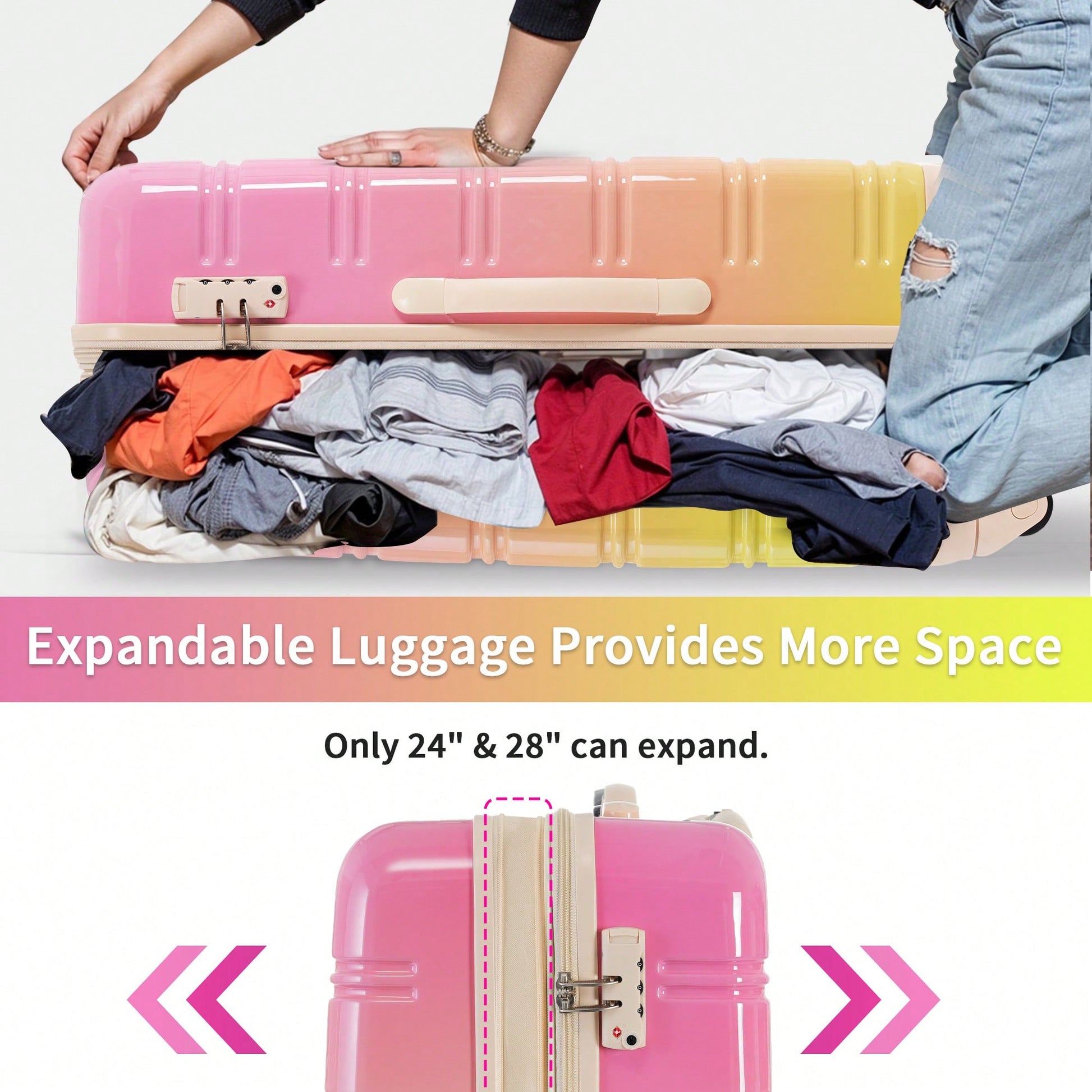 - Expandable: Yes (24" and 28" suitcases)