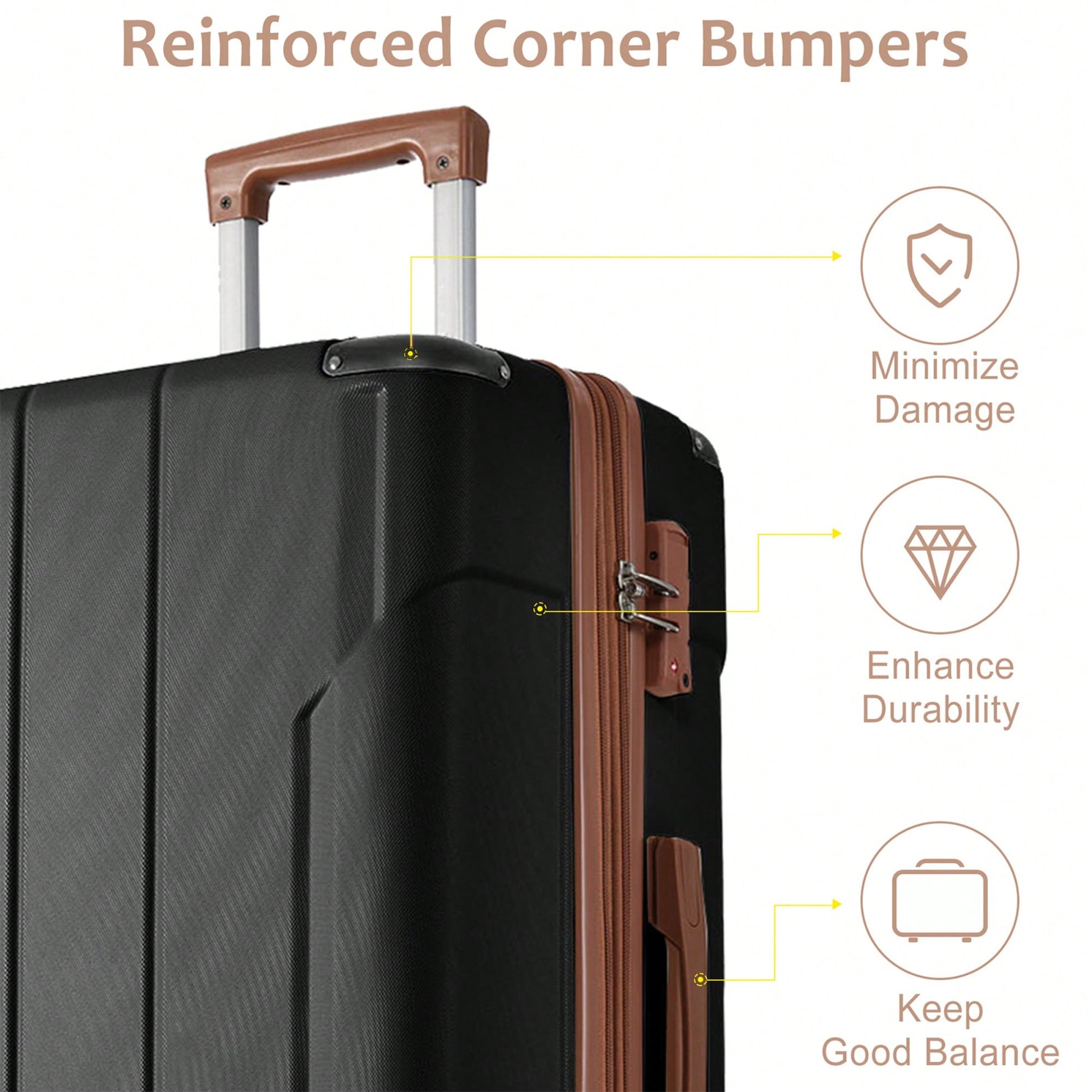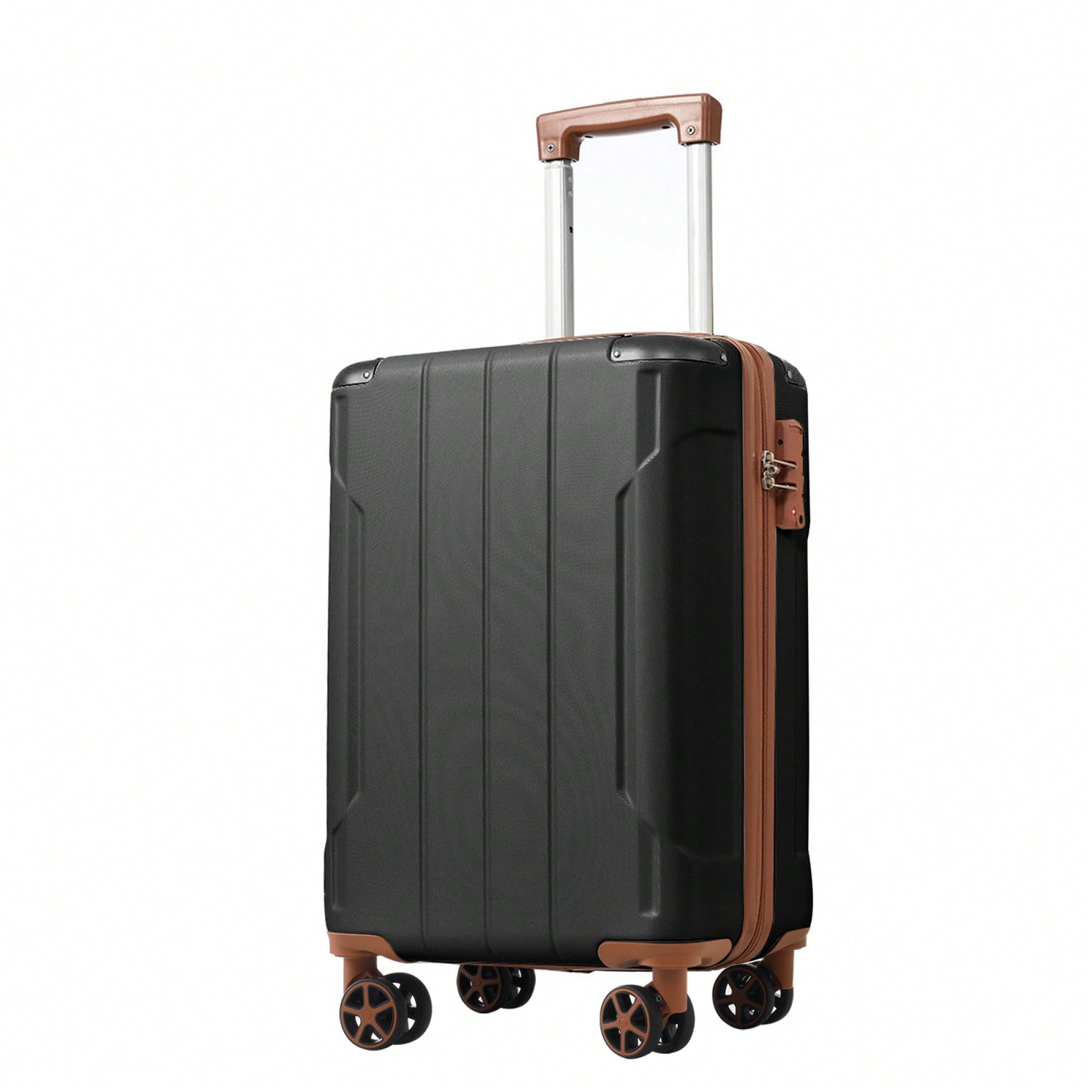 Expandable 3 Piece Hard Shell Luggage Set With Double Spinner Wheels And TSA Lock - Black Brown 20/24/28 Inch Suitcases