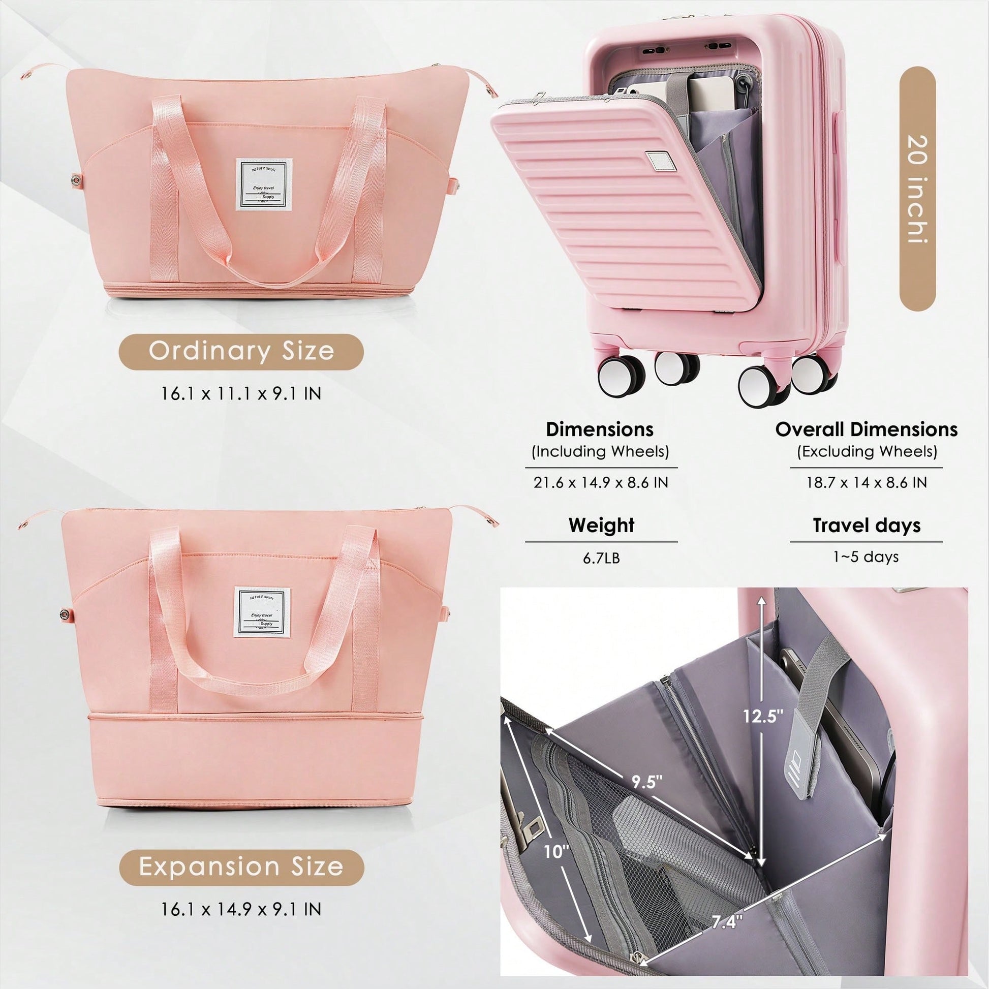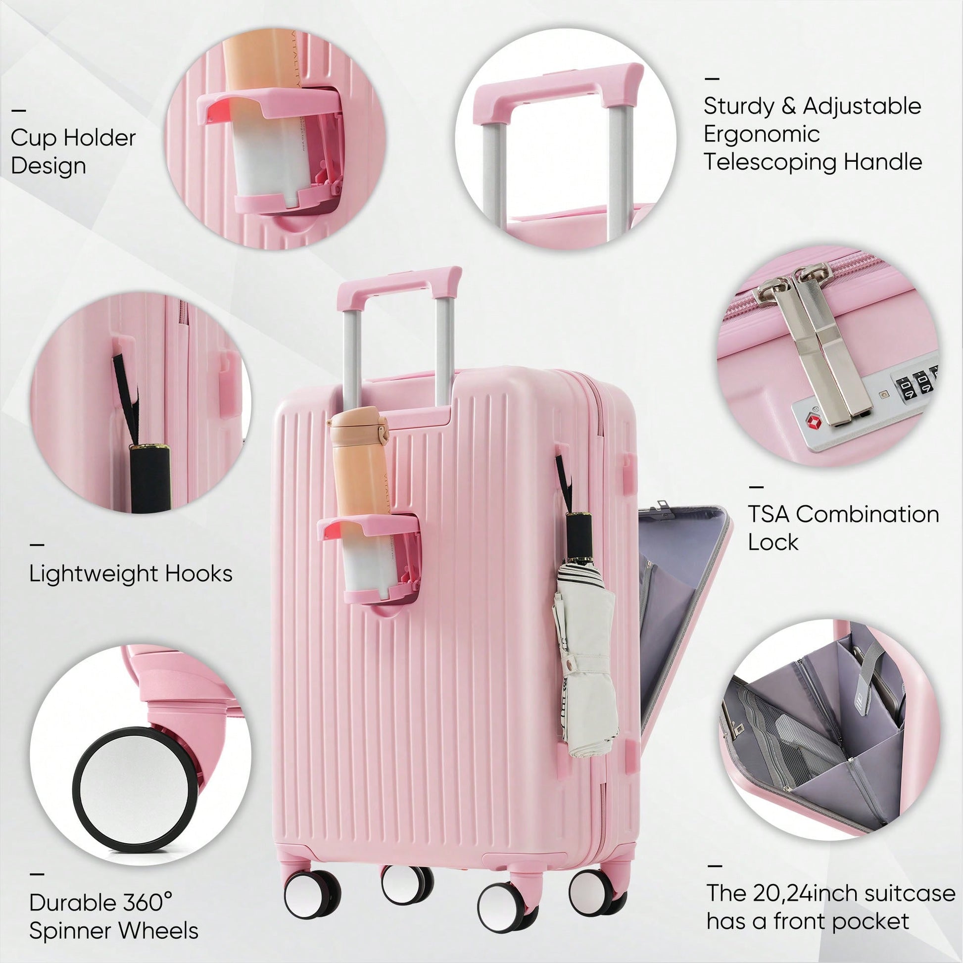 Experience hassle-free travel with this practical 3-piece suitcase set designed to meet all your travel needs. The set includes three sizes: 20 inches, 24 inches, and a larger option, all designed with user-friendliness in mind. The front-opening feature of the 20 and 24-inch cases allows for quick access to your belongings, making packing and unpacking seamless.