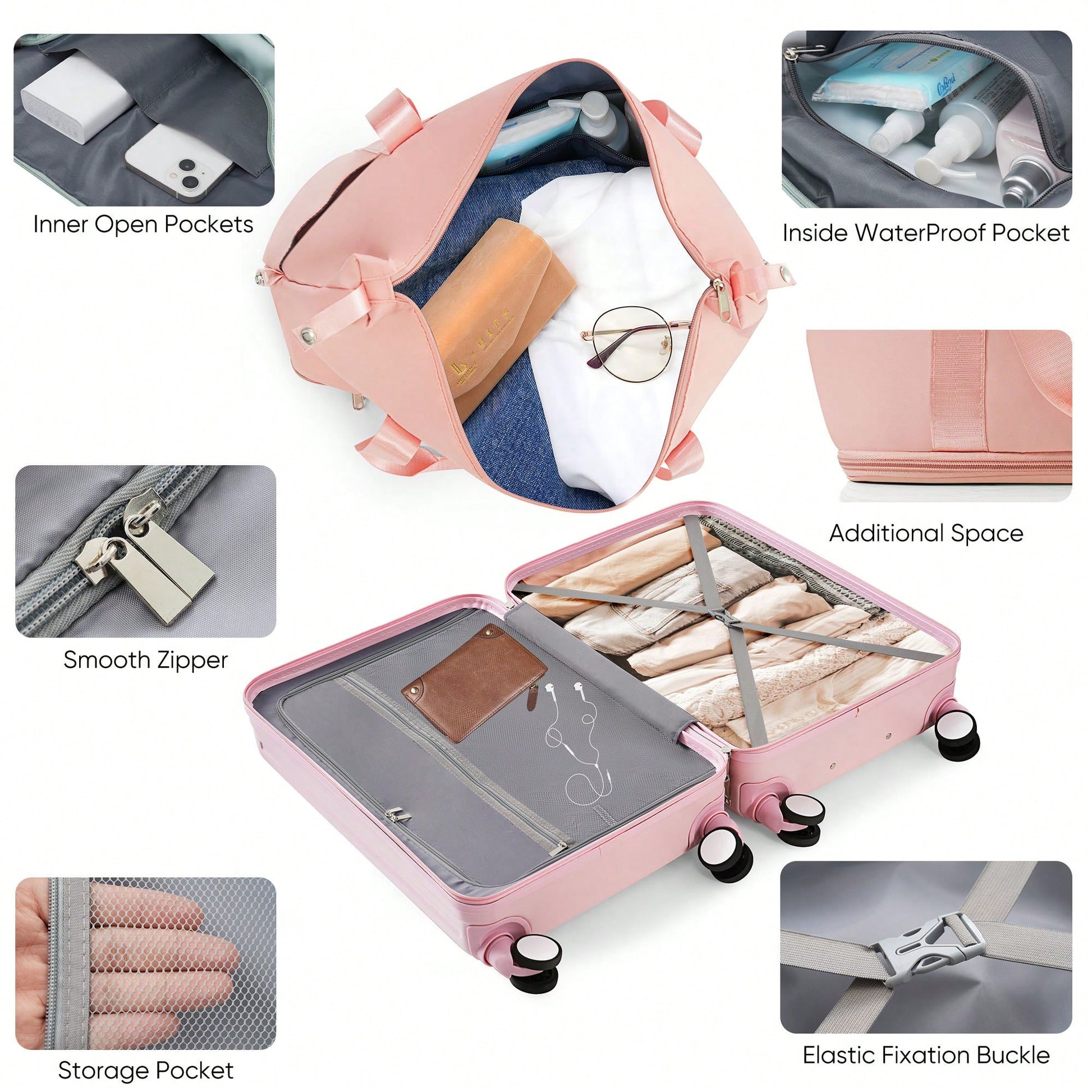 The expandable weekender travel bag, crafted from polyester fabric, is designed with mild water-repellent properties and includes multiple pockets to keep your smaller items organized while on the go.