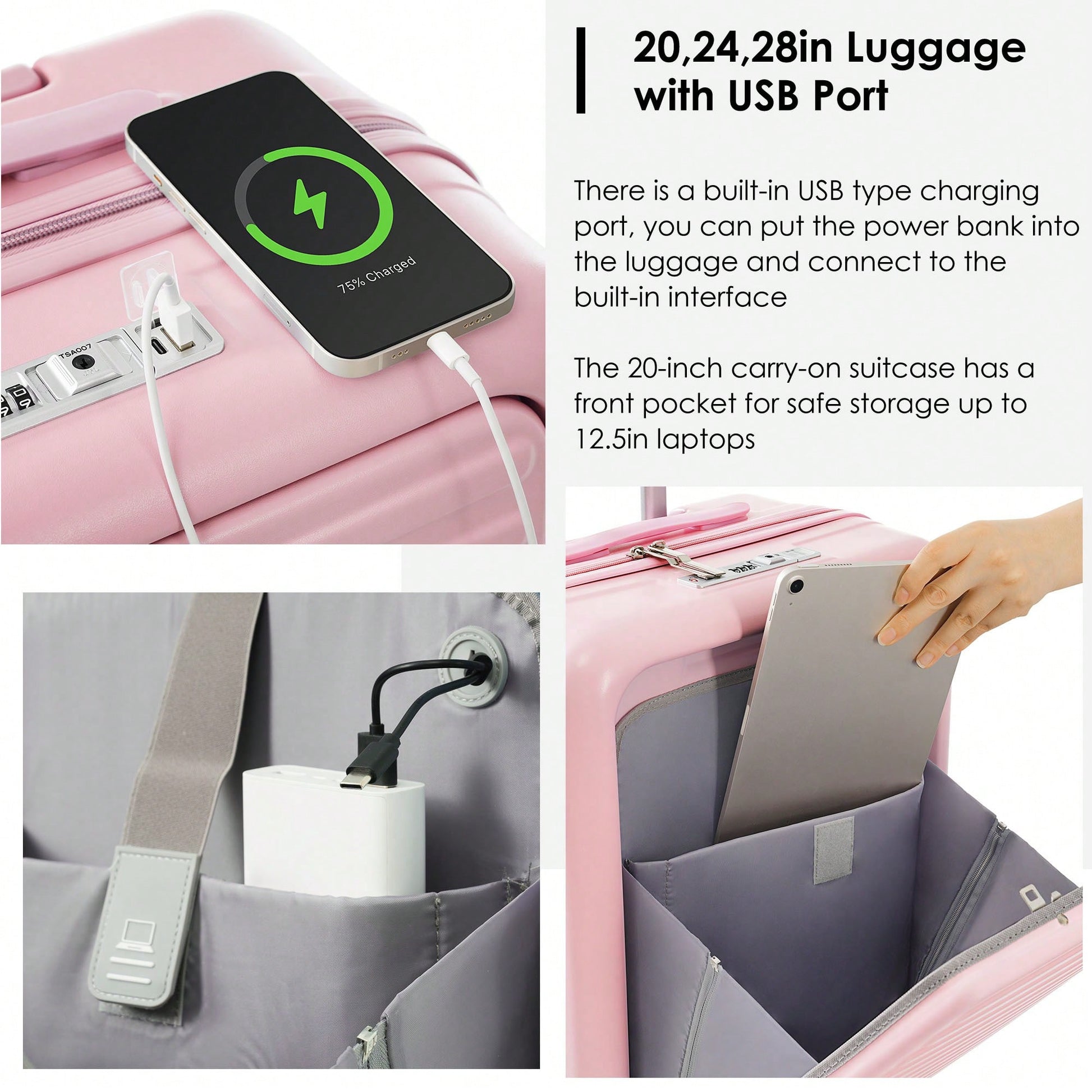 Navigating through busy airports and streets is made easy with the smooth 360-degree rotating wheels, enabling you to maneuver effortlessly. Staying connected while traveling is also simplified with built-in USB ports, so you can charge your devices whenever necessary (please note that the power bank is not included).