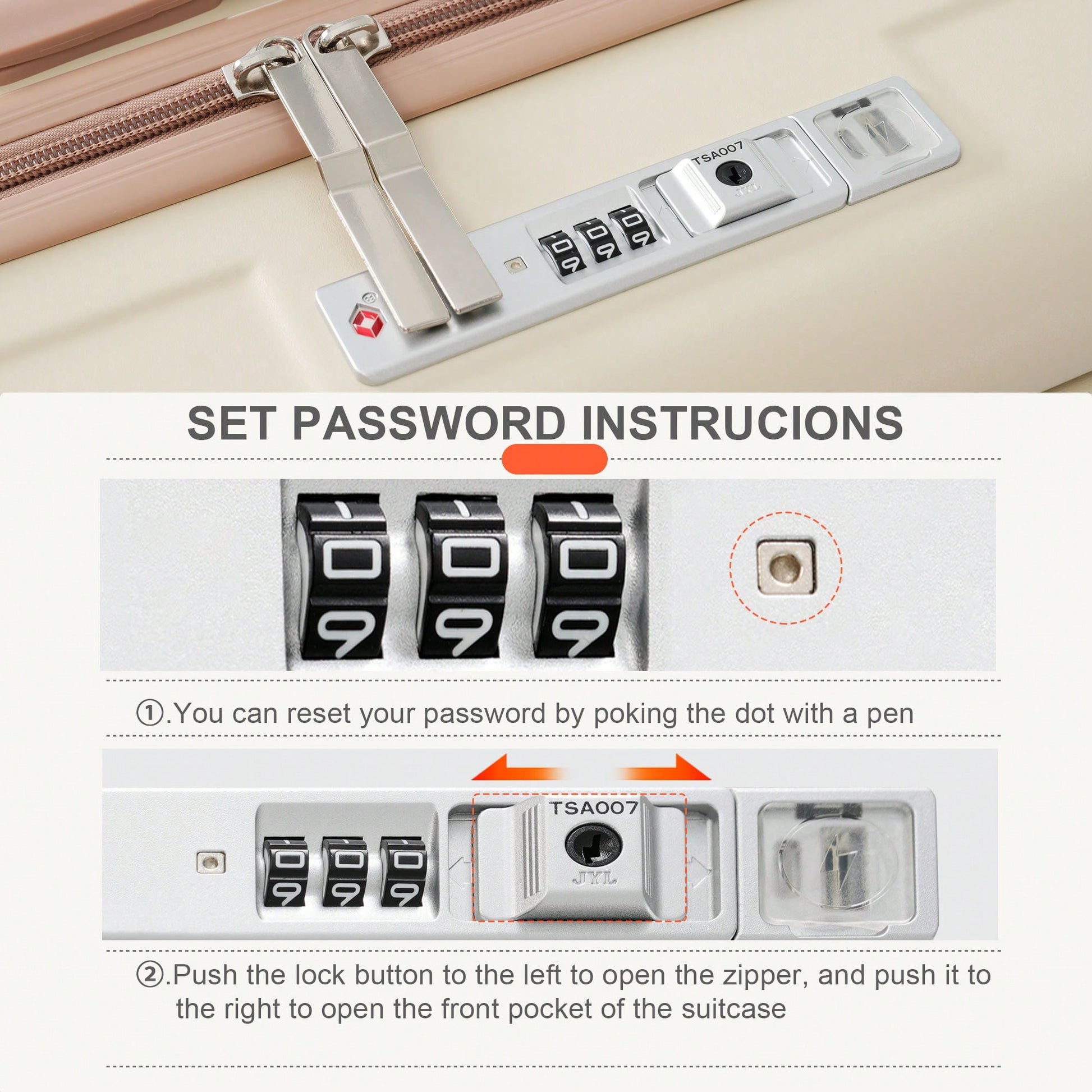 Expandable 4-Piece Luggage Set With USB Port And Cup Holder - Airline Certified Hard Shell Carry-On Bags In Ivory And Gold