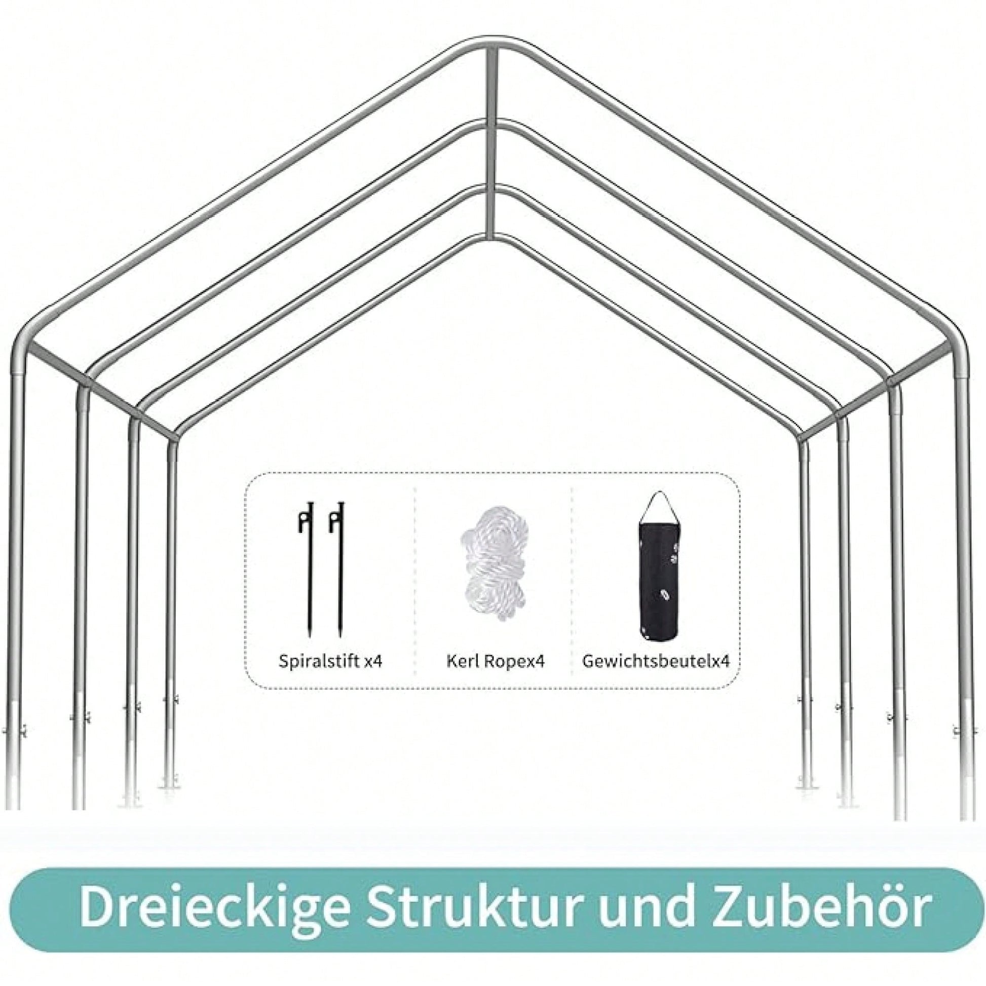 This heavy-duty carport canopy measures 10x20ft and features a robust steel frame designed for durability and stability. The powder-coated finish protects against chipping and corrosion, while the adjustable height options allow for customization based on your needs. The carport comes with valuable extras, including solar lights and windproof sandbags, enhancing its functionality. The assembly process is straightforward, requiring no special tools and ensuring a quick setup. Warranty coverage is provided for the main components, giving you peace of mind with your purchase.