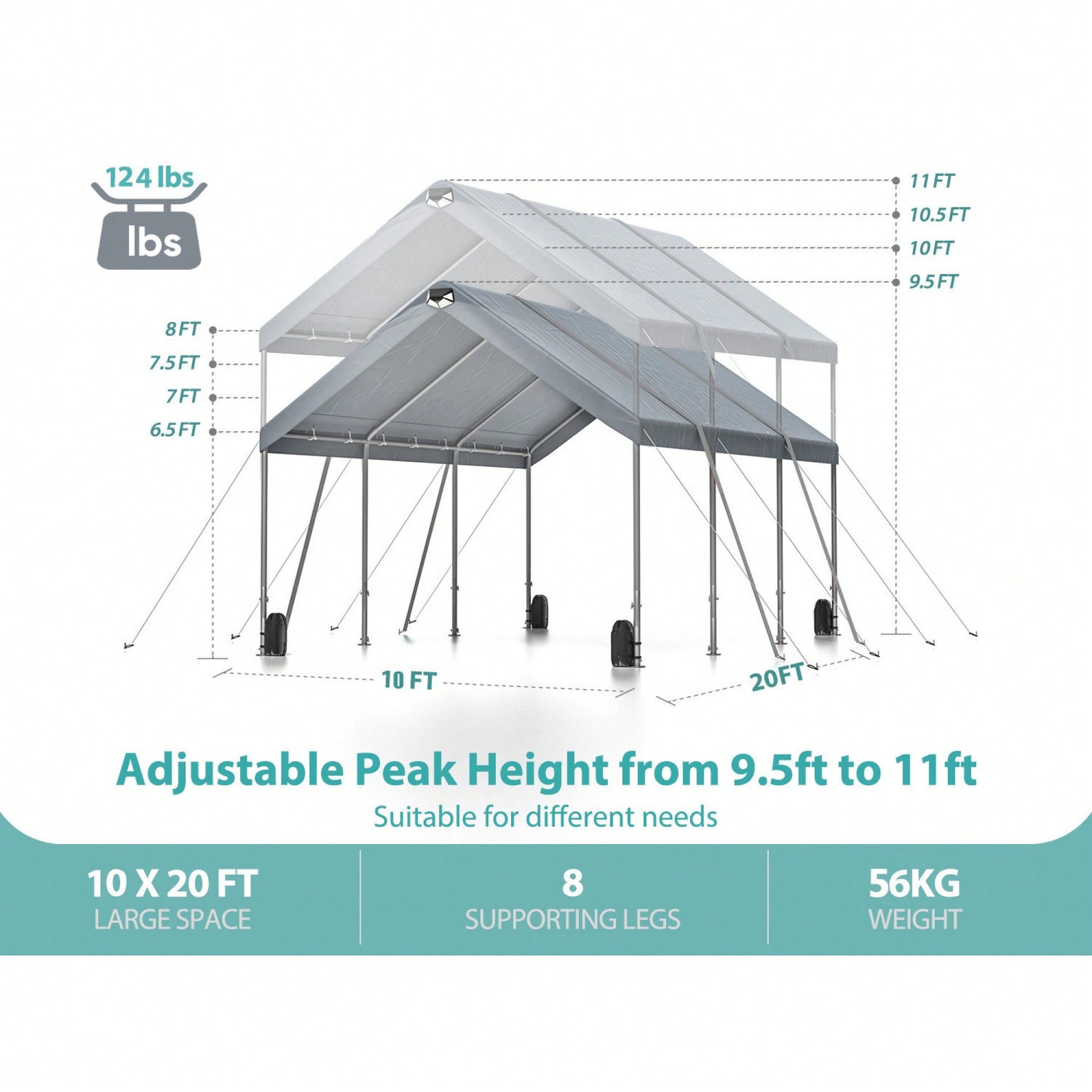 Extra Large Heavy Duty Portable Car Canopy Tent With Adjustable Height 9.5ft To 11ft Removable Roof And Side Walls For Cars SUVs And Boats
