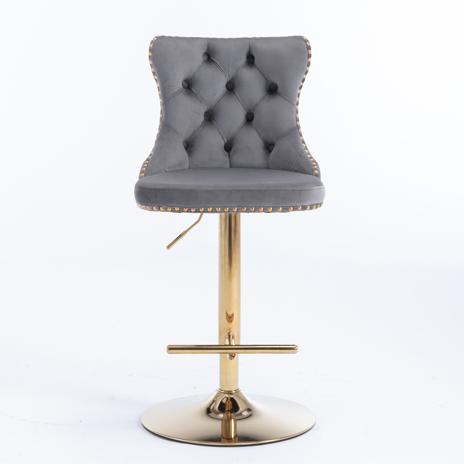 A&A Furniture,Golden Swivel Velvet Barstools Adjusatble Seat Height from 25-33 Inch, Modern Upholstered Bar Stools with Backs Comfortable Tufted for Home Pub and Kitchen Island(Gray,Set of 2)