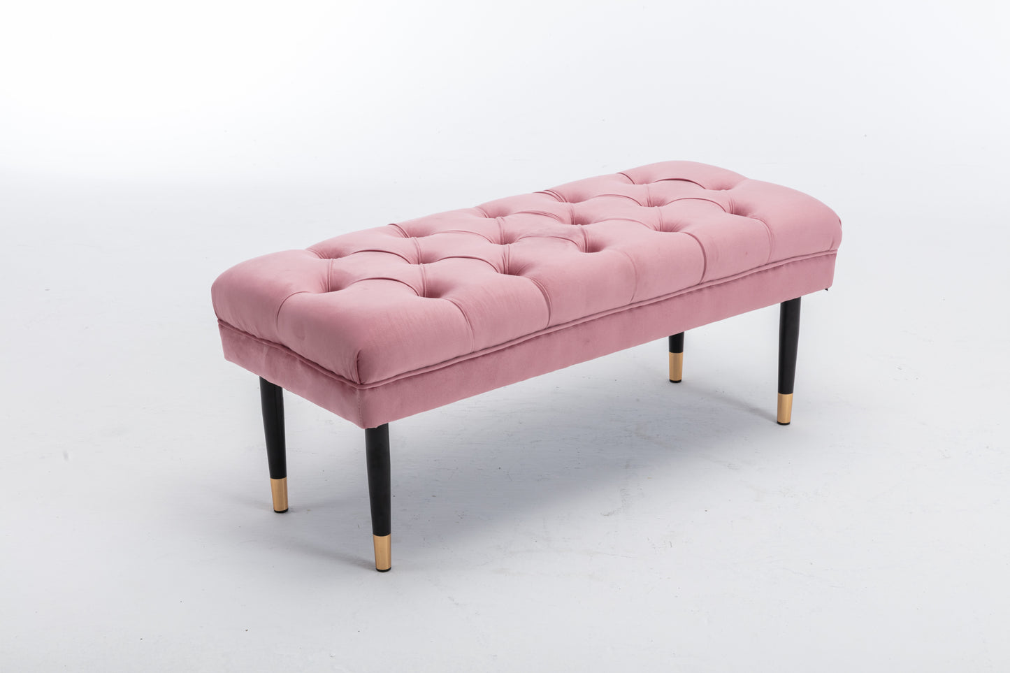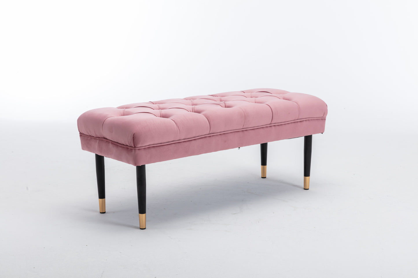 Tufted Velvet Ottoman Bench Modern Upholstered Footstool with Metal Legs for Living Room Entryway Bedroom Pink