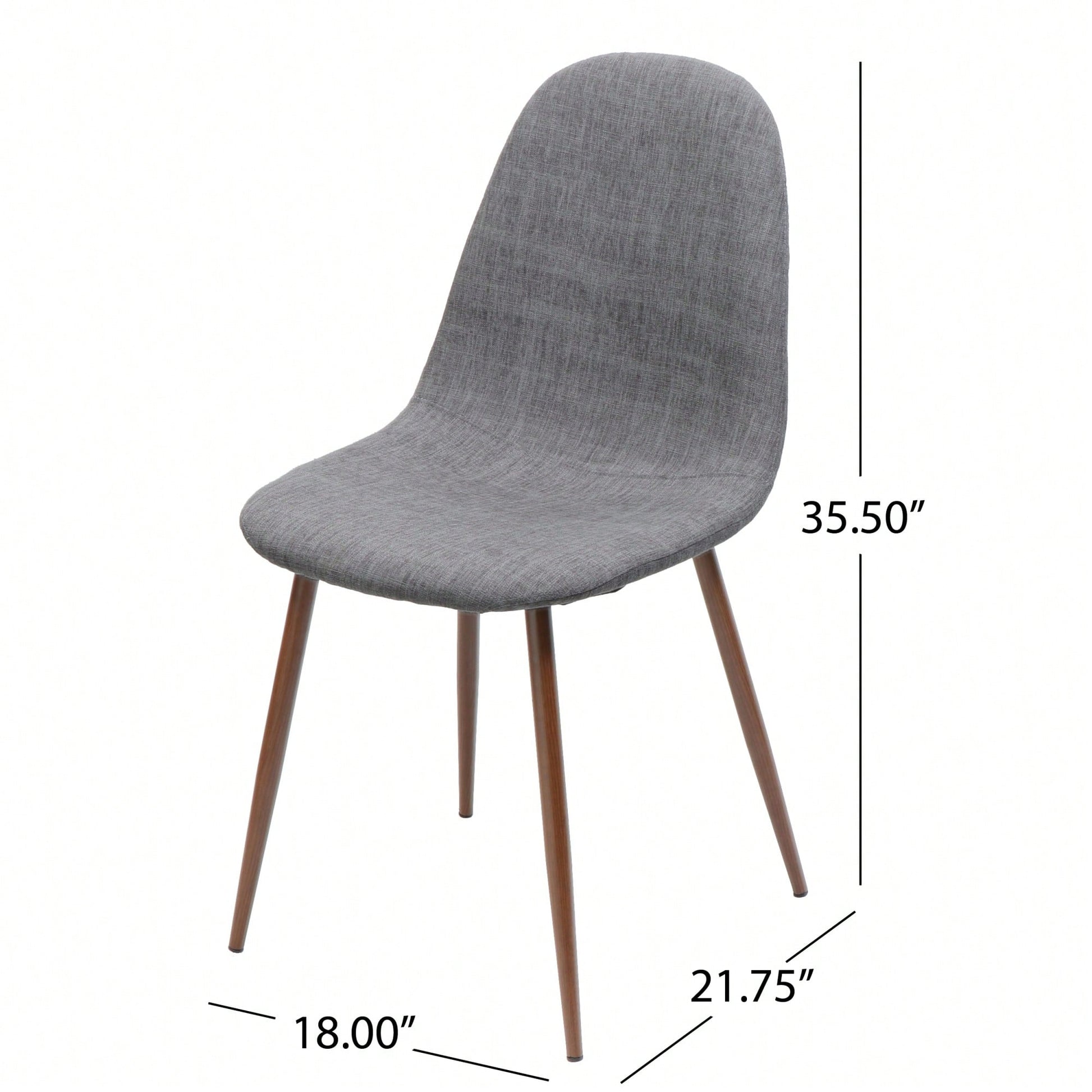 Fabric Upholstered Mid-Century Dining Chairs With Dark Walnut Finished Metal Legs - Set Of 2