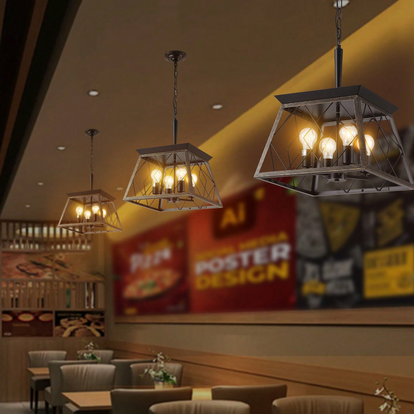 1.Retro Design: Semi-open trapezoidal frame made of high-quality iron, decorated with 4 vintage-style light bulbs to add a retro and classic charm.