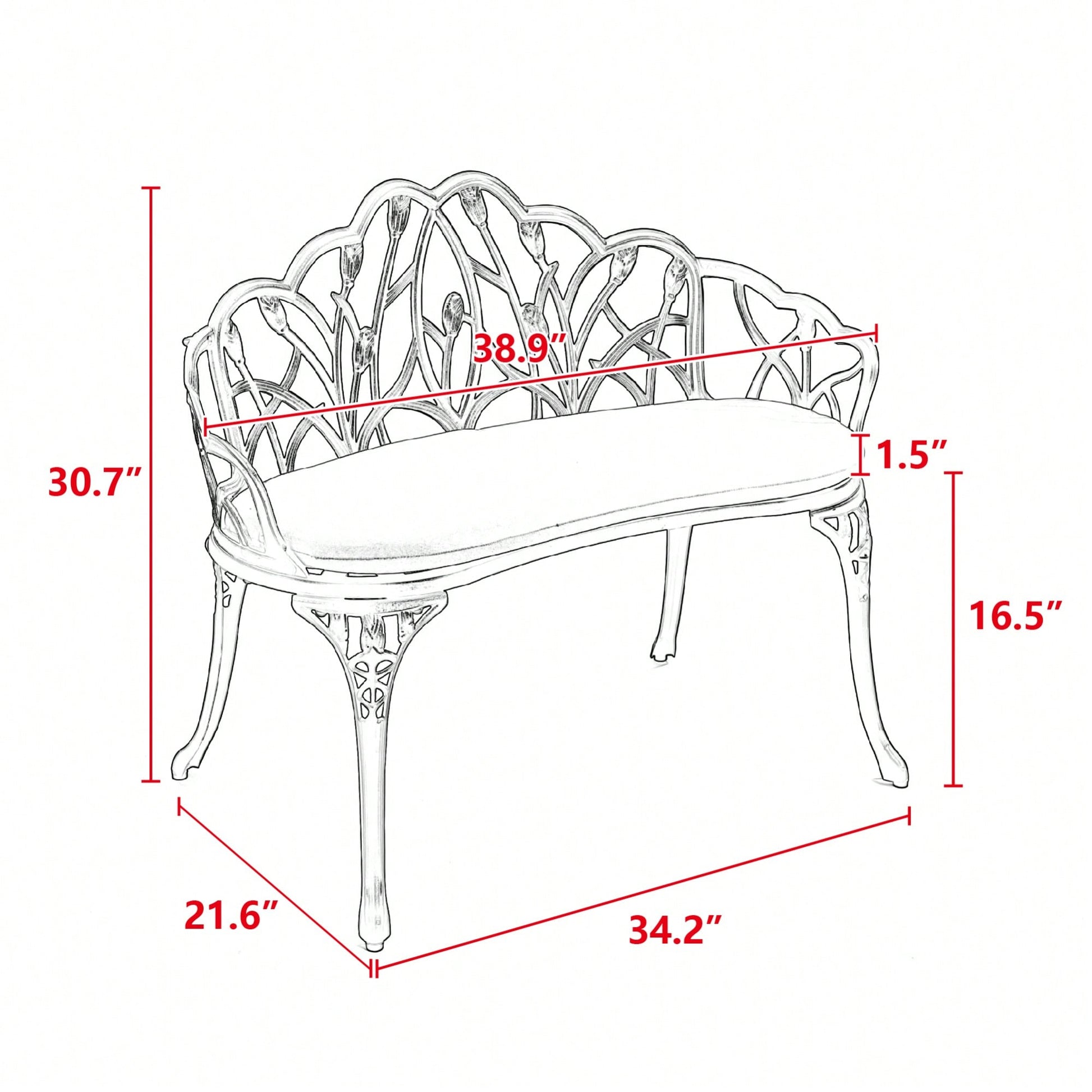 1. Key Features: - Elegant floral rose design - Made from durable cast aluminum - Ideal for outdoor settings like patios and parks - Ergonomic design for comfort - Comes with a black cushion for added style 2. Product Description: This beautifully designed metal park bench is perfect for enhancing your outdoor space. Crafted from durable cast aluminum, it ensures longevity and withstands the elements while providing a comfortable seating option. The elegant floral rose motif adds a touch of sophistication, making it an excellent choice for patios, parks, lawns, and yards. The ergonomic design ensures comfort during long sitting periods, and the included black cushion enhances both style and comfort. Specifications: - Material: Cast aluminum - Color: Black with cushion - Suitable for: Outdoor use (patio, park, lawn, yard)