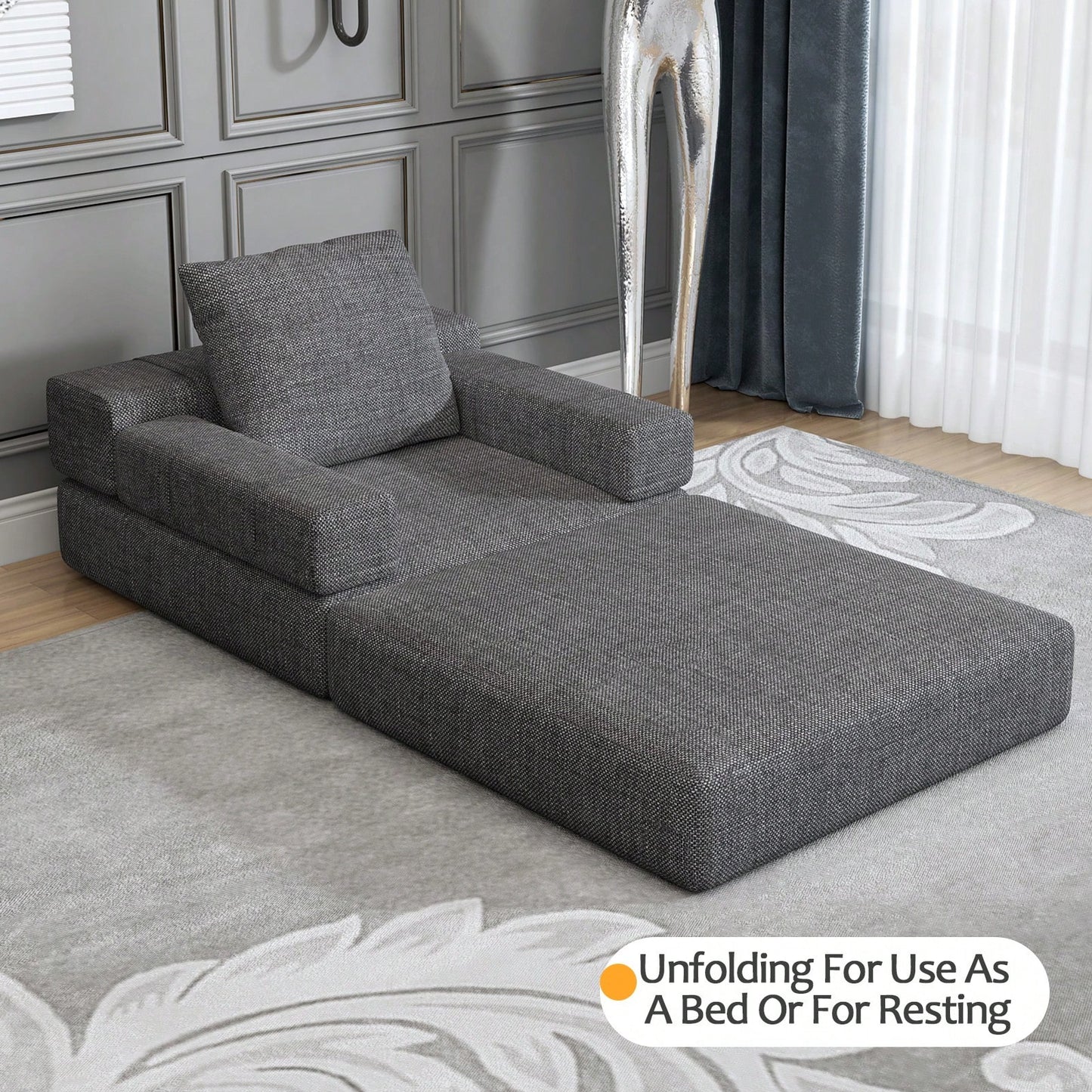 Foldable Sofa Bed, Folding Lounger Single Sofa With Removable Cushions, Portable Sofa Chair For Living Room, Guest Room, Playroom