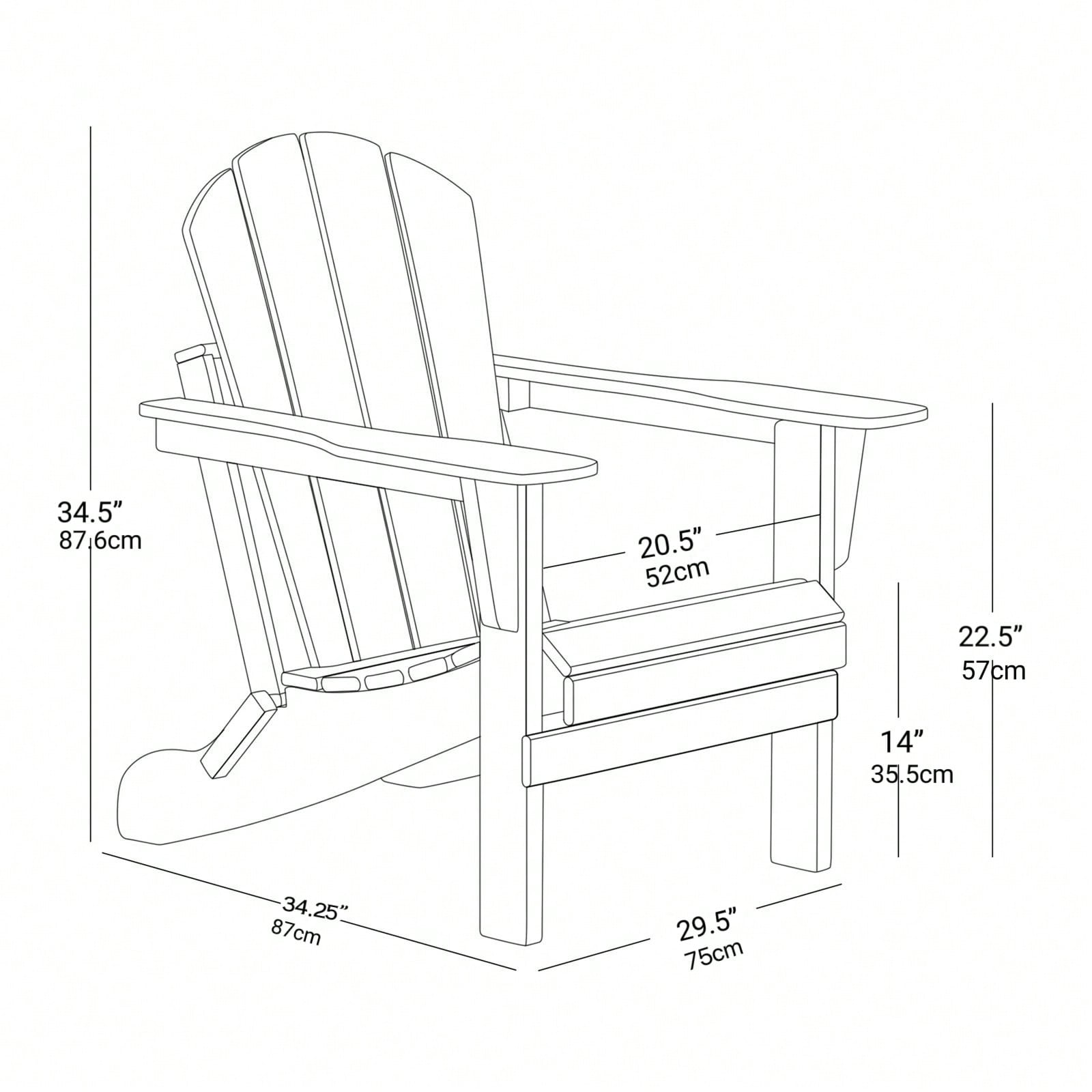 Folding Adirondack Chair is designed for easy storage and relocation with its folding and stackable design. Made of durable Polyethylene(HDPE), this weather-resistant chair can withstand various climates without denting, cracking, peeling, or rotting. With a large seat, ergonomic backrest, and 29.3-inch armrest, it provides a comfortable seating solution for relaxation. The chair has a load-bearing capacity of 380 lbs, making it suitable for people of any size. Assembly is quick and easy with clear instructions and necessary hardware included.