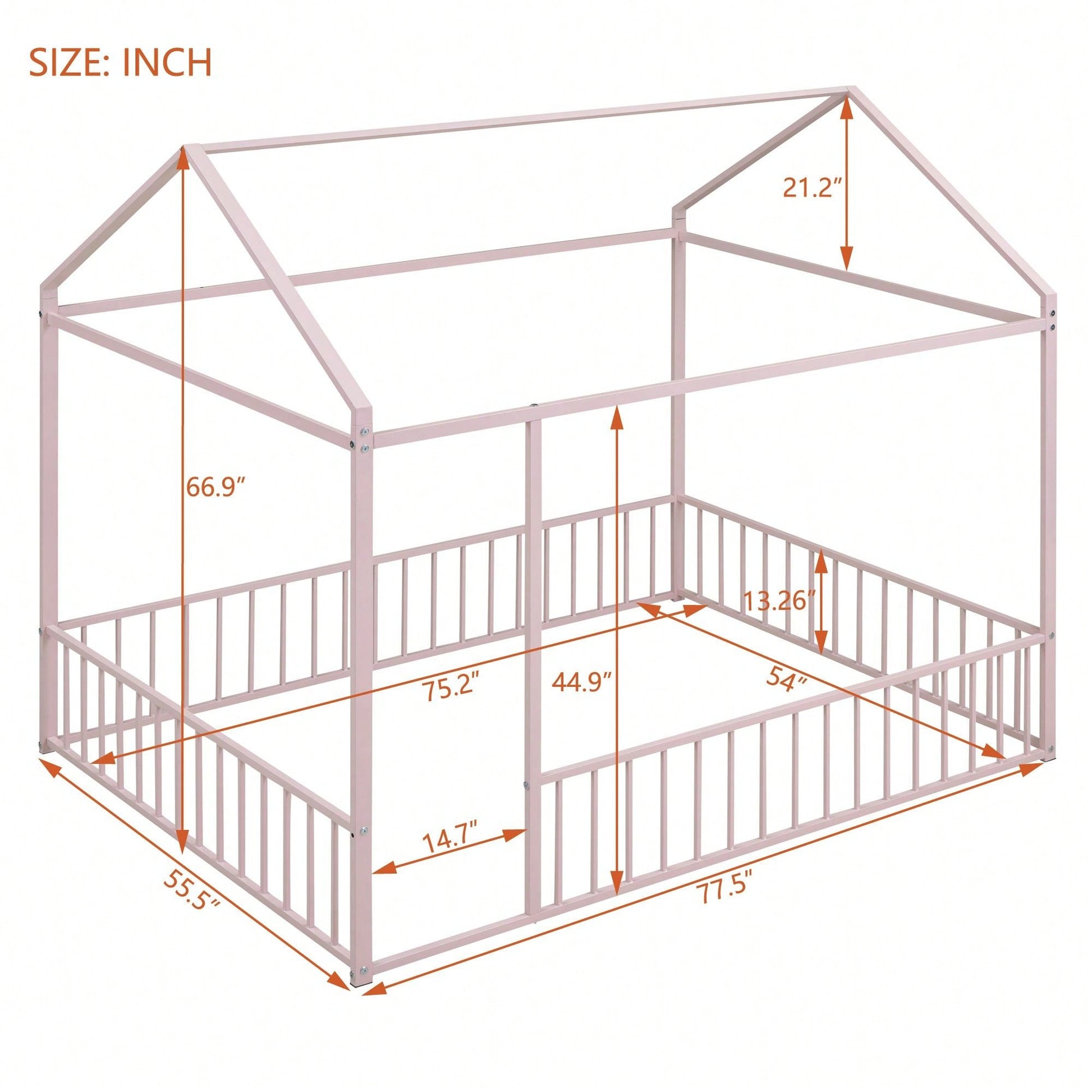 4. Dimensions: Overall house bed dimension: 77.5" x 55.5" x 66.9"(L x W x H). Mattress not included.