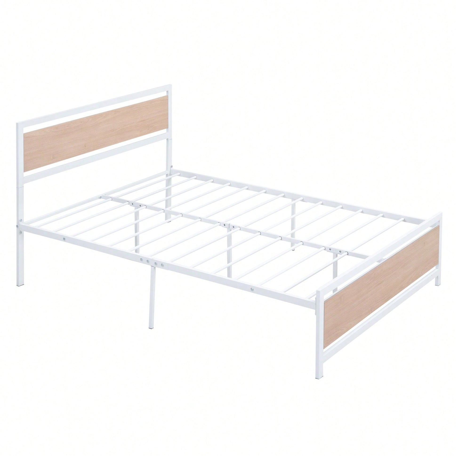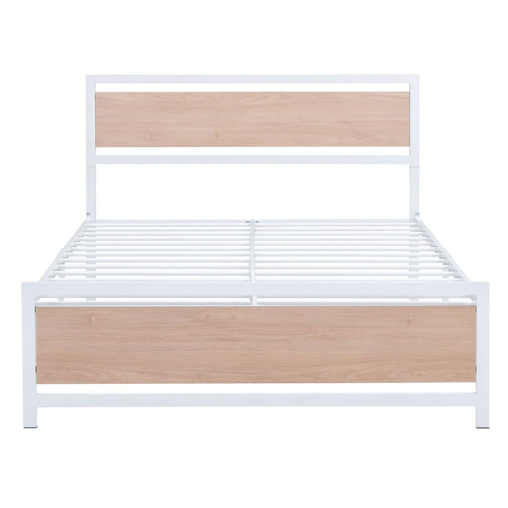 Full Size Platform Bed, Metal And Wood Bed Frame With Headboard And Footboard