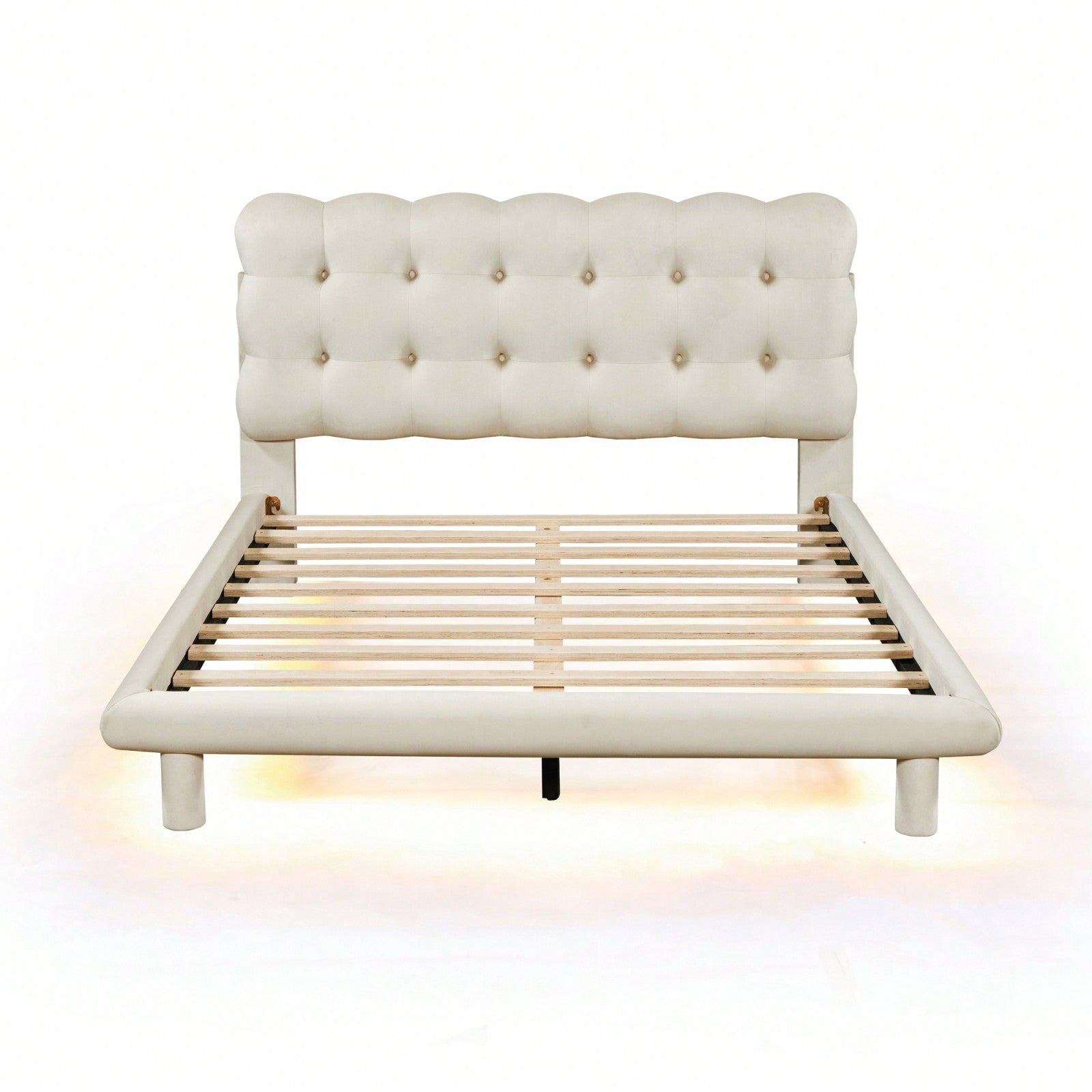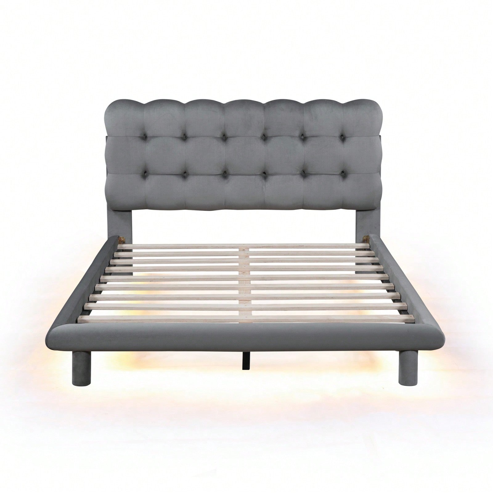 Modern Velvet Platform Bed with LED Lights and Button-Tufted Headboard for Ultimate Comfort and Style