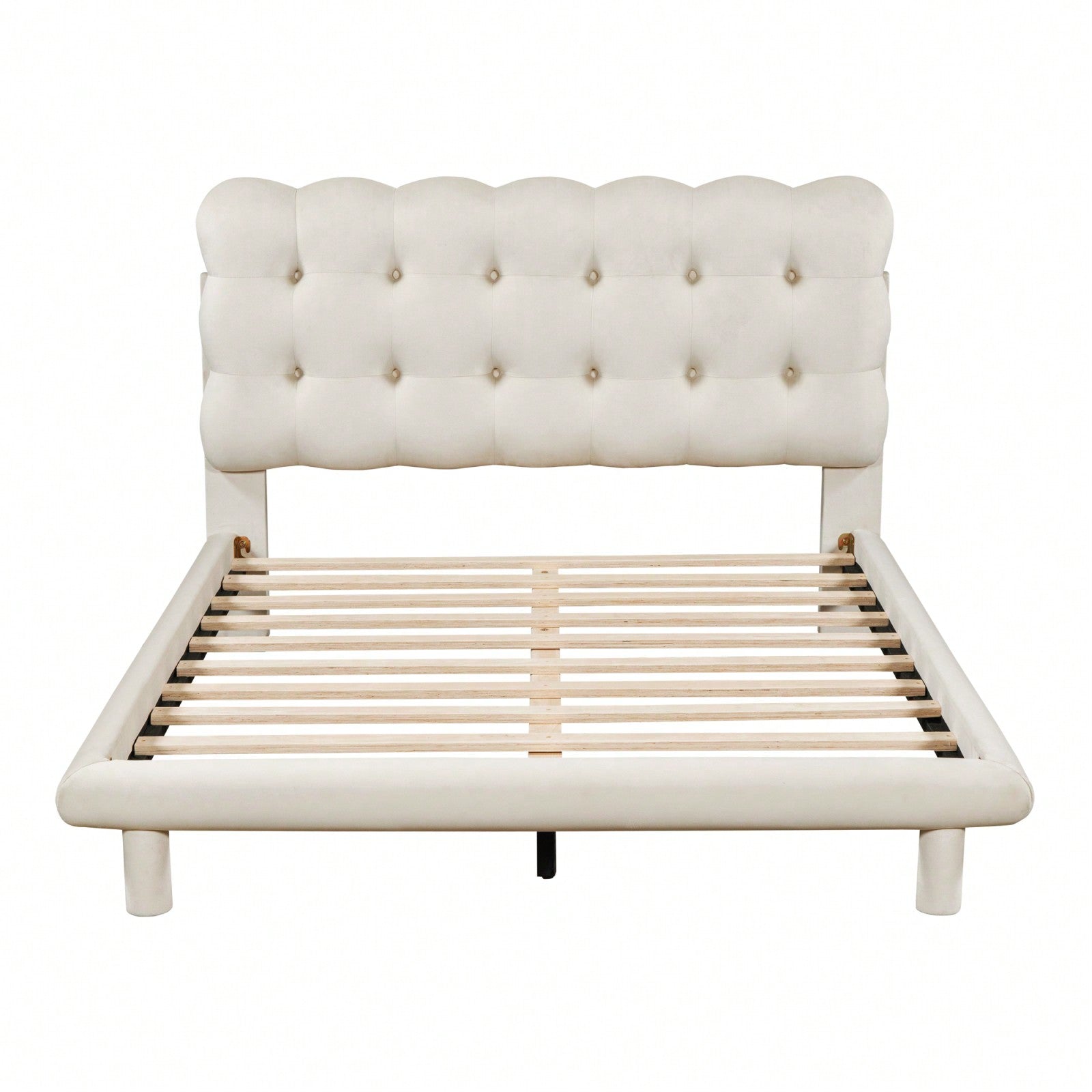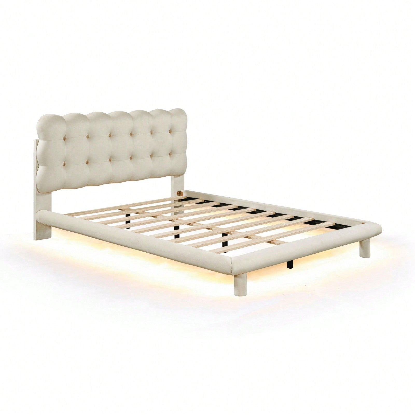 1. Elevate your bedroom décor with this elegant Full Size Velvet Platform Bed featuring a button-tufted design headboard and modern LED light frame.