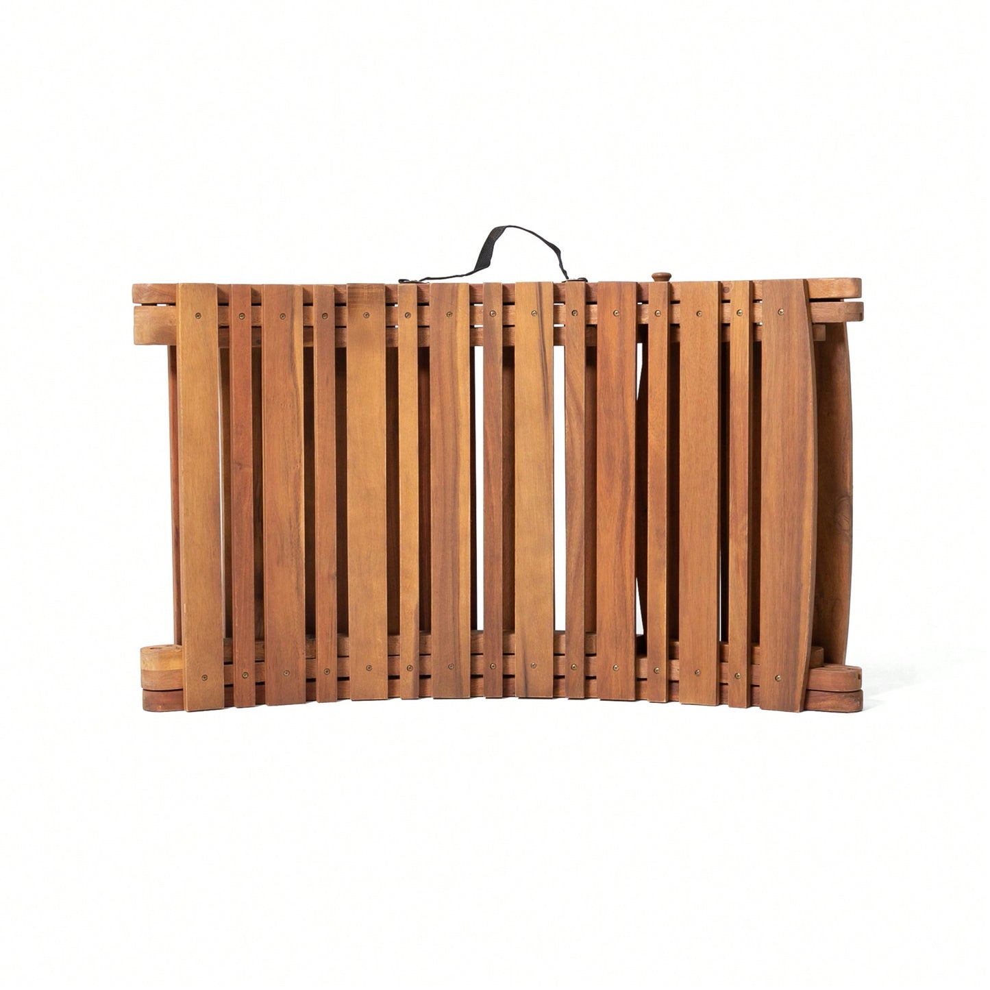 Experience a unique and comfortable way to lounge with this wood outdoor chaise lounge. Crafted from durable acacia wood, it offers a sleek and exotic look while naturally resisting wear and tear from outdoor elements. The foldable design allows for easy storage and transportation, making it perfect for any outdoor setting. Enjoy the convenience of having a stylish and functional chaise lounge that requires no assembly and is ready to use right away.