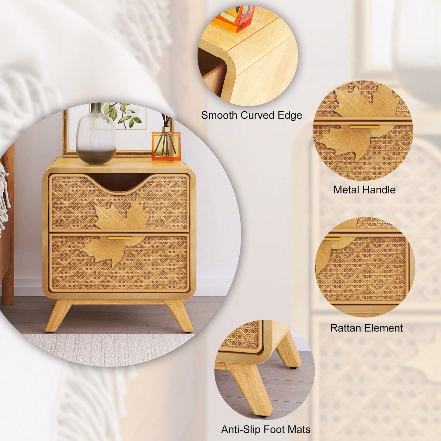 **Key Features:** - Hand-carved design showcasing traditional craftsmanship - Made from high-quality Medium Density Fiberboard (MDF) for durability - Rattan elements add elegance and texture to any room - Vintage style complements various home decor themes - Two spacious drawers for organized storage of personal items **Product Description:** This hand-carved accent cabinet combines traditional craftsmanship with modern functionality. Constructed from premium Medium Density Fiberboard (MDF), it offers a durable and sleek finish that ensures longevity. The unique rattan elements on the surface elevate the aesthetic, making your space feel elegant and sophisticated. Its vintage style seamlessly integrates with diverse interior designs, while the natural finish provides a comfortable visual experience. With two drawers, this cabinet offers ample storage for documents, jewelry, and everyday essentials, helping you maintain a tidy environment. Easy assembly is guaranteed with straightforward instructions and numbered parts, allowing you to set it up effortlessly. **Specifications:** - Material: Medium Density Fiberboard (MDF) - Number of Drawers: 2 - Style: Vintage - Assembly: Easy with included instructions