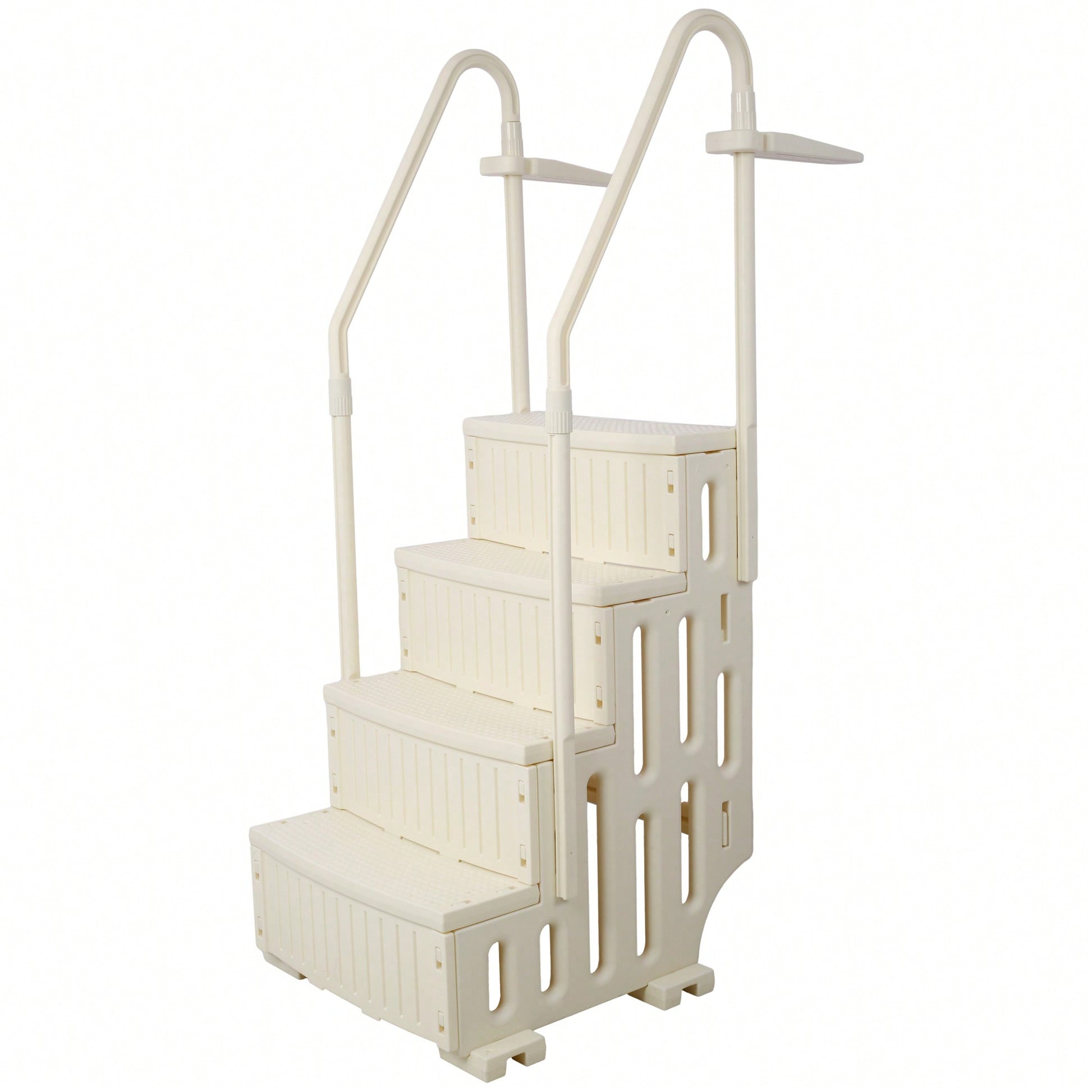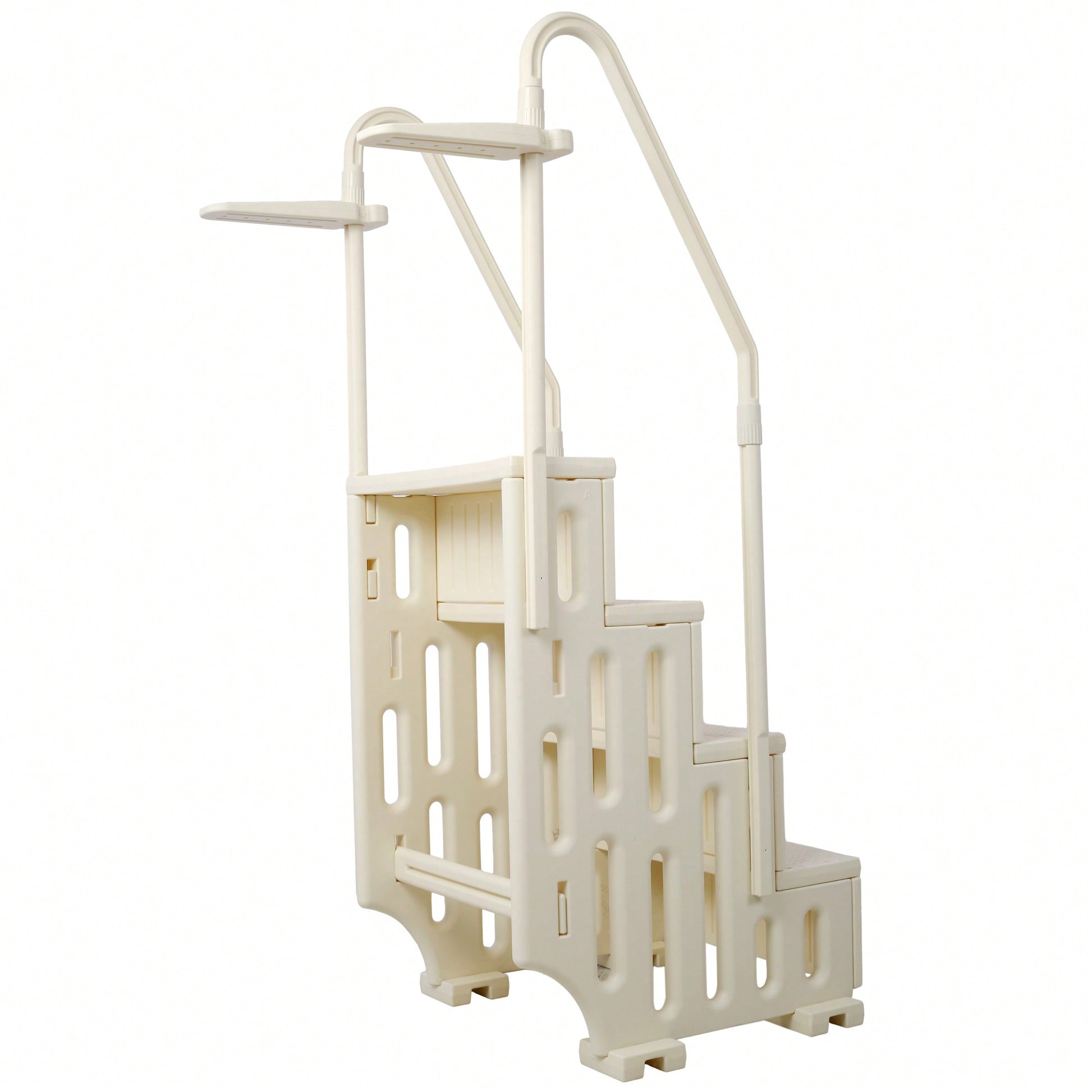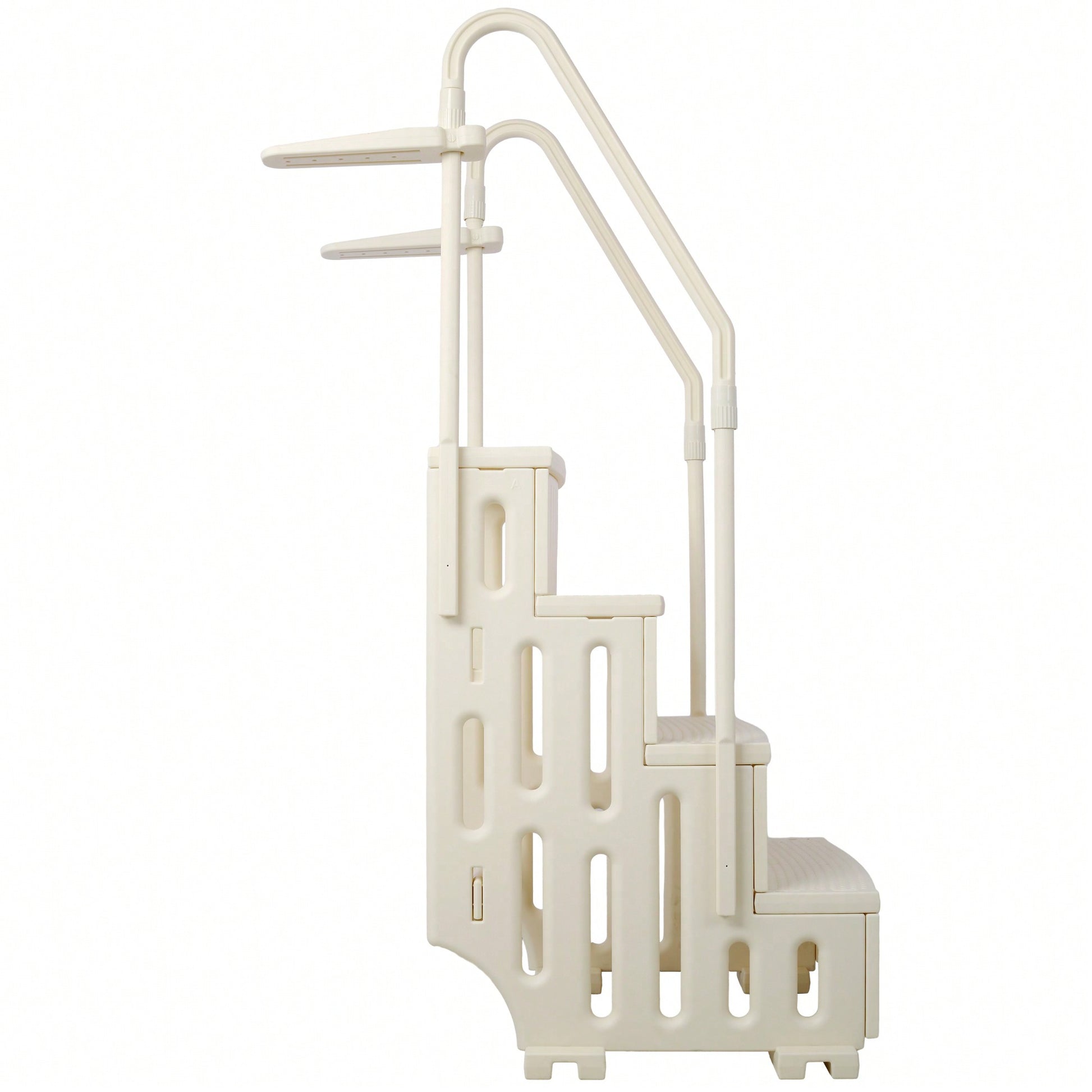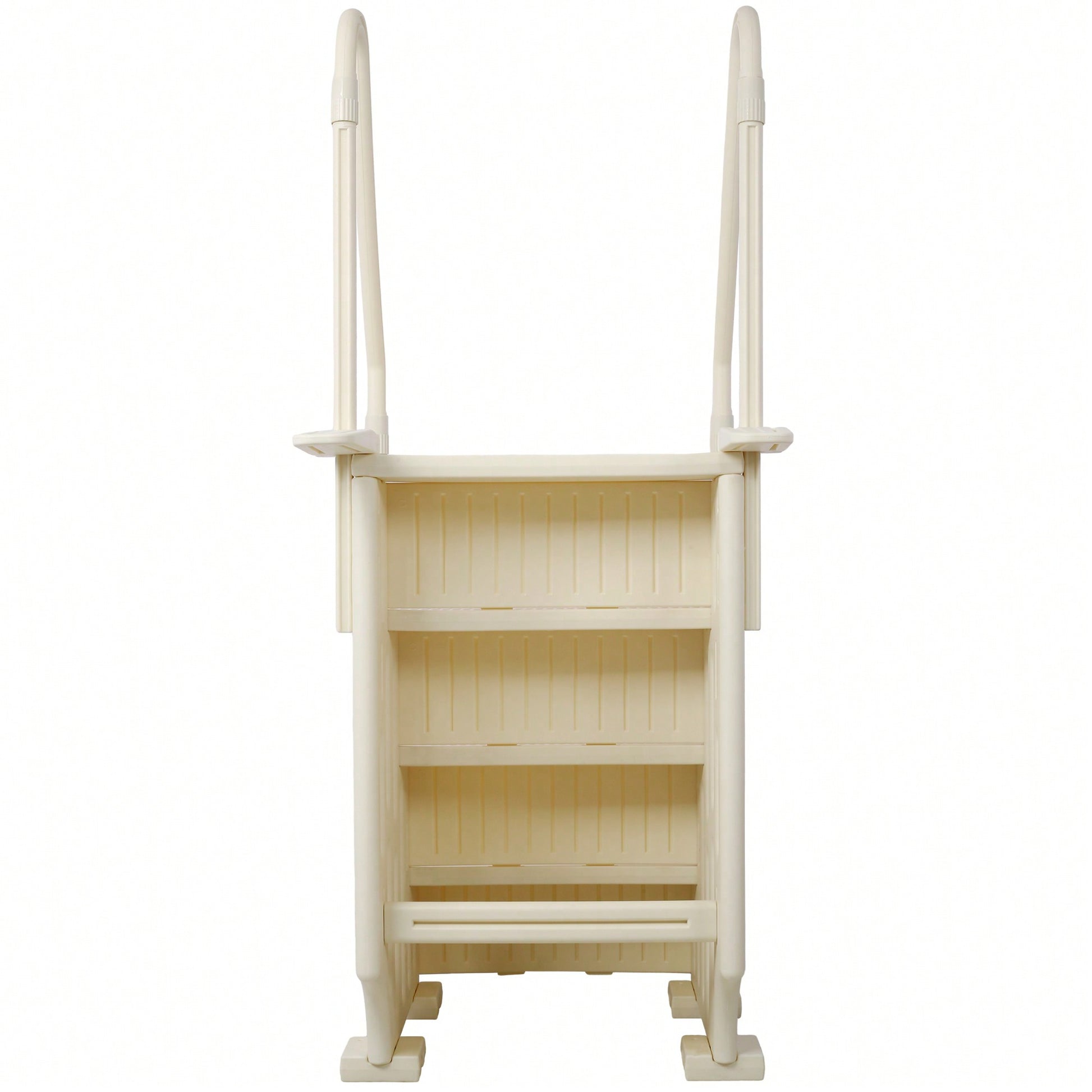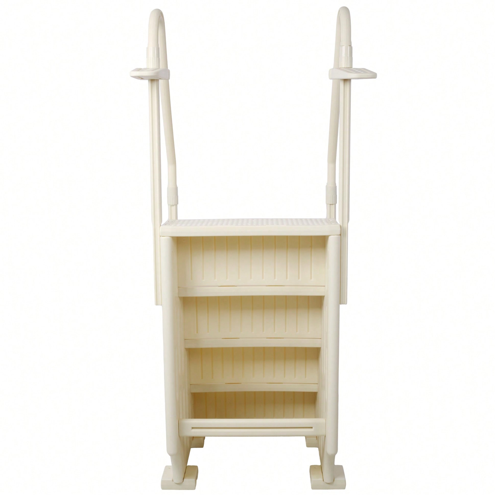 **Key Features:** - Heavy-duty construction supports up to 400 lbs for durability - Designed for flat-bottomed above-ground pools with decks up to 60 inches - Easy installation with sand filling to prevent floating - Ergonomic design with handrails and anti-skid pads for safety - Four steps (8.62 inches deep, 27.5 inches wide, 11 inches high) for easy access **Product Description:** This heavy-duty pool ladder provides a reliable and sturdy entry system for above-ground pools. Engineered for long-lasting use, it accommodates a weight capacity of 400 pounds, ensuring it can handle frequent use. The installation process is straightforward, requiring only a funnel and sand to secure the ladder in place. Safety features, including handrails and anti-skid pads, enhance user confidence while navigating the steps. With four generously sized steps, this ladder is designed for convenience, making it accessible for users of all ages. **Specifications:** - Weight Capacity: 400 lbs - Number of Steps: 4 - Step Dimensions: 8.62 inches deep, 27.5 inches wide, 11 inches high - Suitable for: Flat-bottomed above-ground pools with decks up to 60 inches
