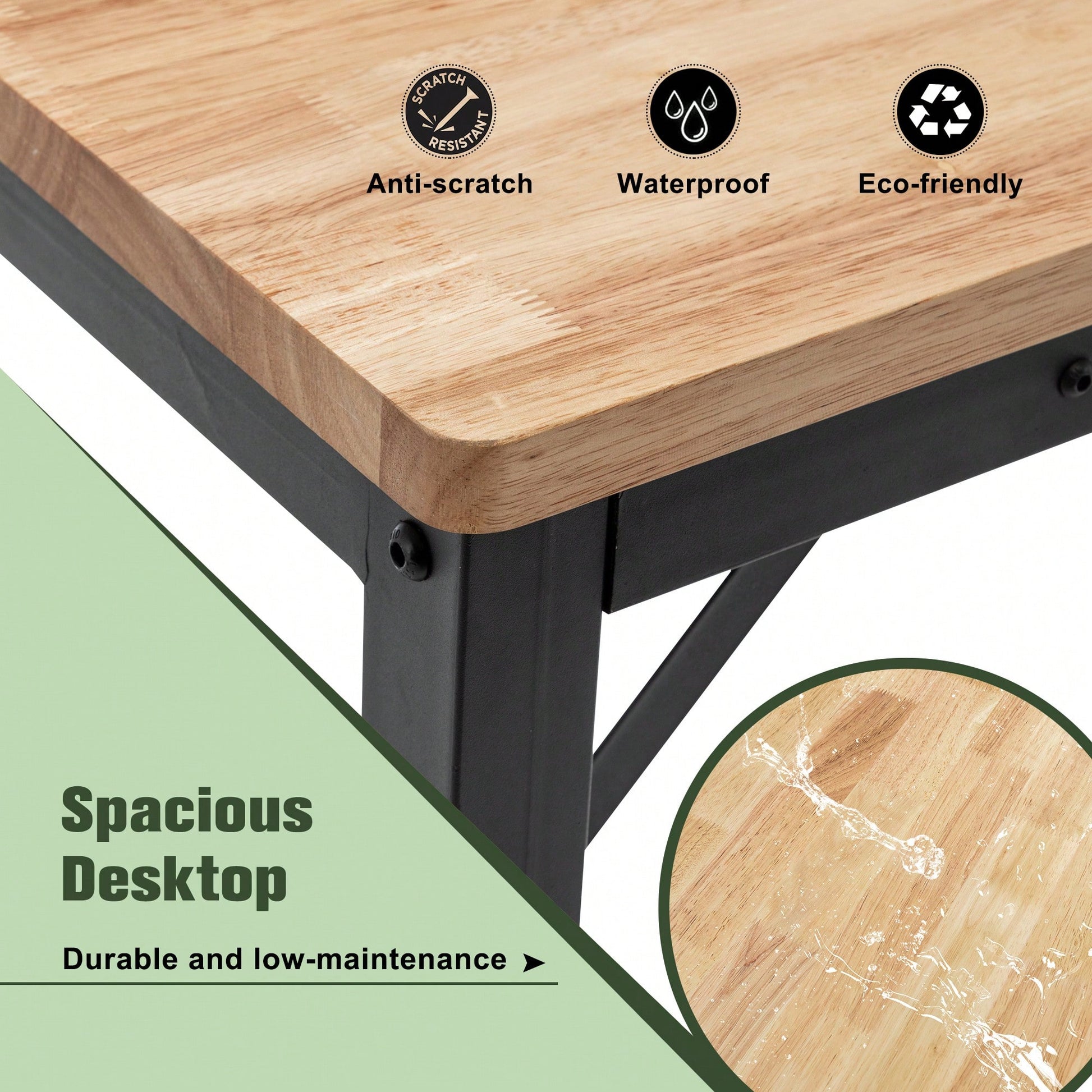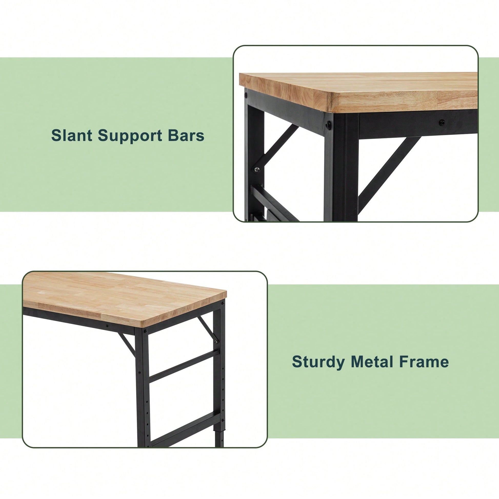 Heavy Duty 60 Inch Adjustable Height Workbench With Rubber Wood Top And Power Outlets, 2000 Lbs Load Capacity For Workshop, Garage, Office And Home Use