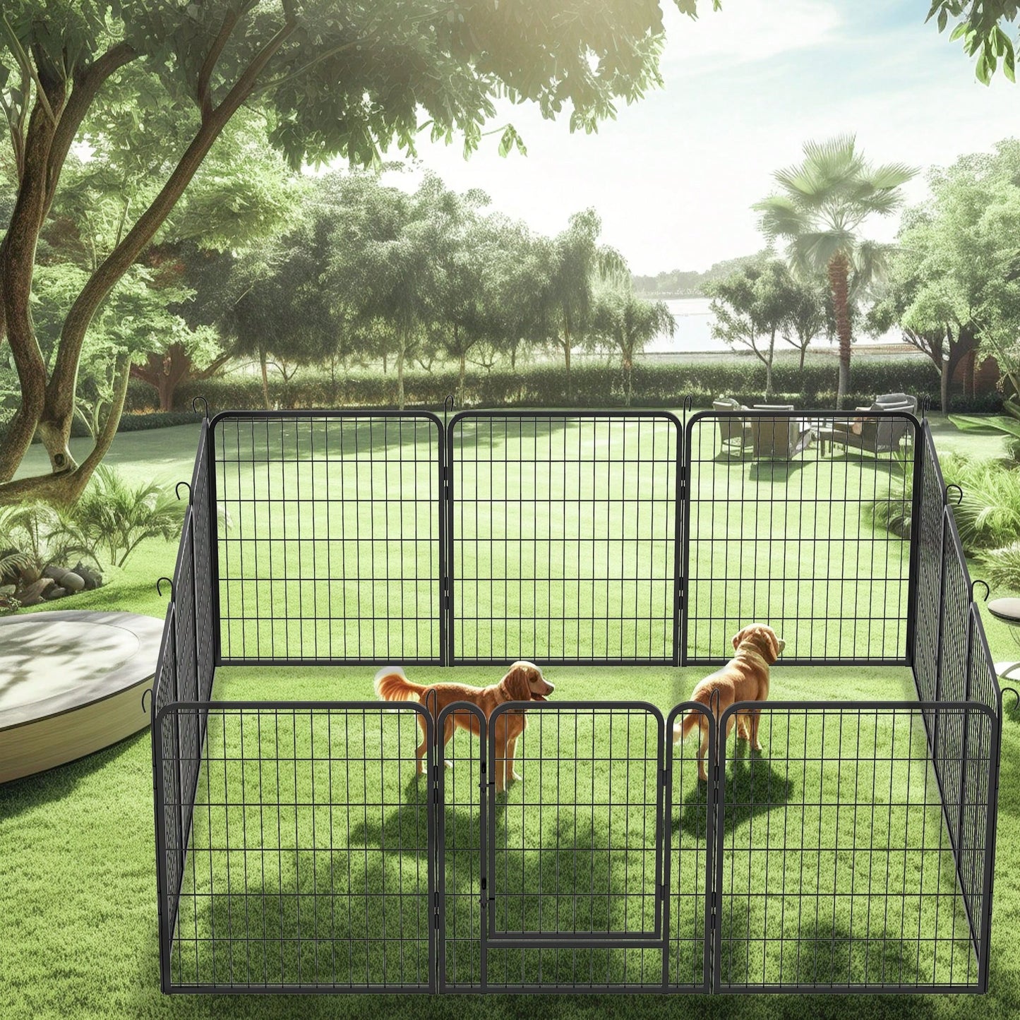 Heavy Duty Metal Playpen With Door,31.7"H Dog Fence Pet Exercise Pen For Outdoor