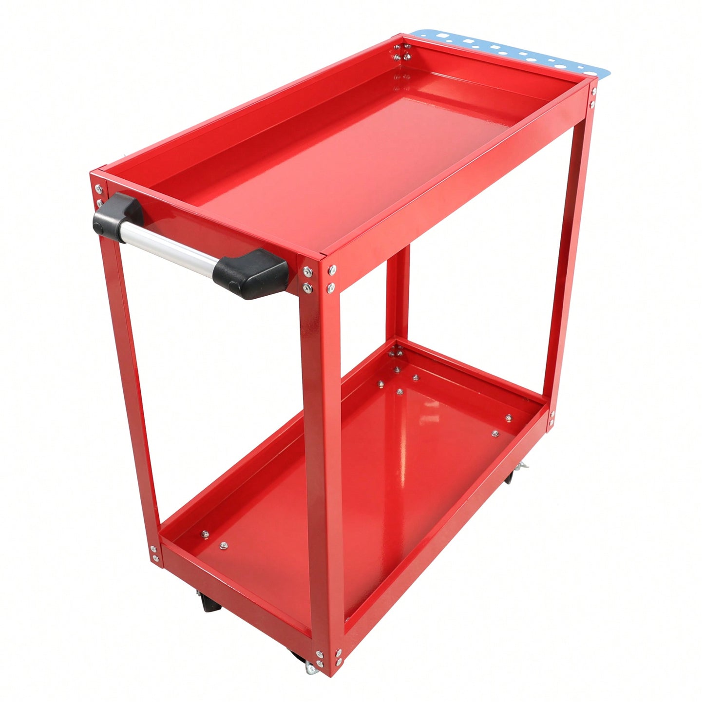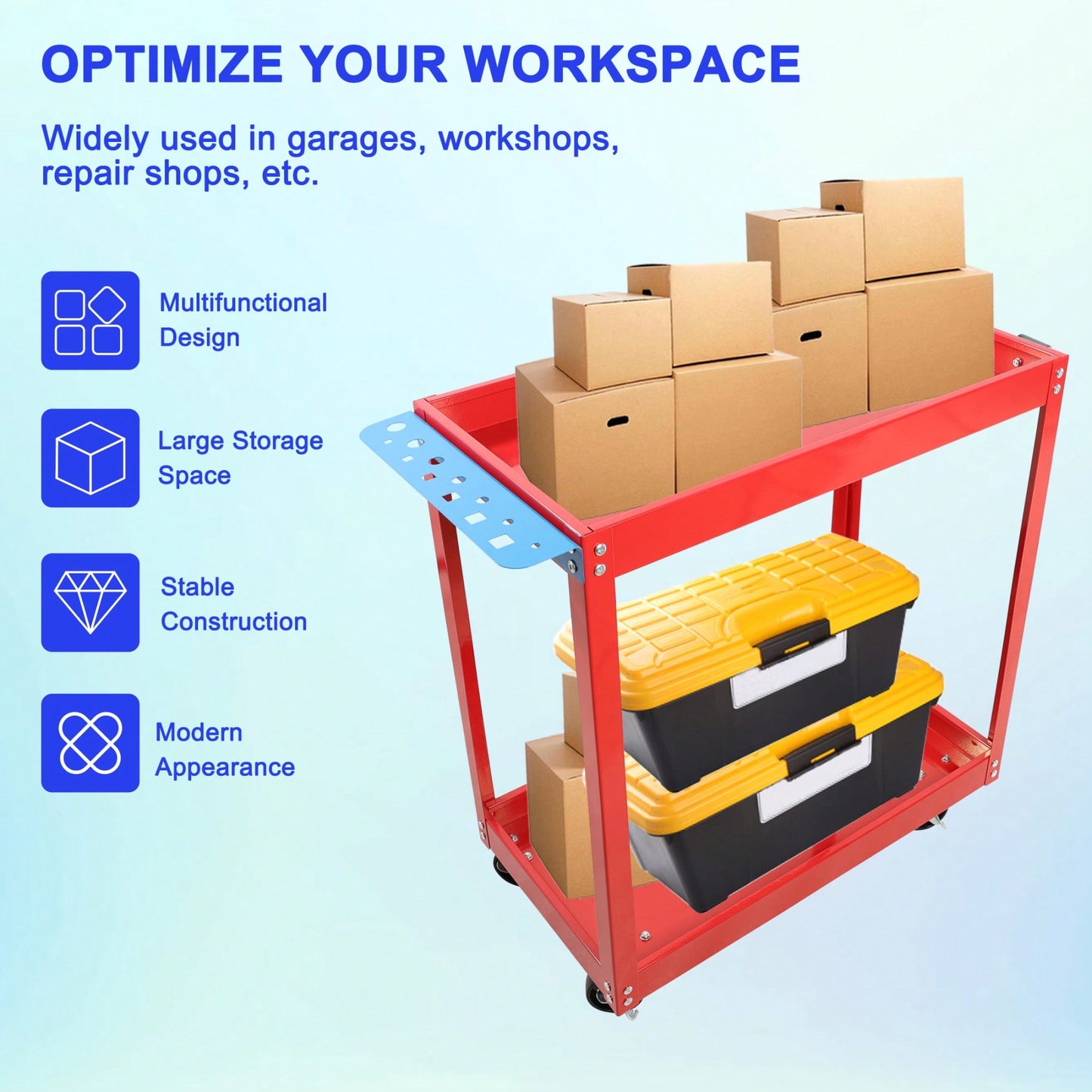This durable utility cart is designed for versatility and heavy use, making it ideal for garages, workshops, warehouses, and other environments where tool organization and mobility are essential. The cart boasts a robust steel frame treated with a powder-coated finish, ensuring long-lasting protection against rust and corrosion. With a substantial load capacity of 400 lbs, it can accommodate a wide range of items, from power tools to portable toolboxes and helmets.