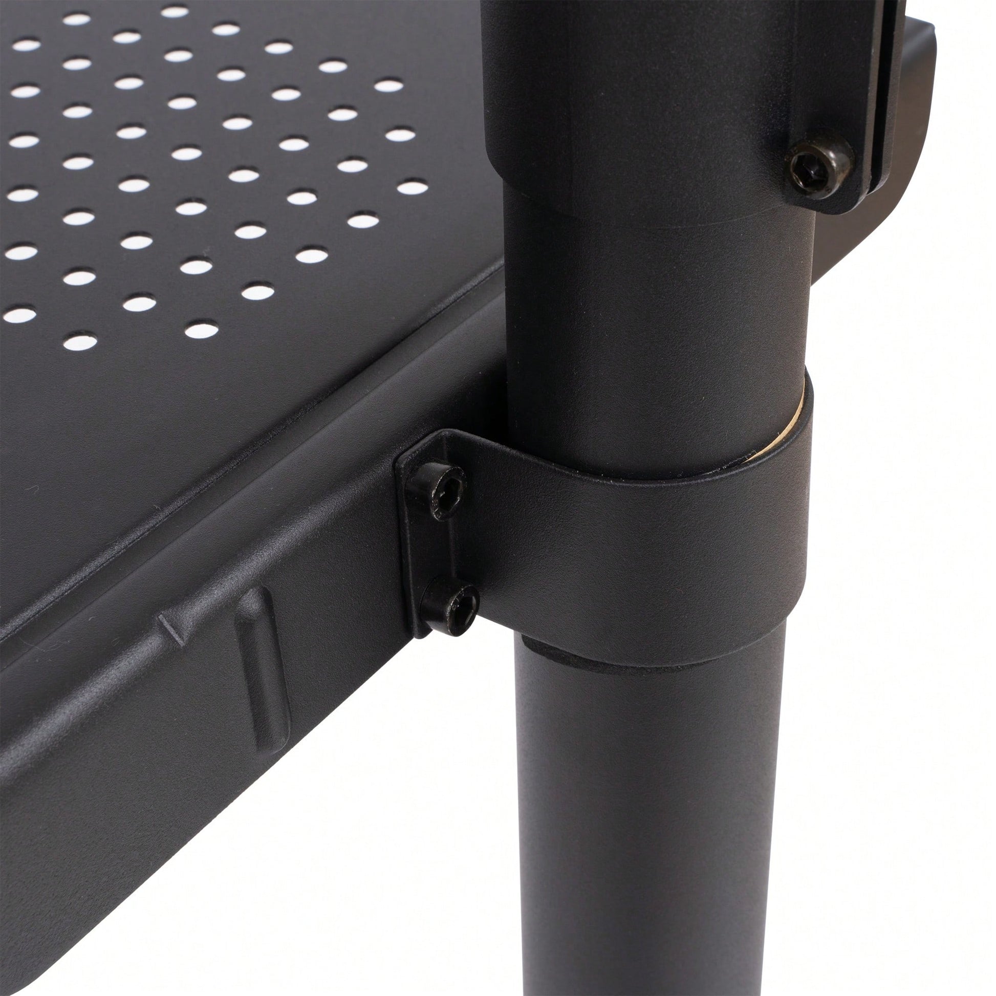 - Height adjustable bracket and shelf accommodate different viewing preferences and device storage.