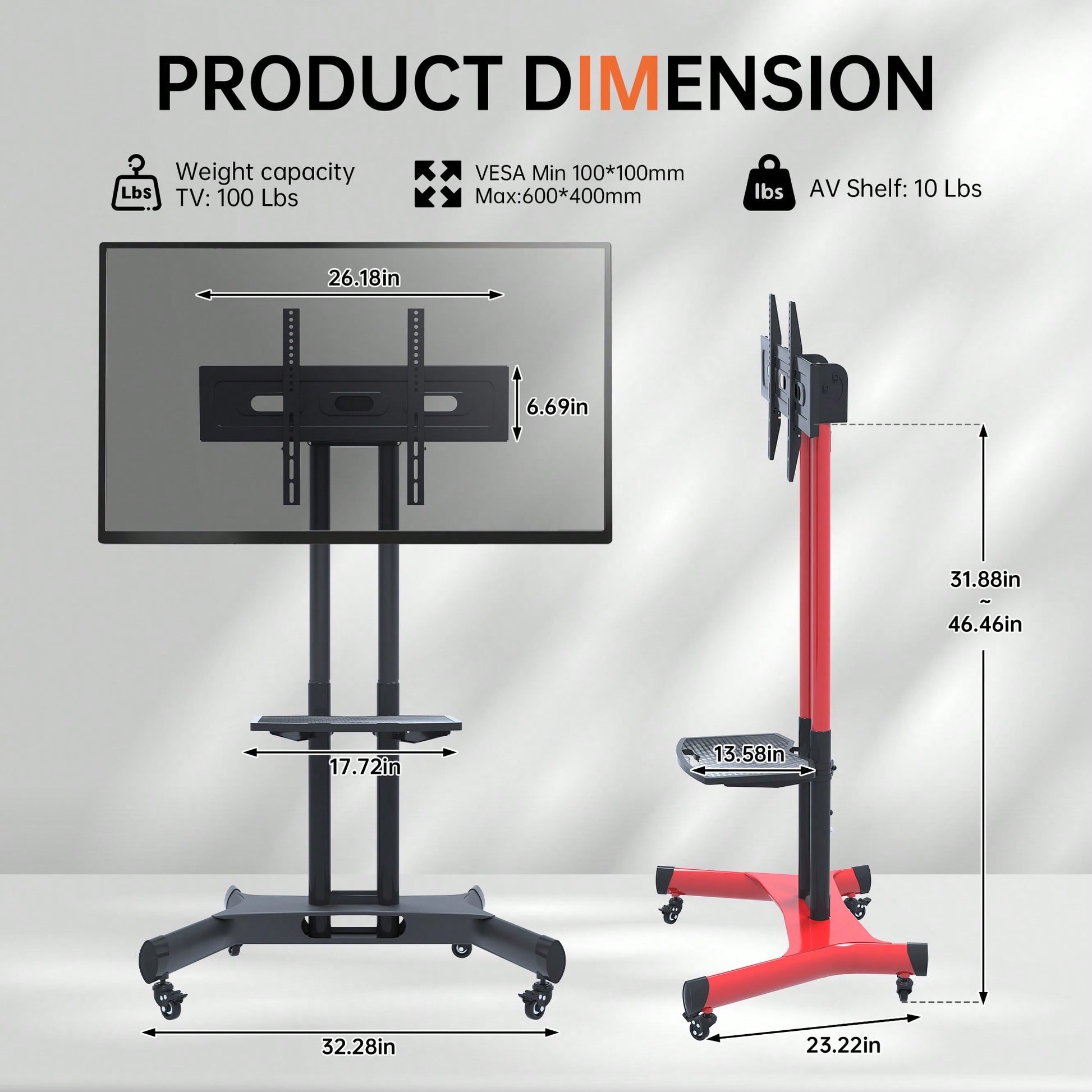 Height Adjustable Swivel TV Stand for 32-80 Inch TVs with Tilt Feature Fits VESA 600x400mm Red Color