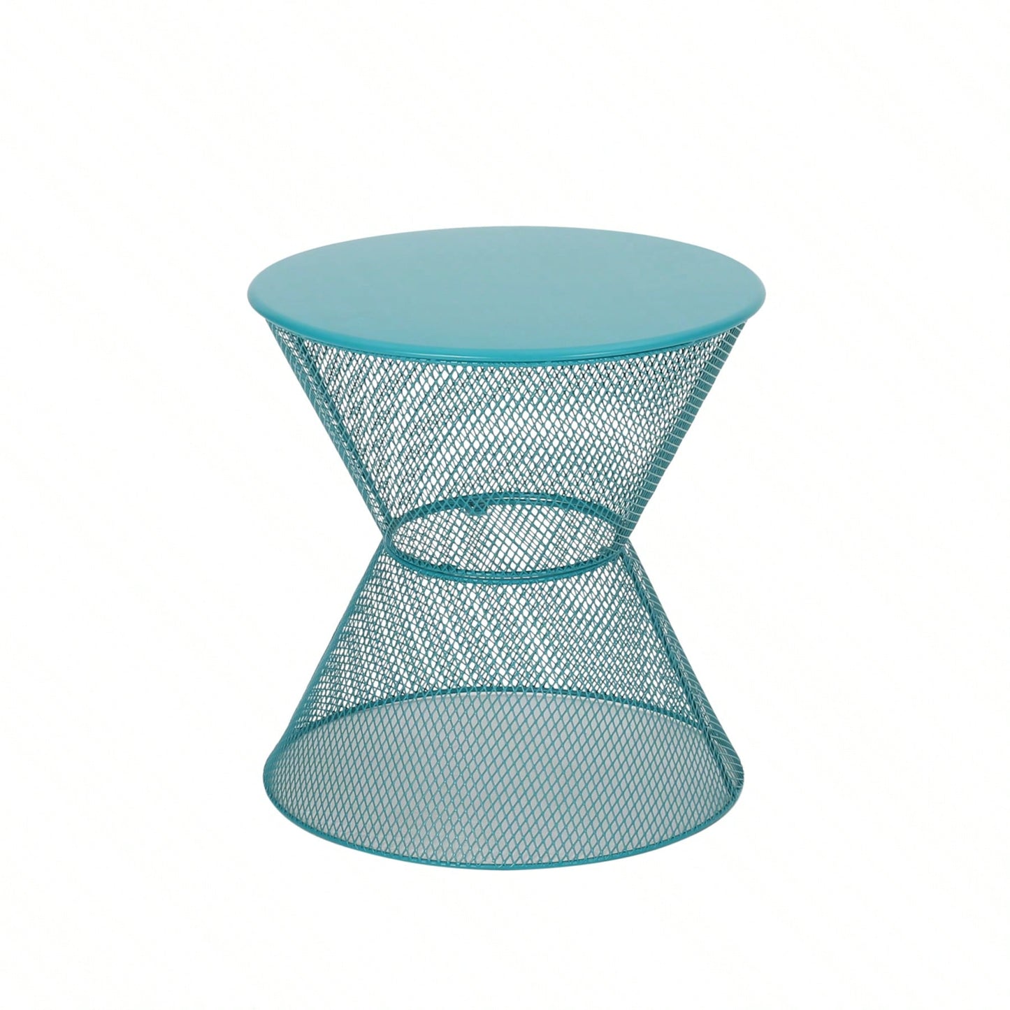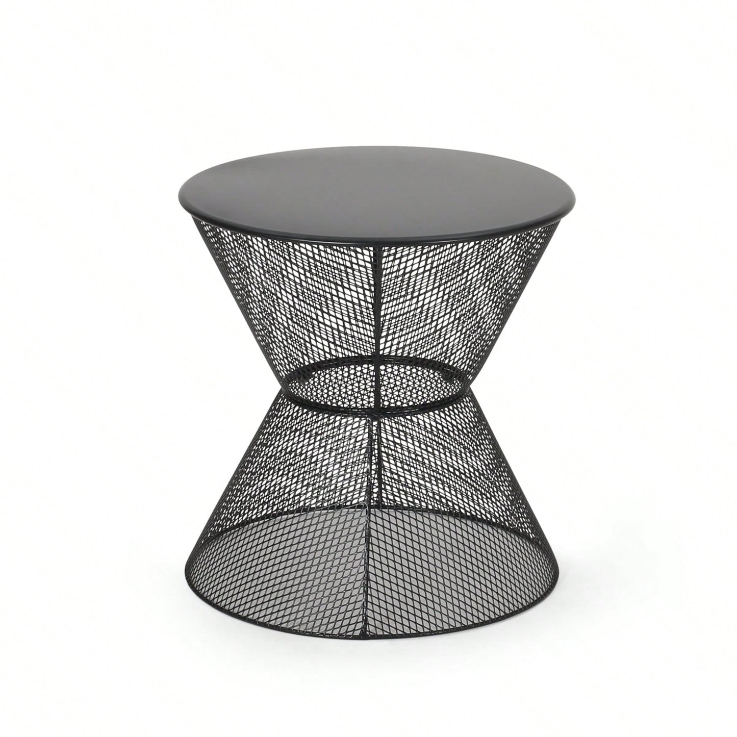 Modern Outdoor Hourglass Mesh Side Table with Iron Frame for Patio Garden Poolside Drinks and Snacks